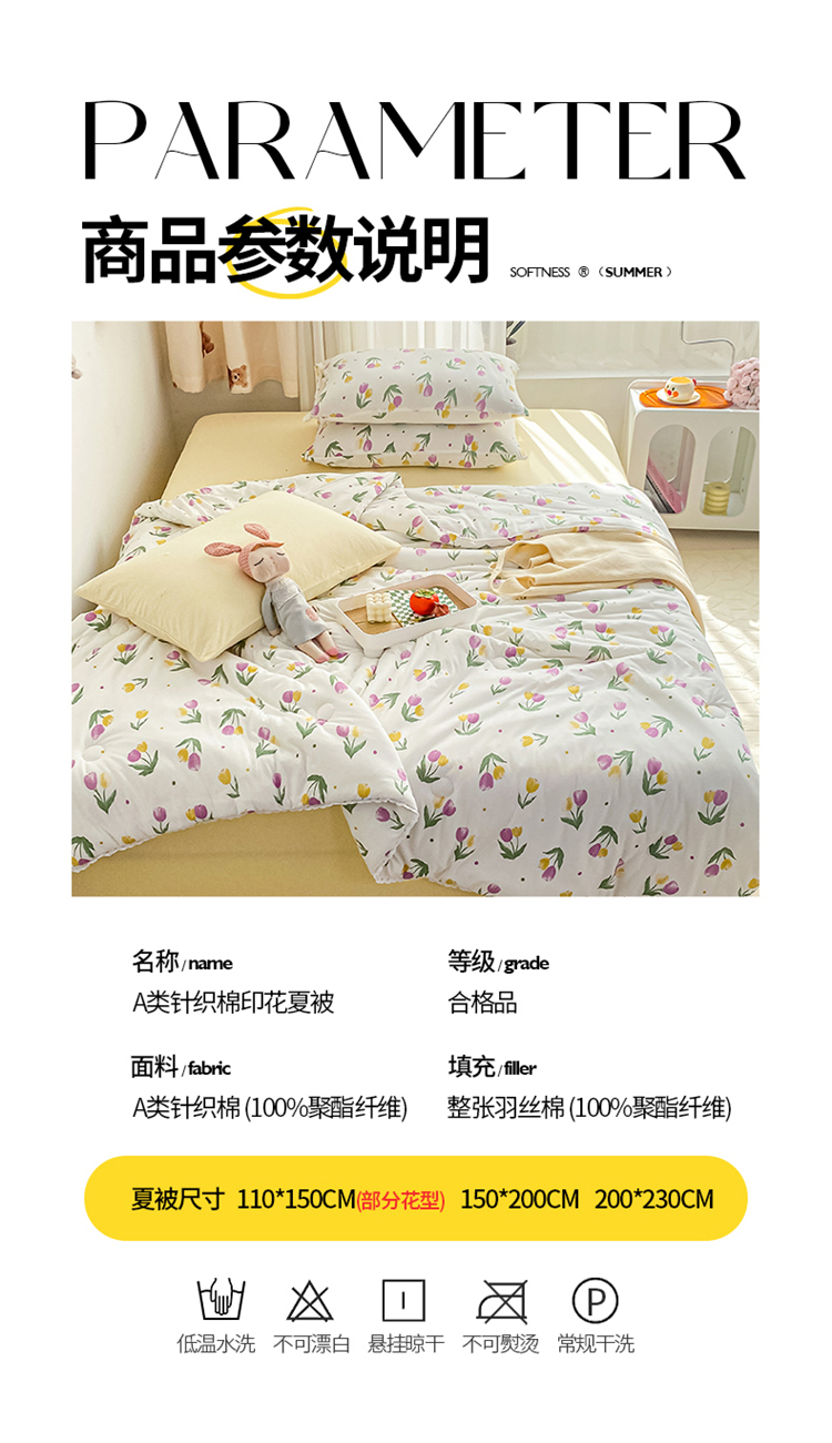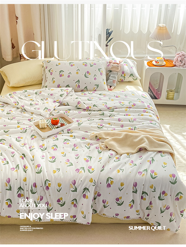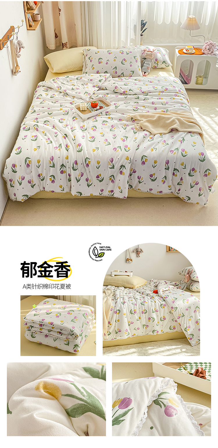 商品名称:莱宁被业 2023新款A类针织棉夏被印花夏被夏凉被被子被芯 郁金香
