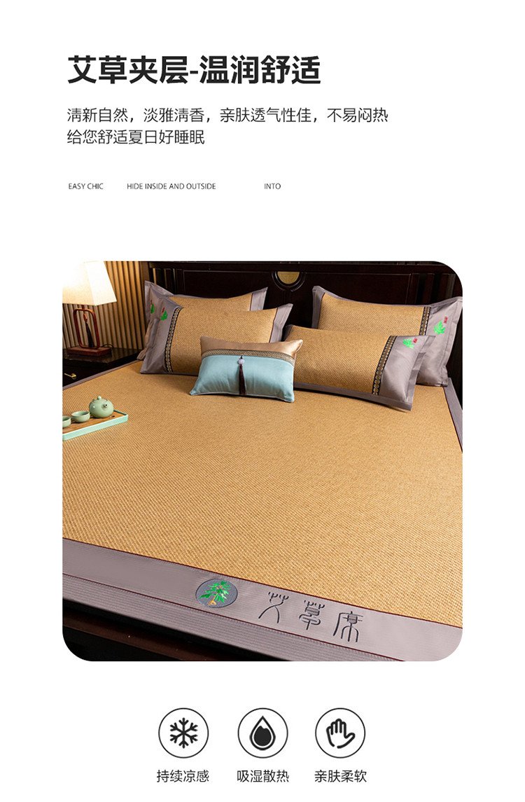 简一家纺 2024新款艾草冰藤席艾草凉席 配皮革手提包装 黄藤