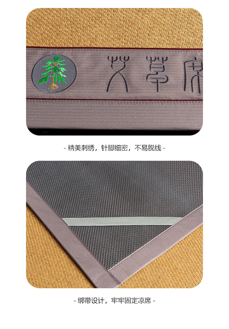 商品名称:简一家纺 2024新款艾草冰藤席艾草凉席 配皮革手提包装 黄藤