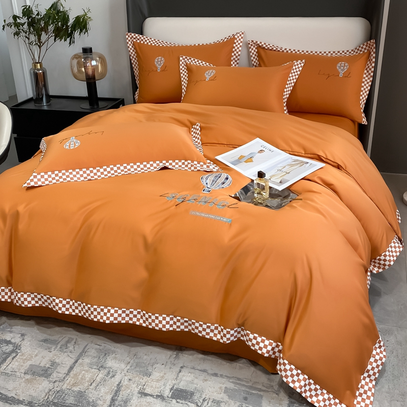 商品名称:伊人居 2023新款棋盘格四件套品尚系列 橙色