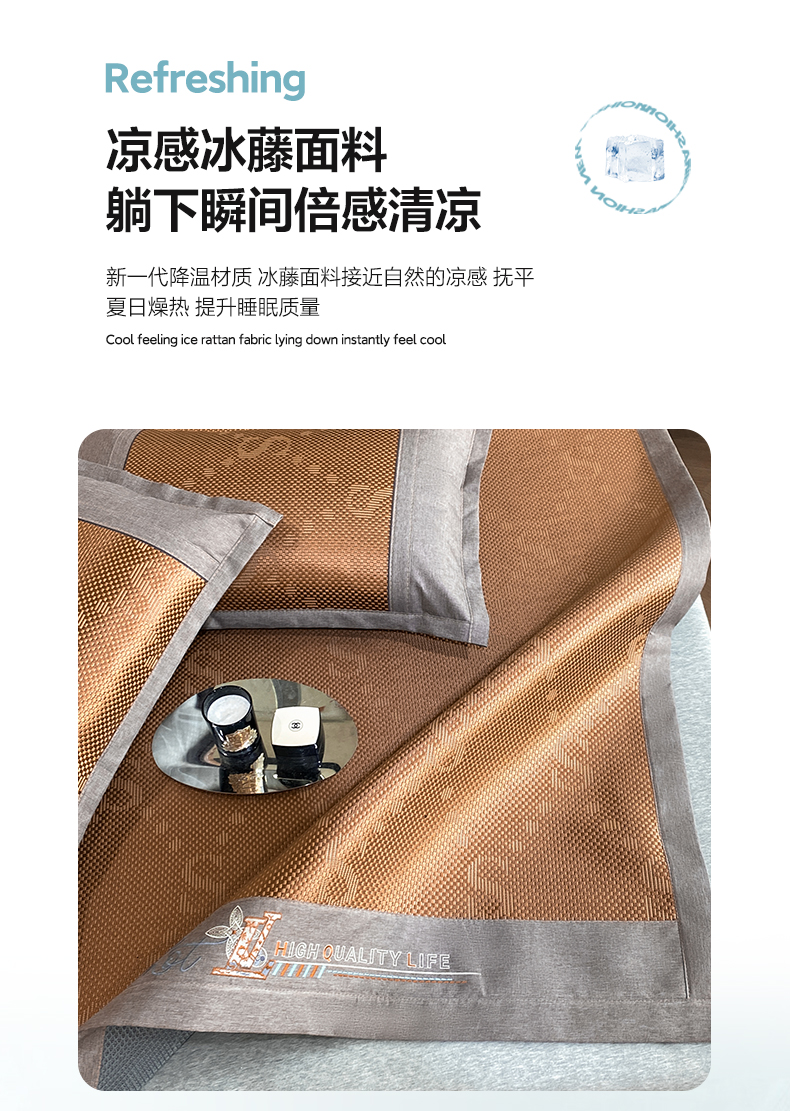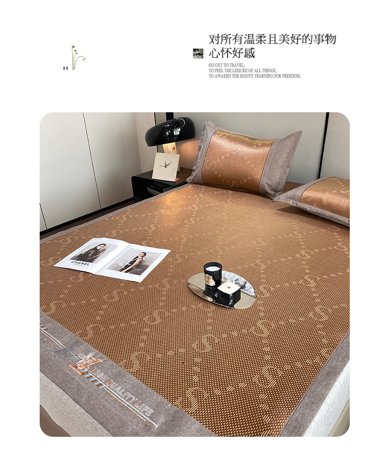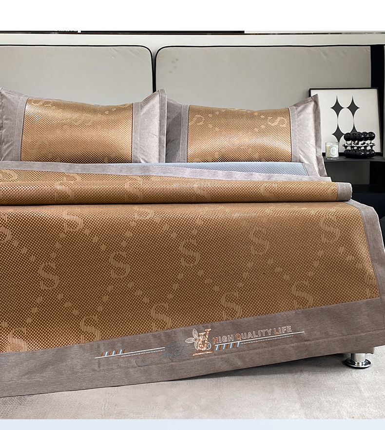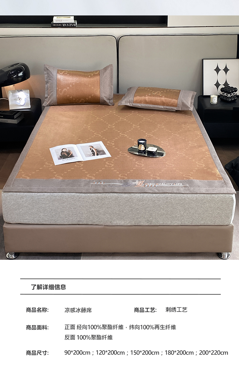 商品名称:伊被源 2023新款凉感冰藤席-沁雅、字母、蝶恋花 字母-咖