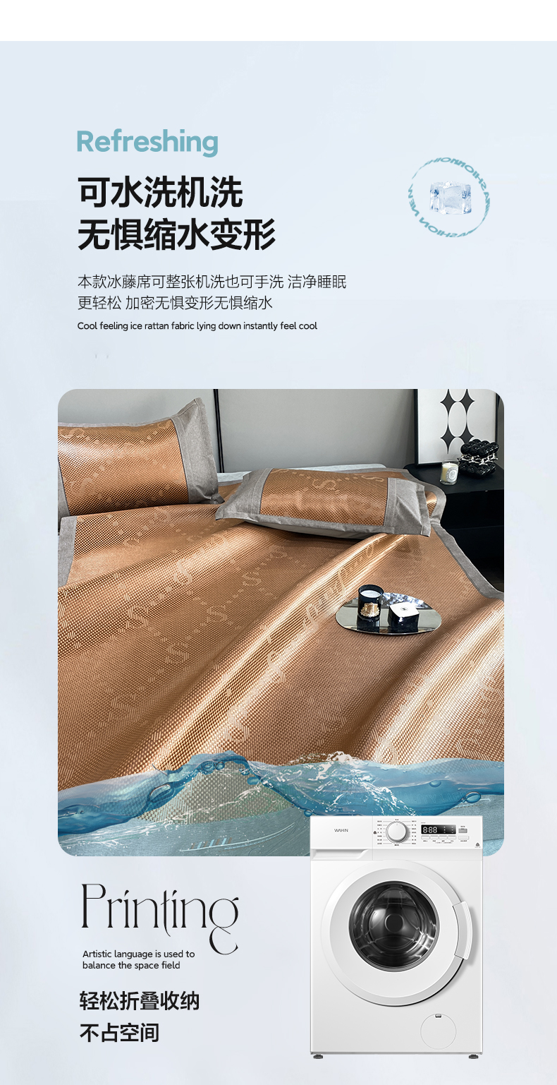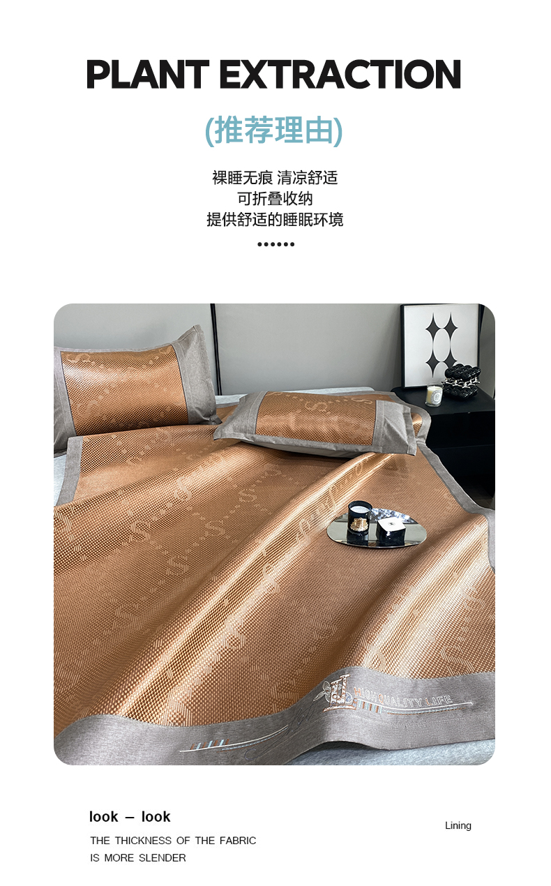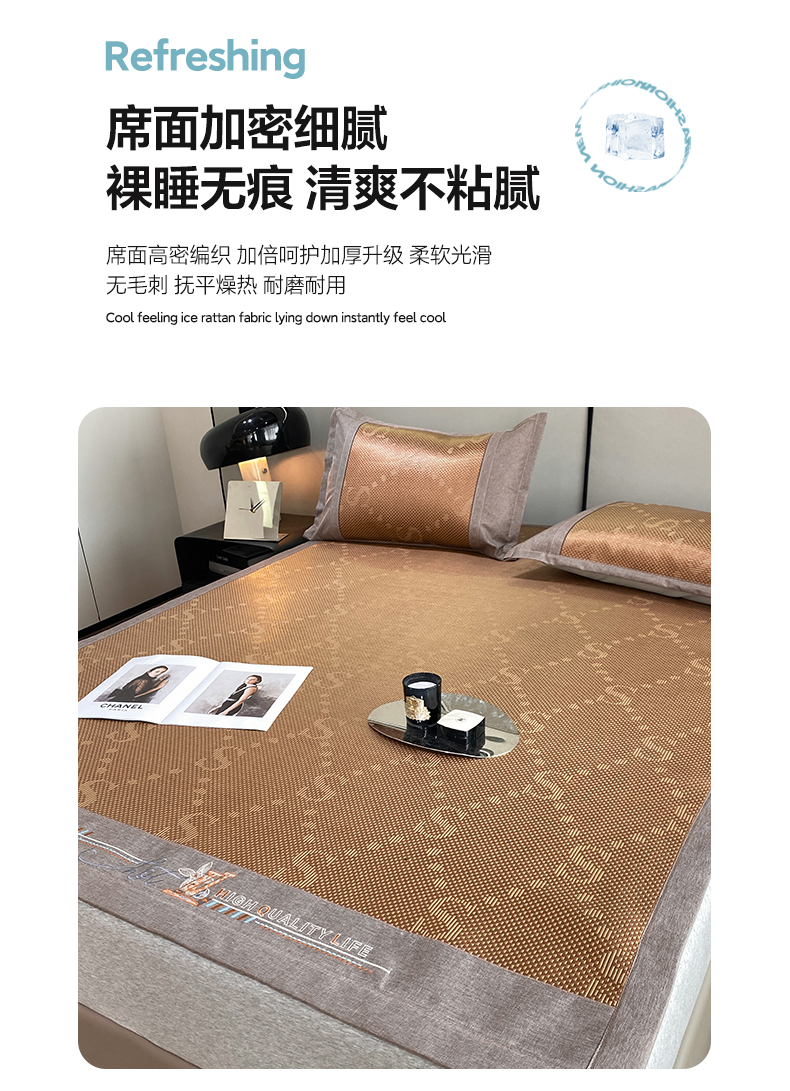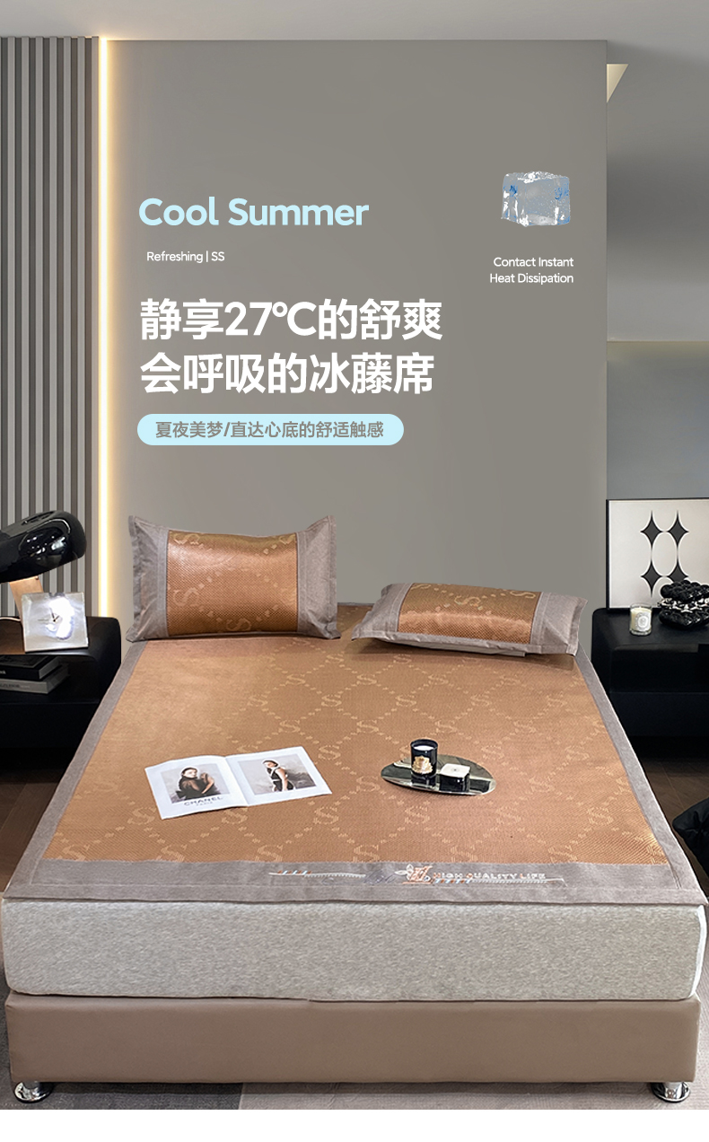商品名称:伊被源 2023新款凉感冰藤席-沁雅、字母、蝶恋花 字母-咖