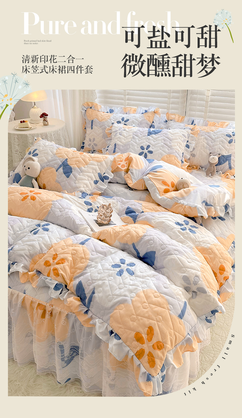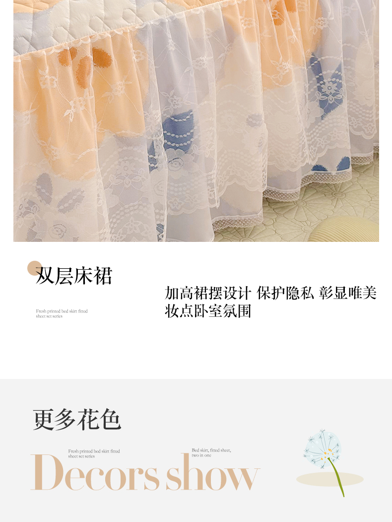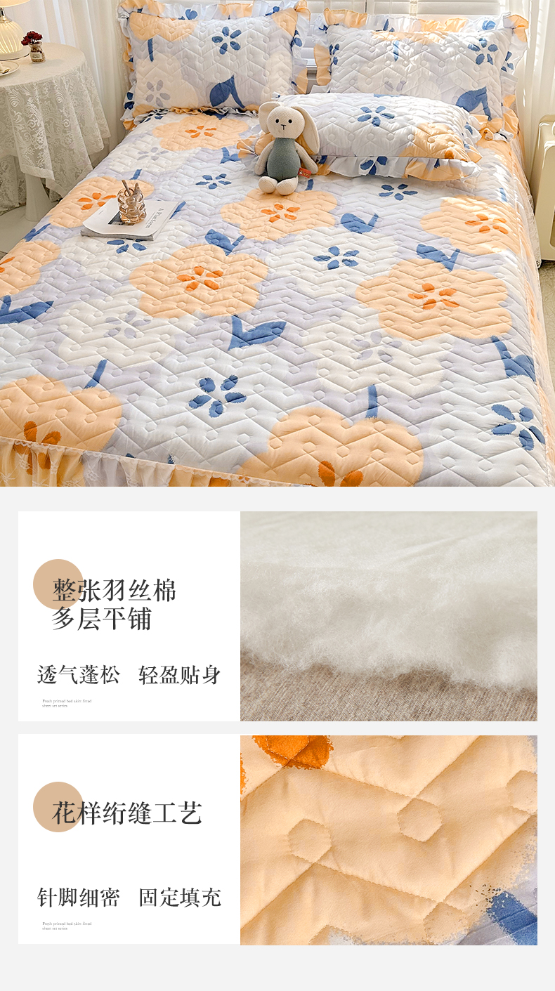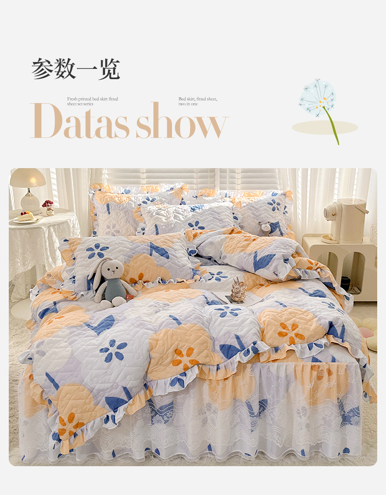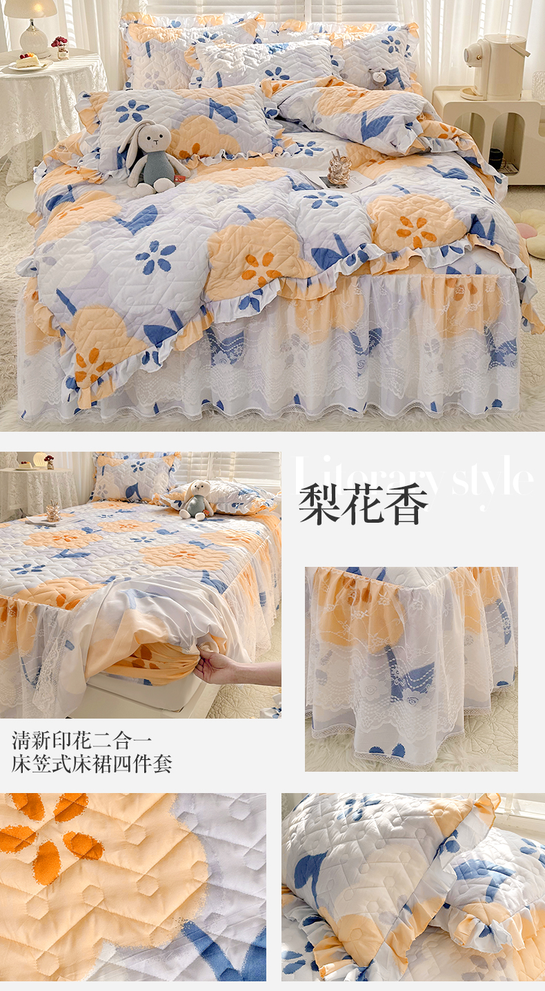 • 91家纺网 家纺一手货源 找家纺 宜凡家纺 2023新款云朵棉床笠式床裙四件套 梨花香
