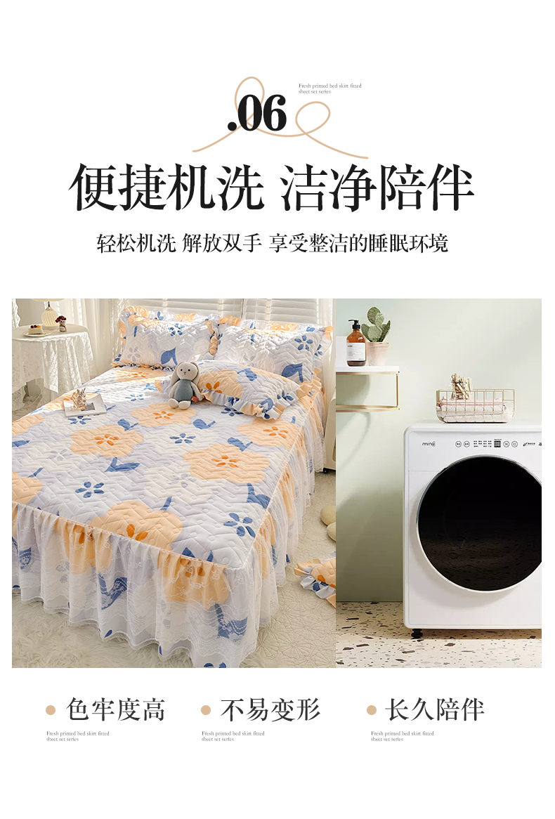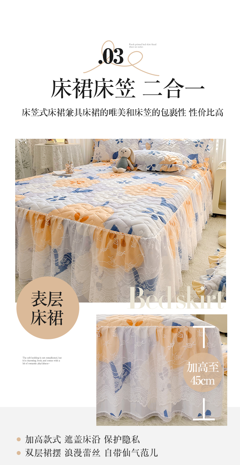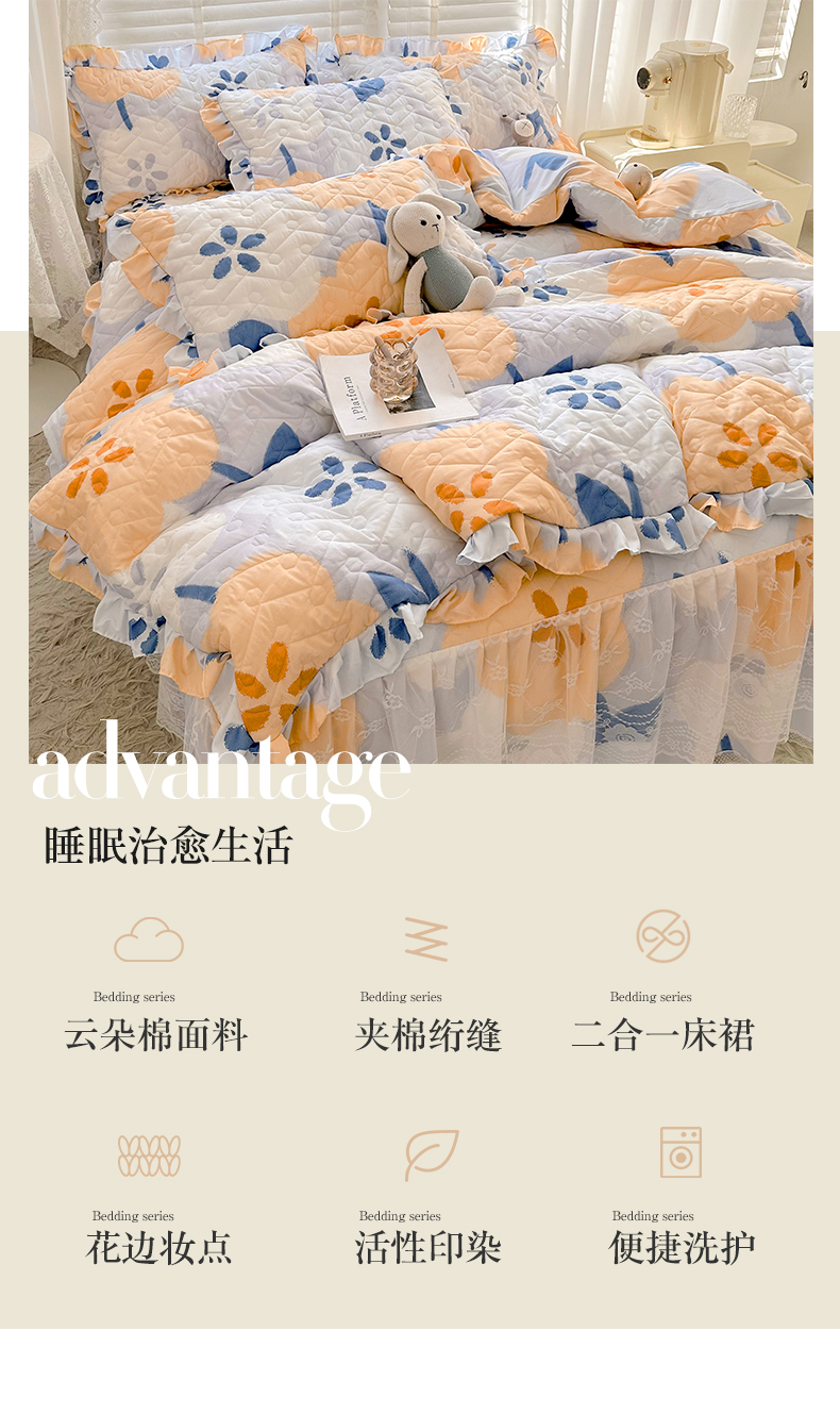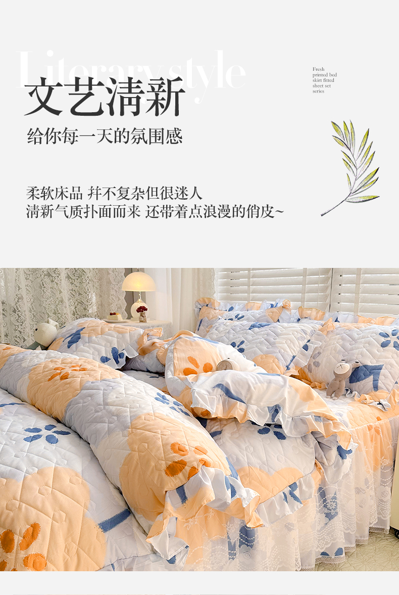 • 91家纺网 家纺一手货源 找家纺 宜凡家纺 2023新款云朵棉床笠式床裙四件套 梨花香