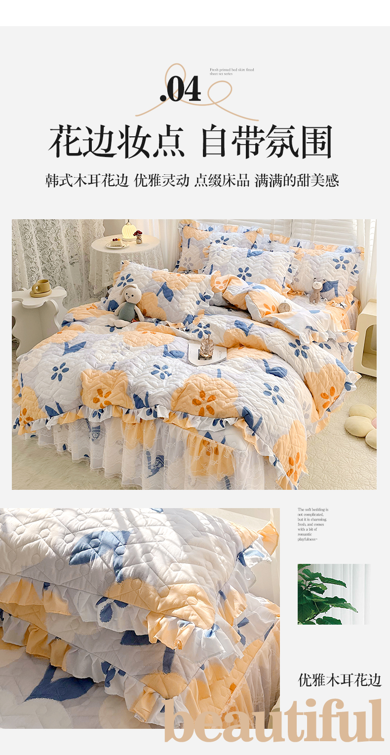 2.0*2.2m夹棉床裙四件套