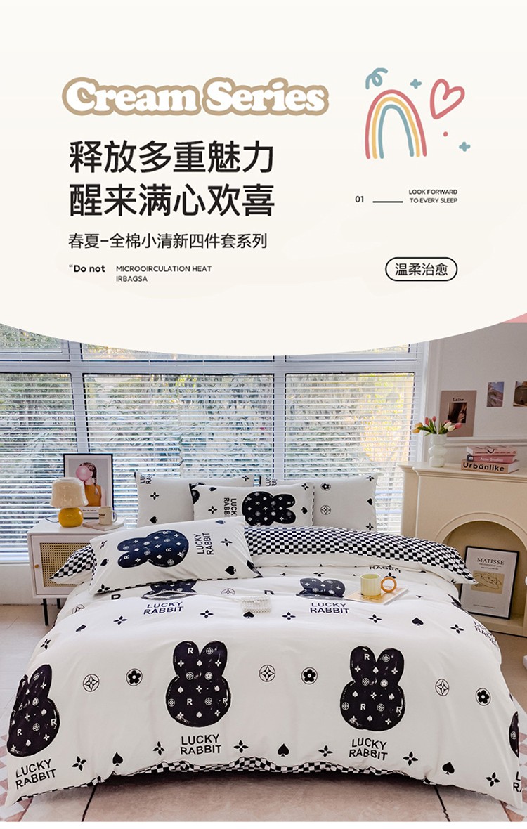 (总)珺柔 2023新款13070全棉四件套-第3批,宝宝兔,豹纹粉,北欧之春,都尚,风信子,浪漫花香,菱格熊,领结兔,绿光,玫瑰星球,梦的旋律-灰,梦的旋律-蓝,梦的旋律-绿,条纹爱心,兔时光,夏洛克,线条熊兔,小兔仙,永恒,油墨画