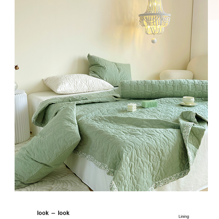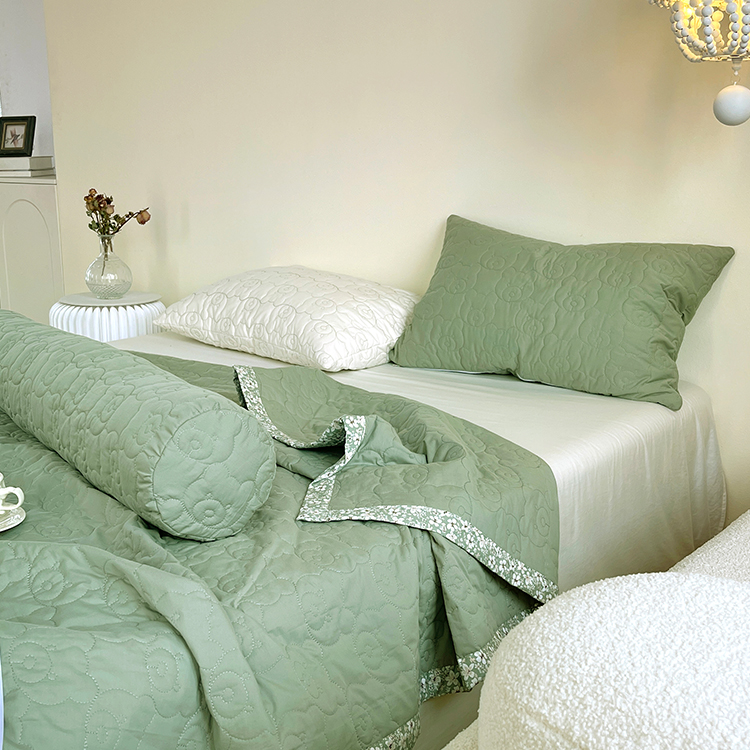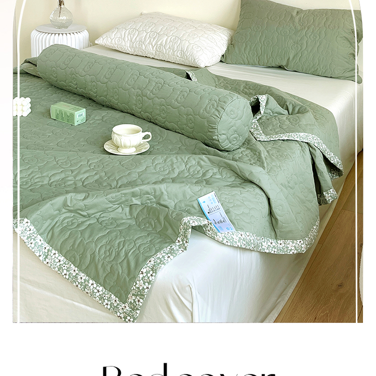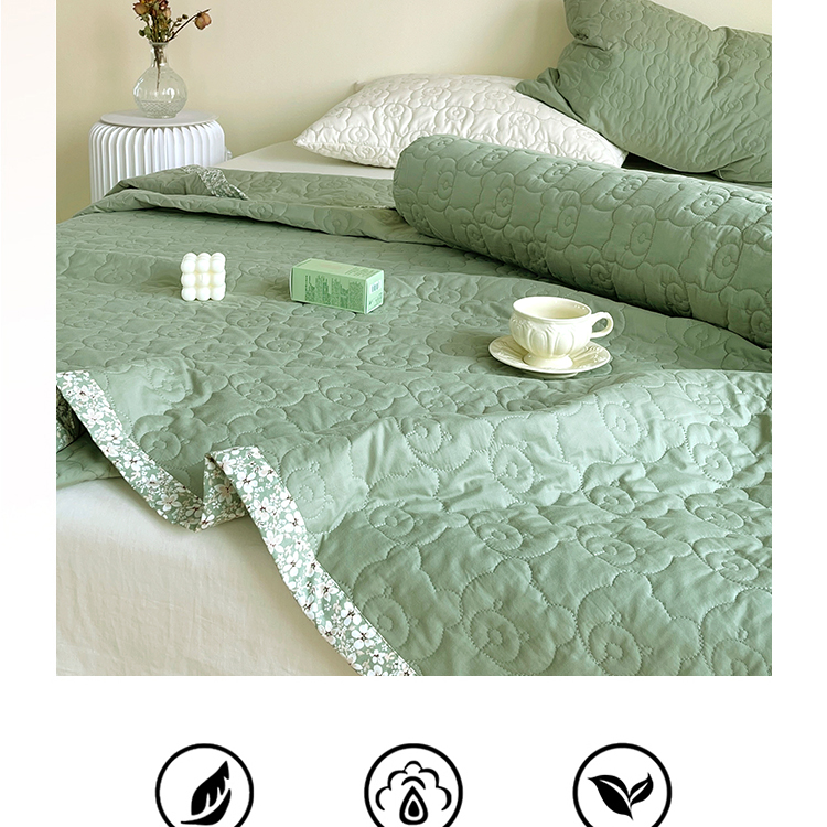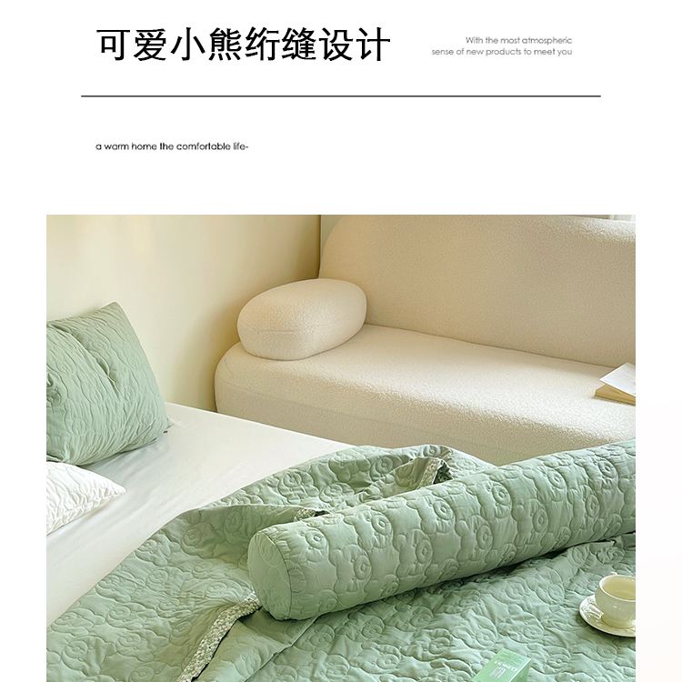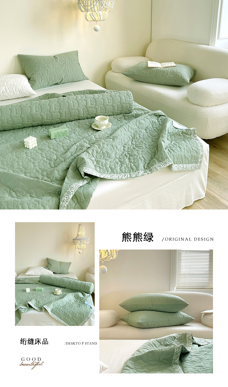 商品名称:网客家纺 2024新款全棉绗缝夏被床盖三件套 熊熊绿