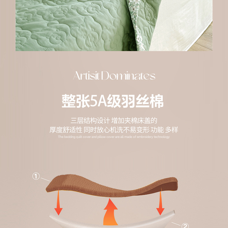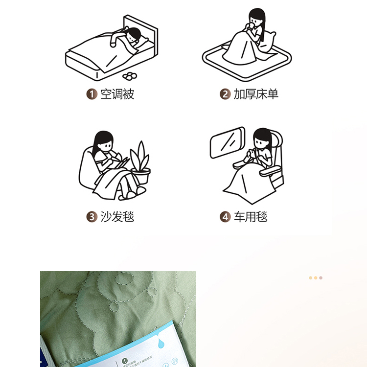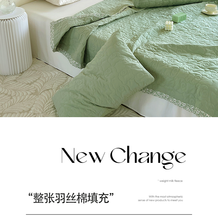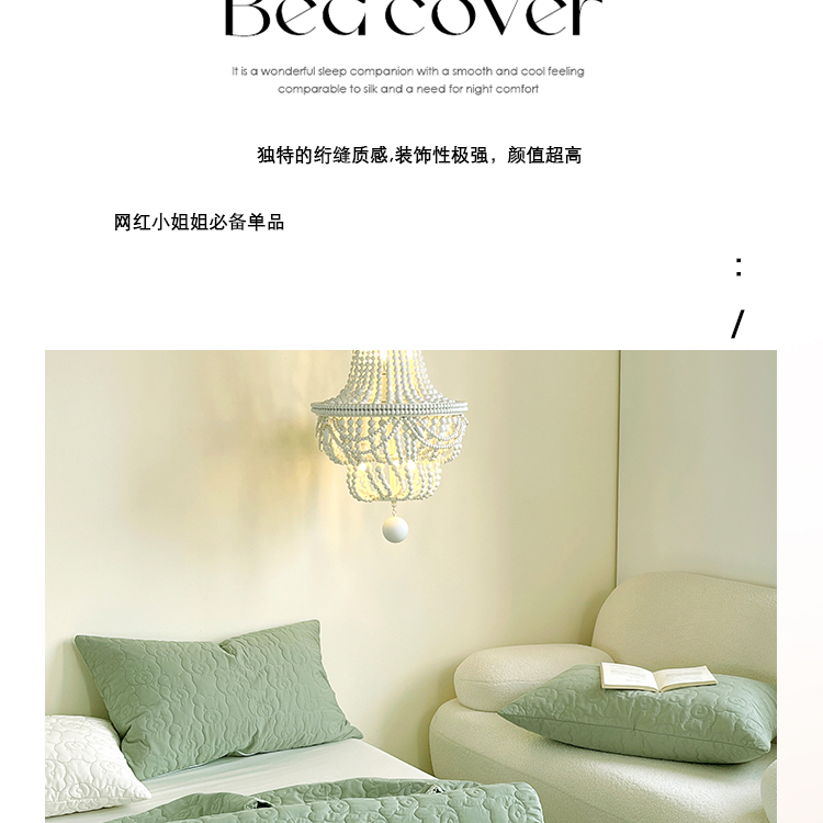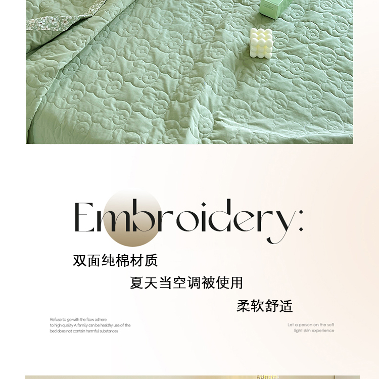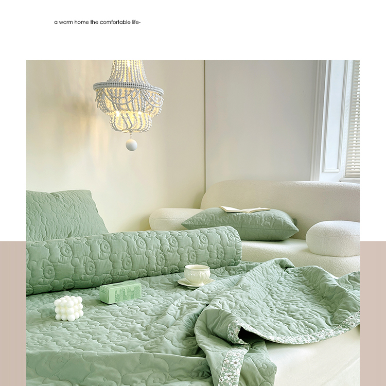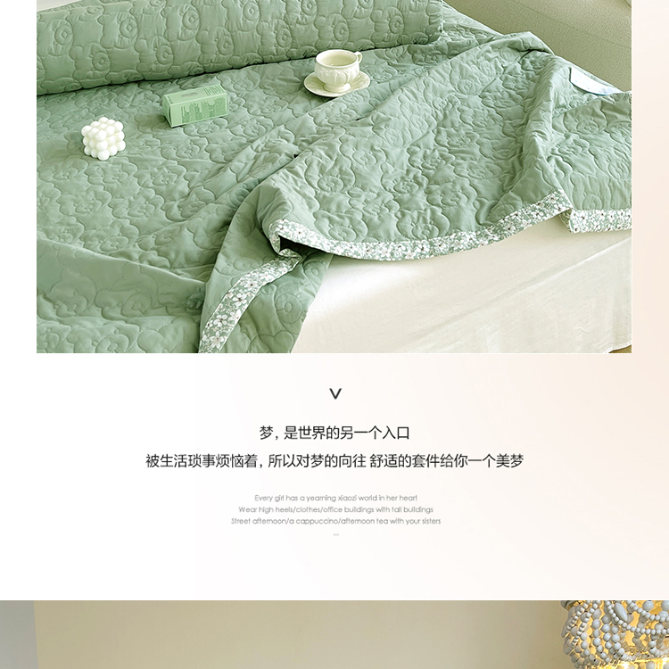 商品名称:网客家纺 2024新款全棉绗缝夏被床盖三件套 熊熊绿