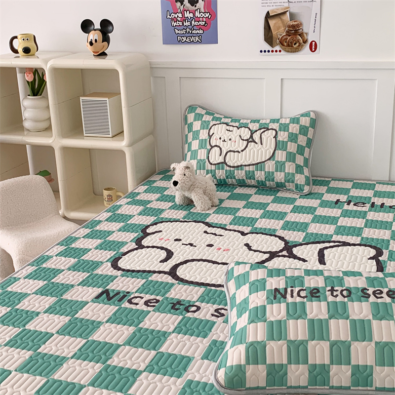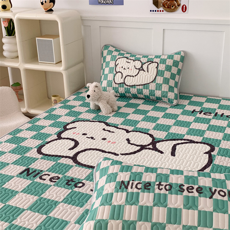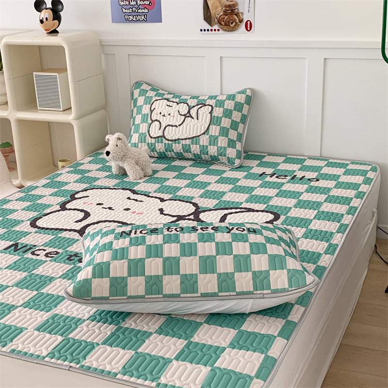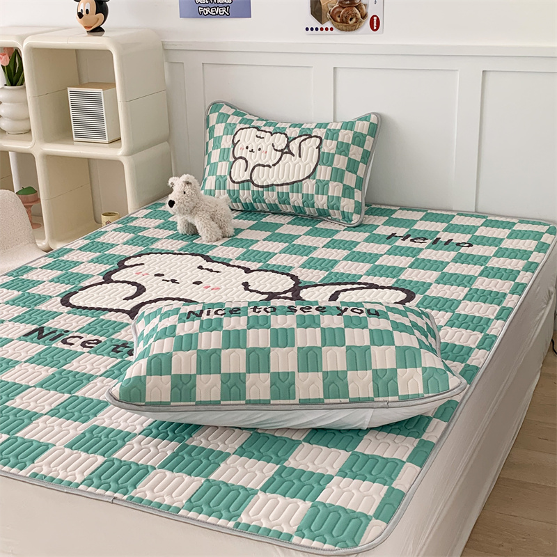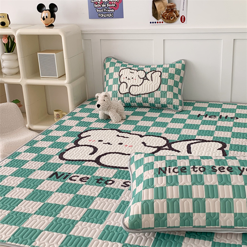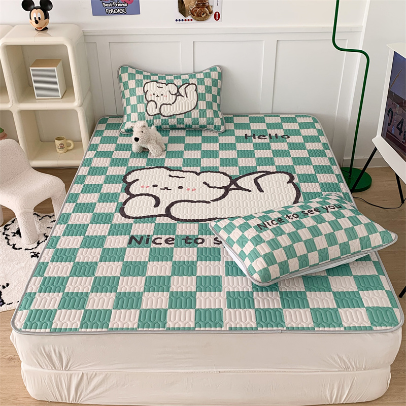 昔可家纺 2023新款大版卡通乳胶凉席第二批 绿色棋盘格狗