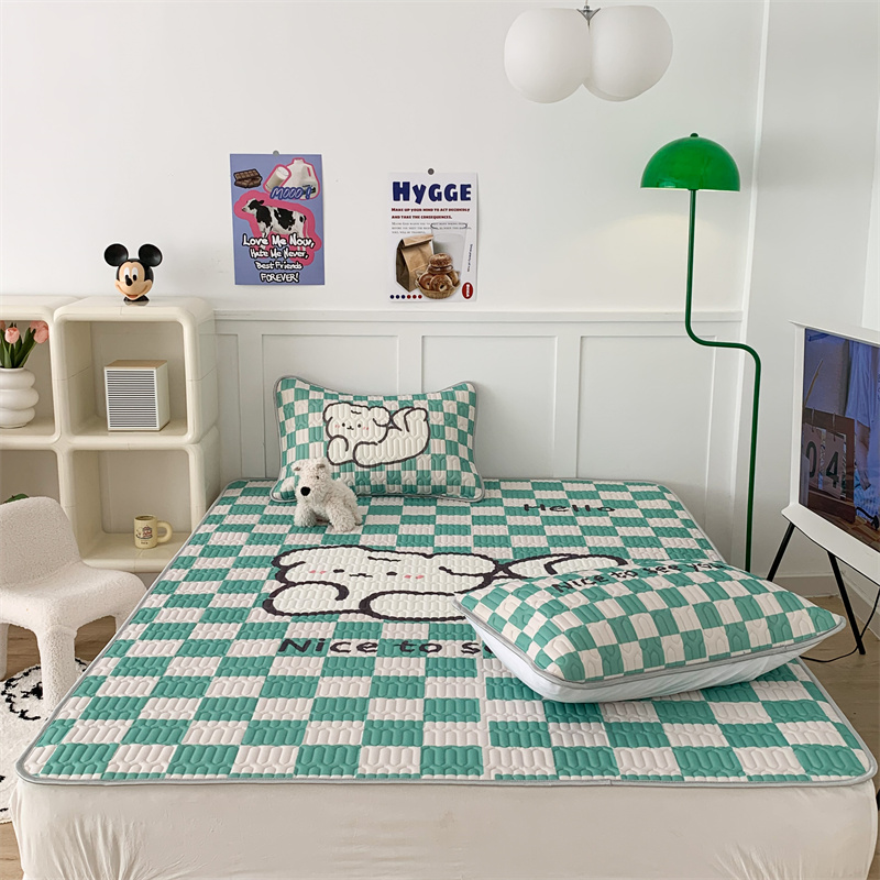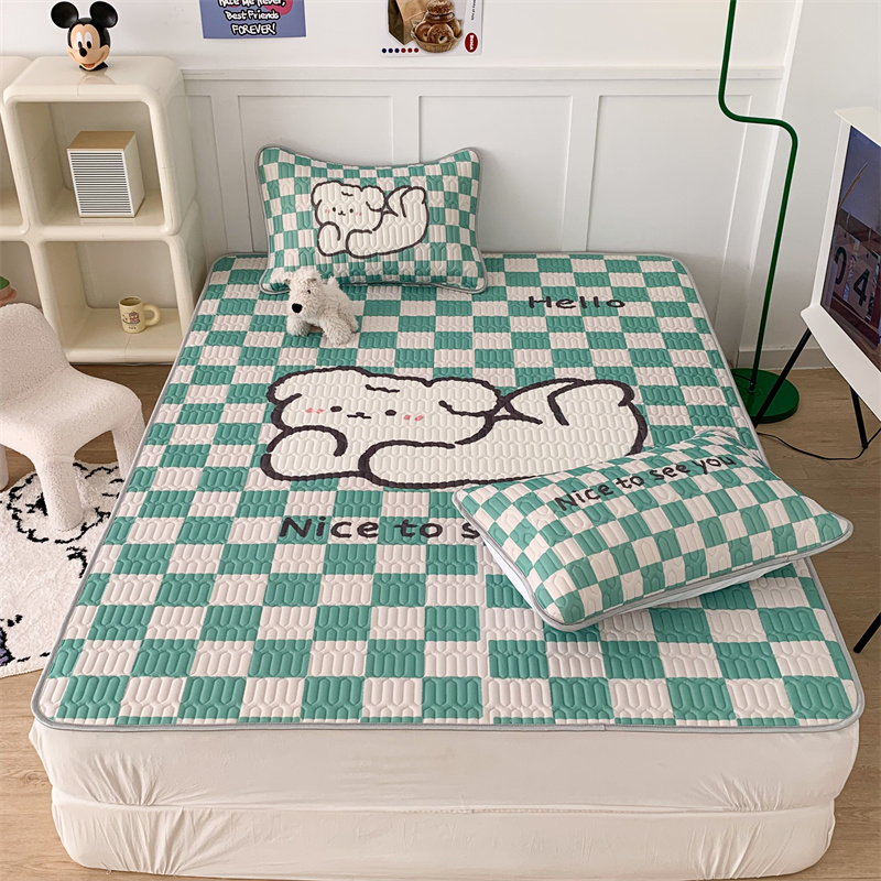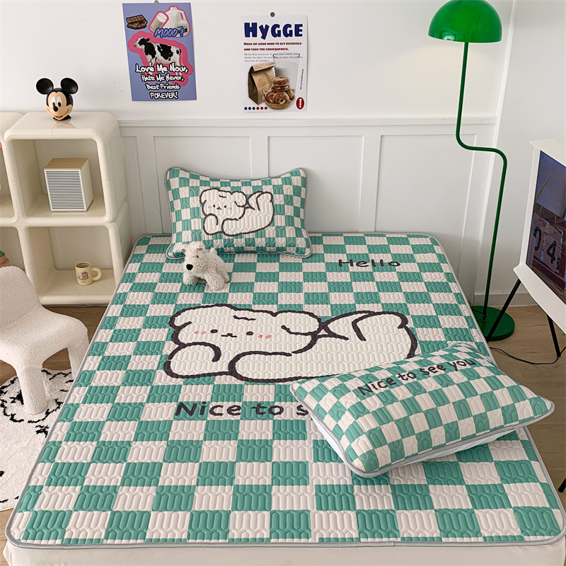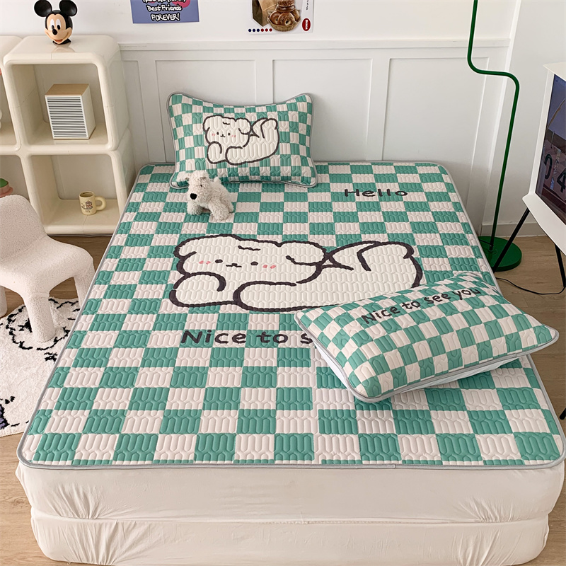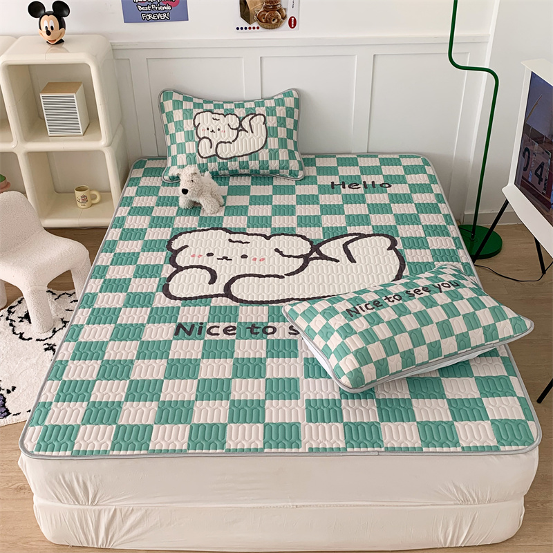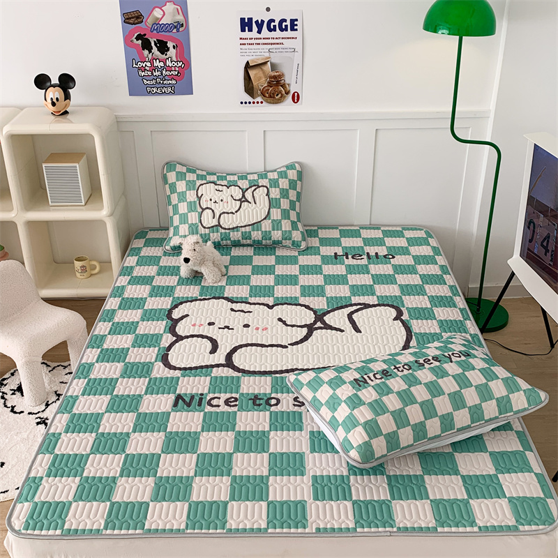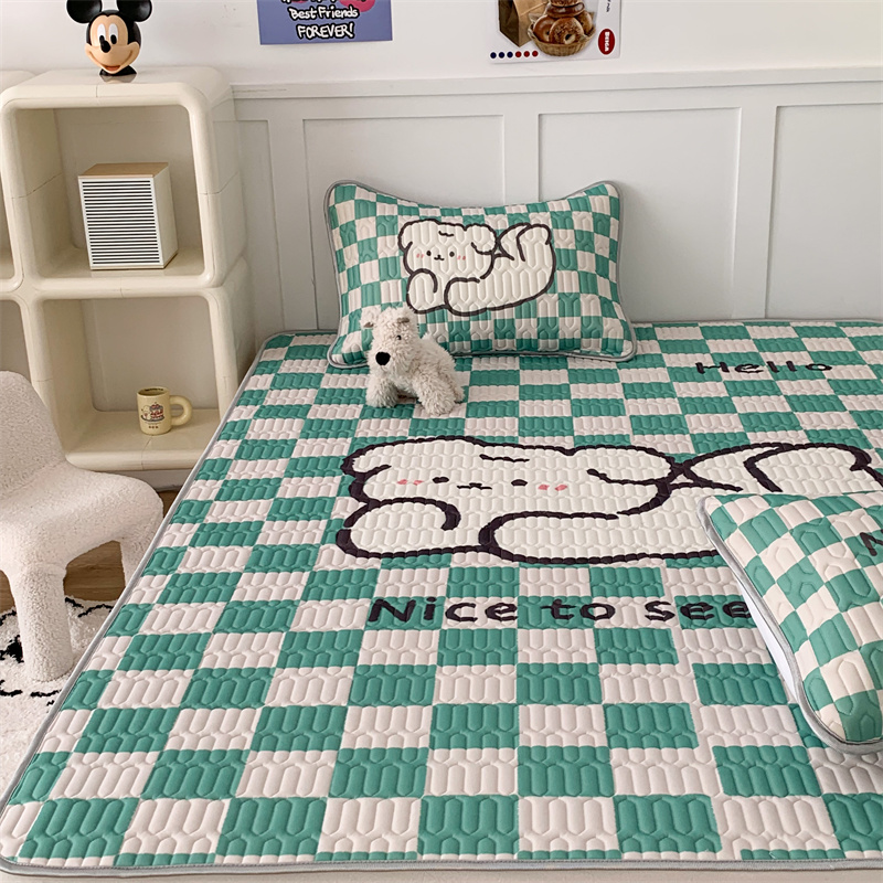 商品名称:昔可家纺 2023新款大版卡通乳胶凉席第二批 绿色棋盘格狗