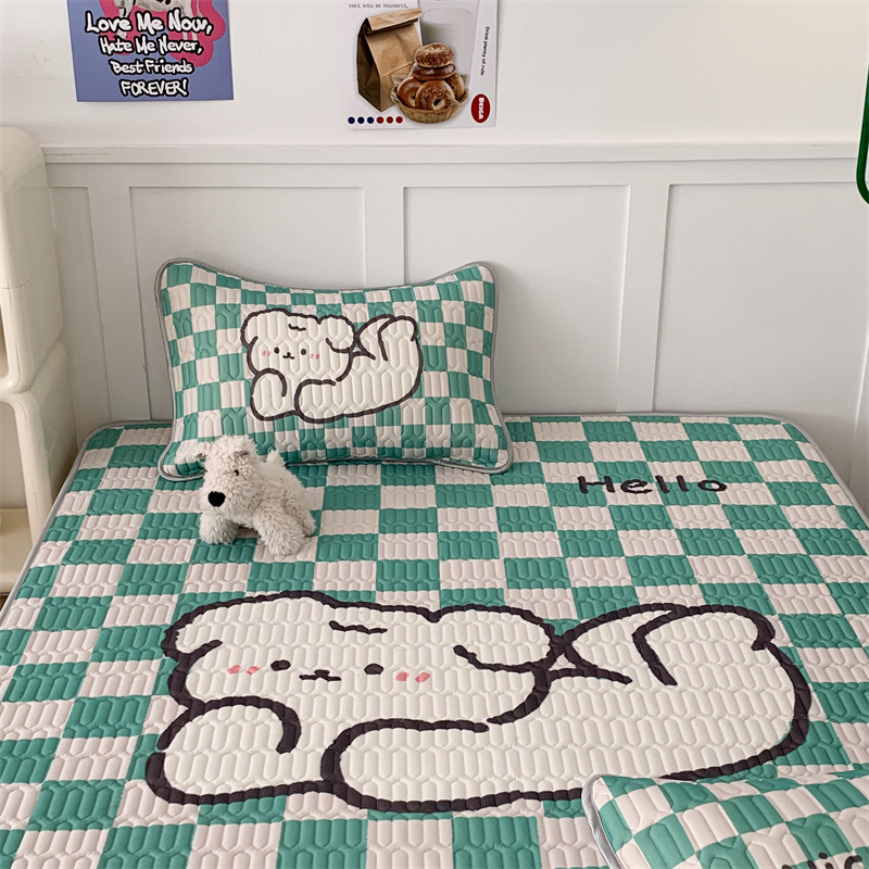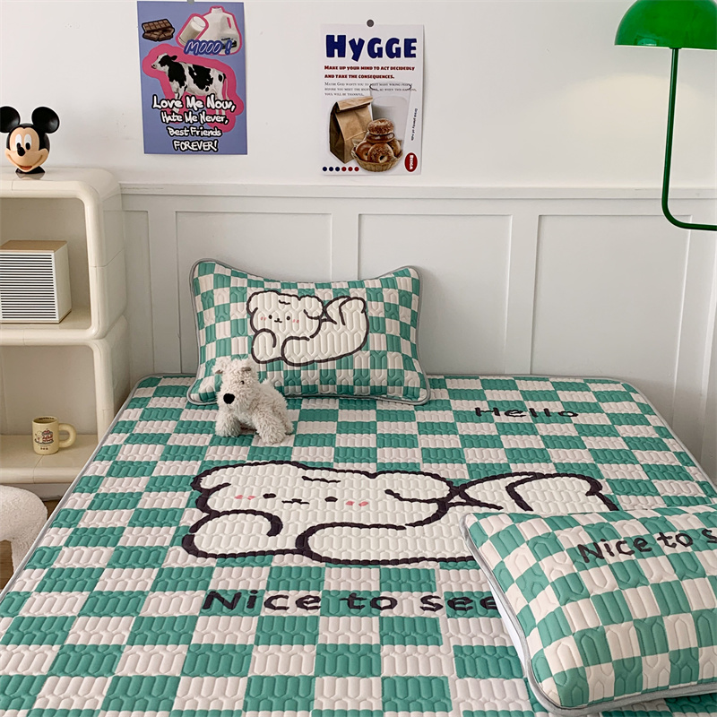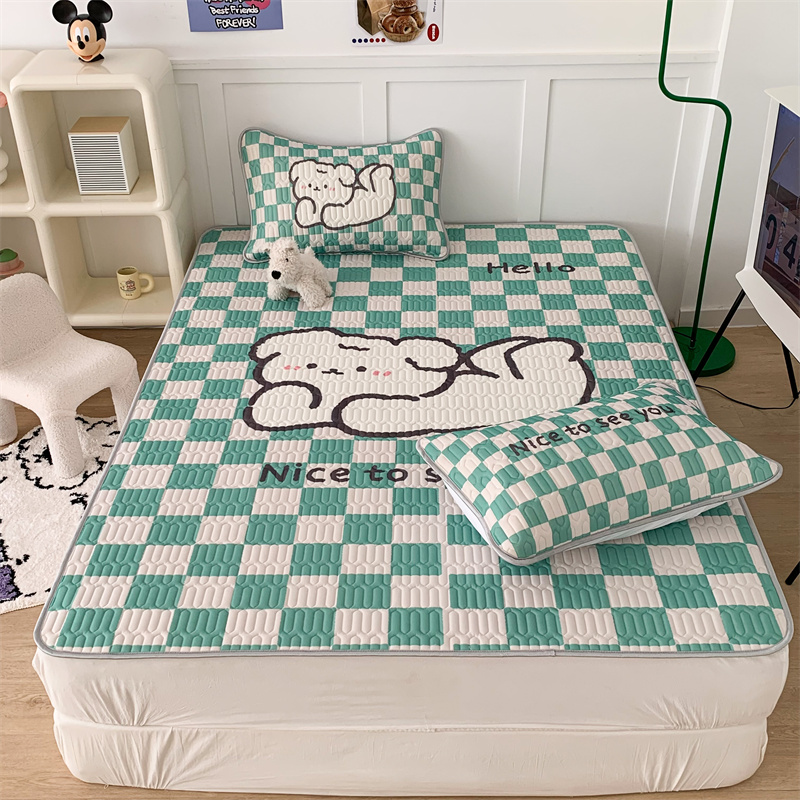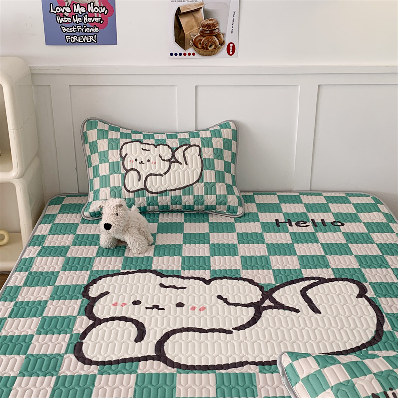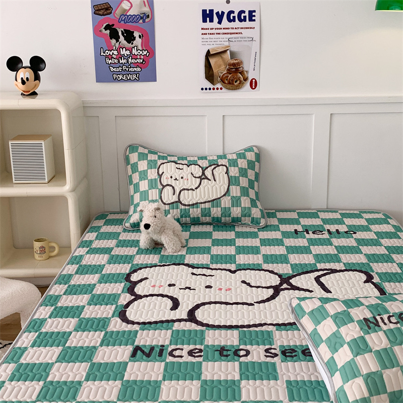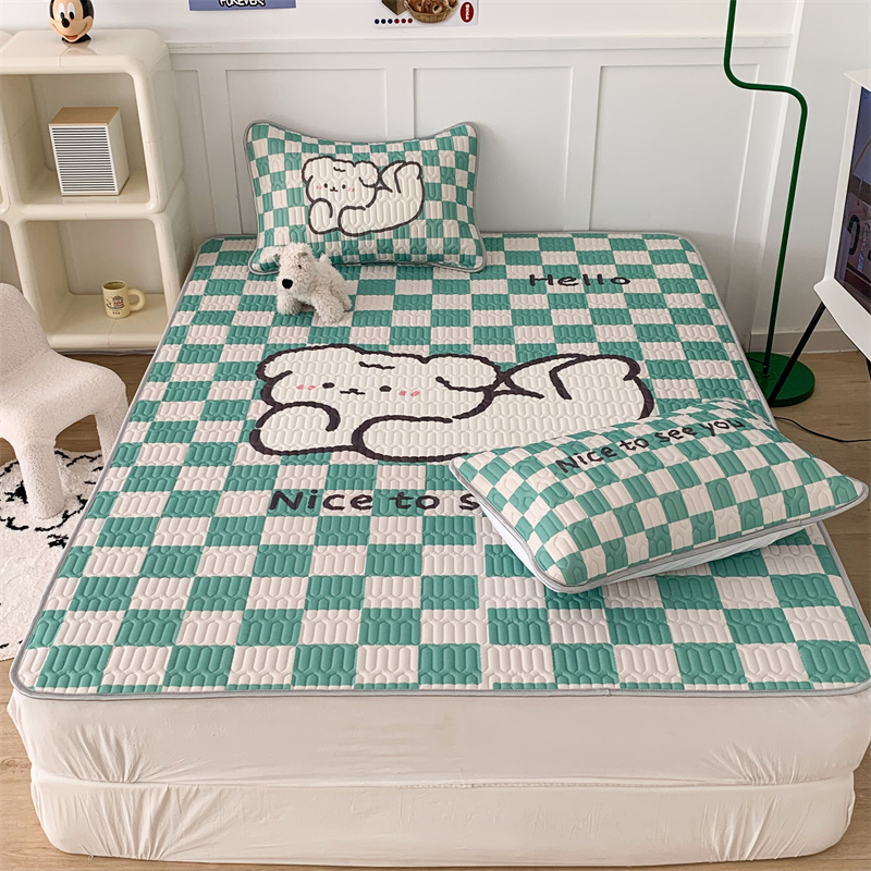 商品名称:昔可家纺 2023新款大版卡通乳胶凉席第二批 绿色棋盘格狗