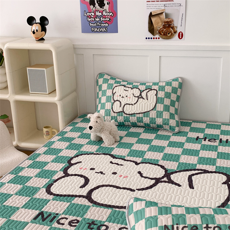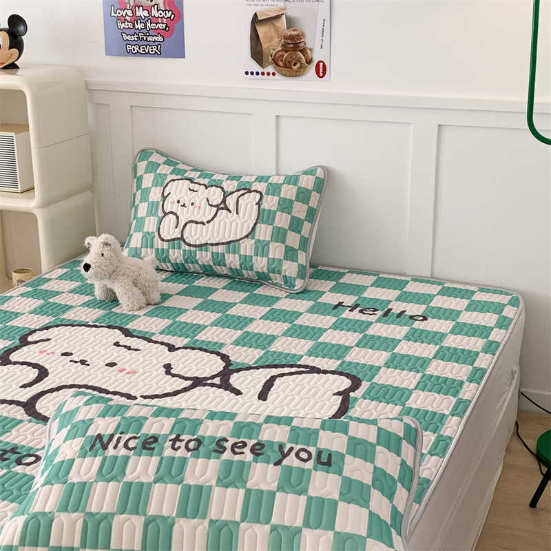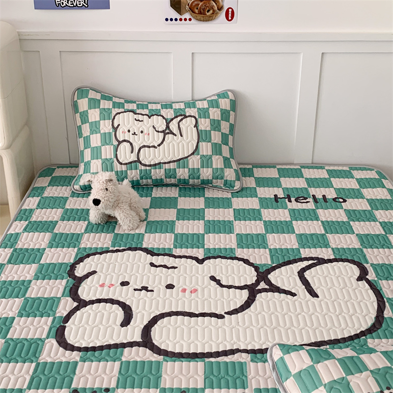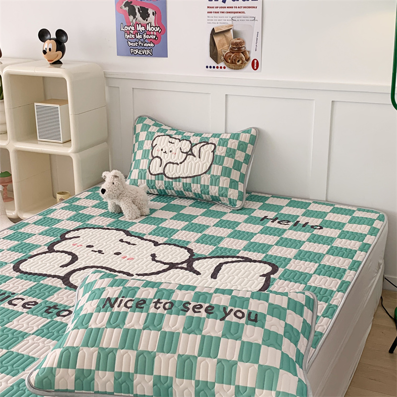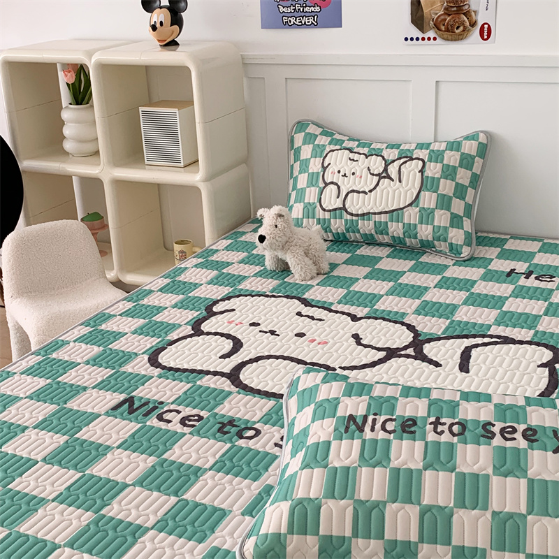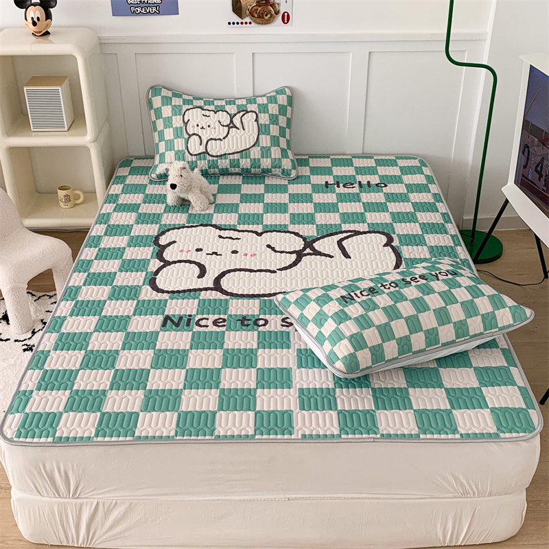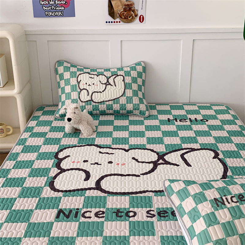商品名称:昔可家纺 2023新款大版卡通乳胶凉席第二批 绿色棋盘格狗