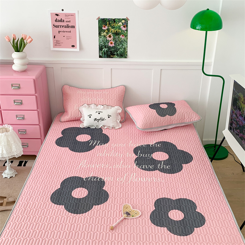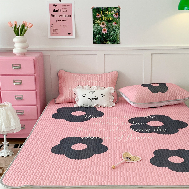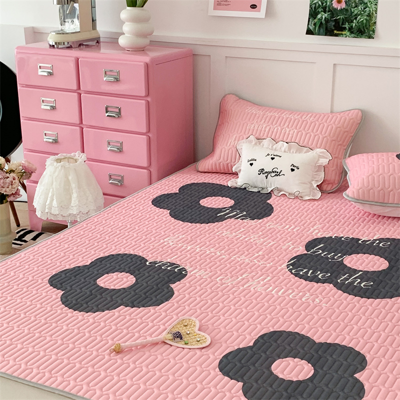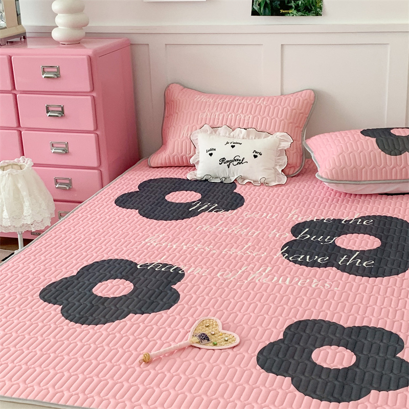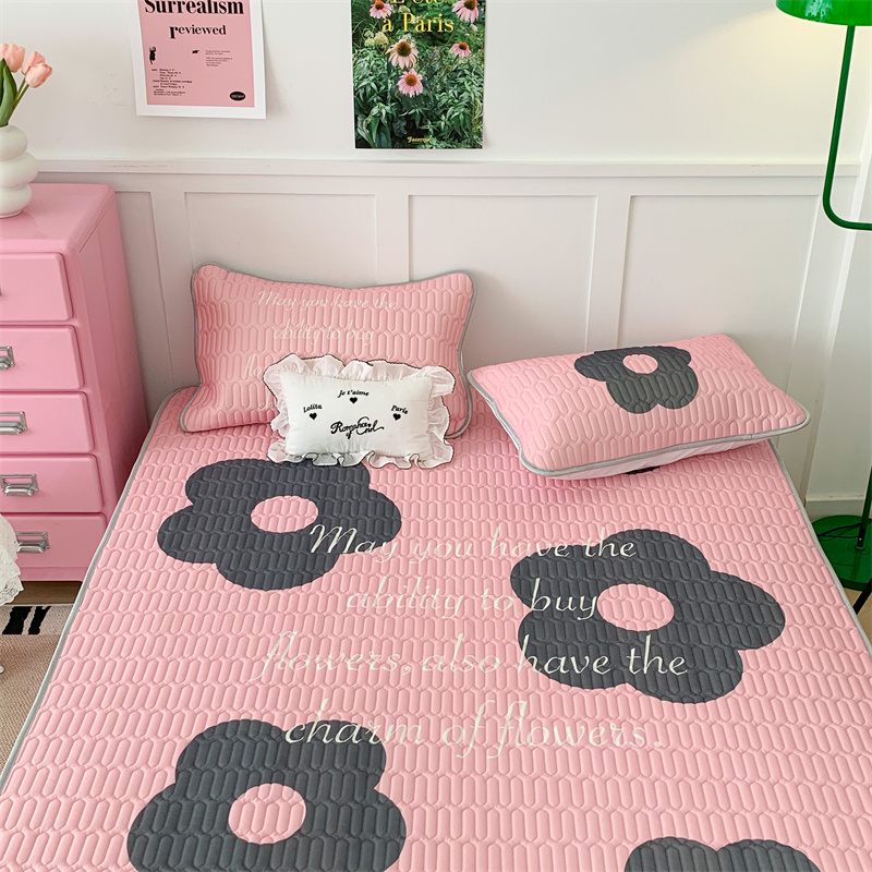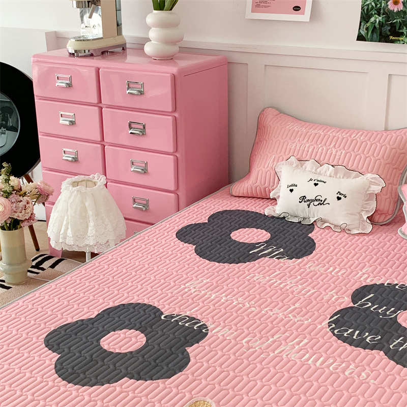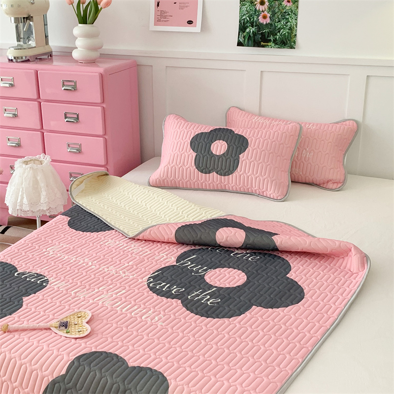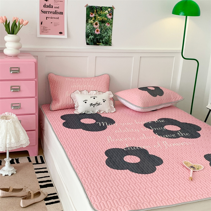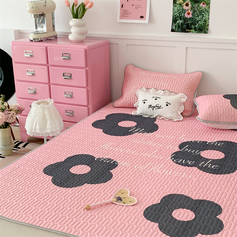 昔可家纺 2023新款甜酷黑粉系列乳胶凉席 甜酷黑粉花花