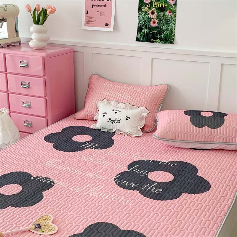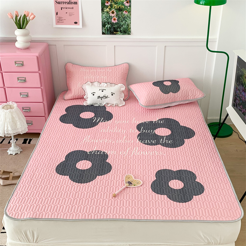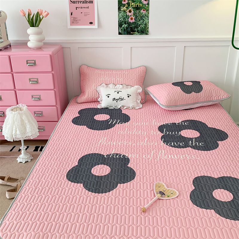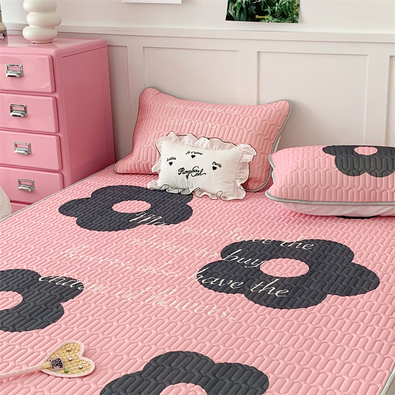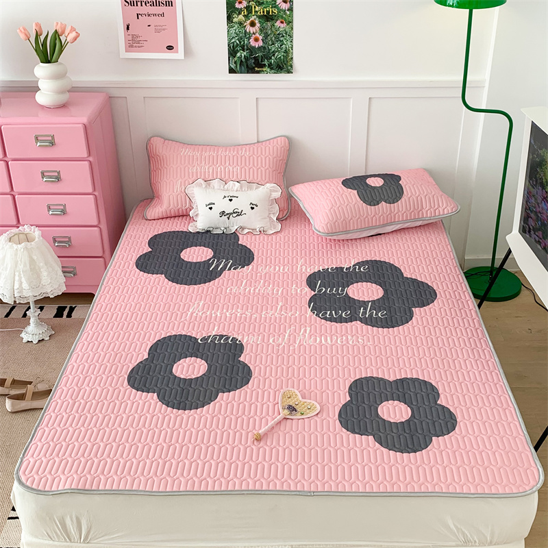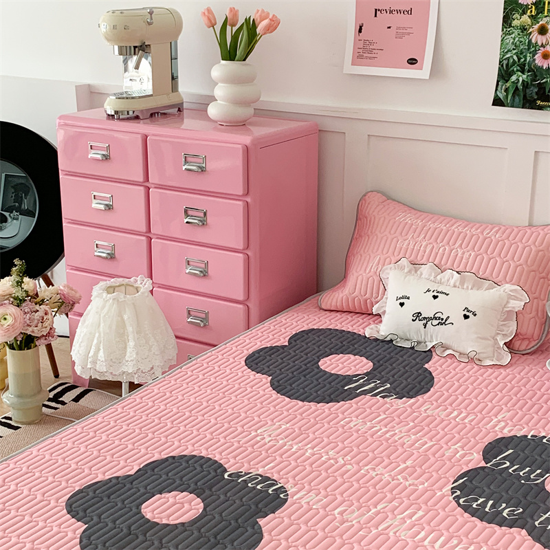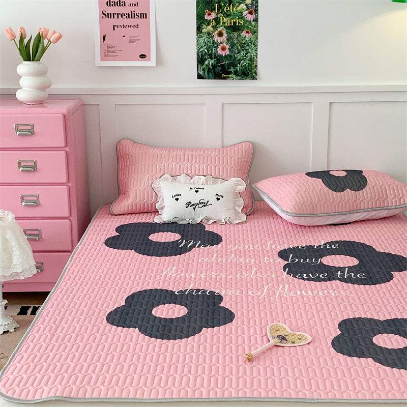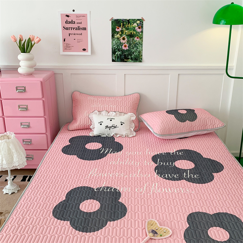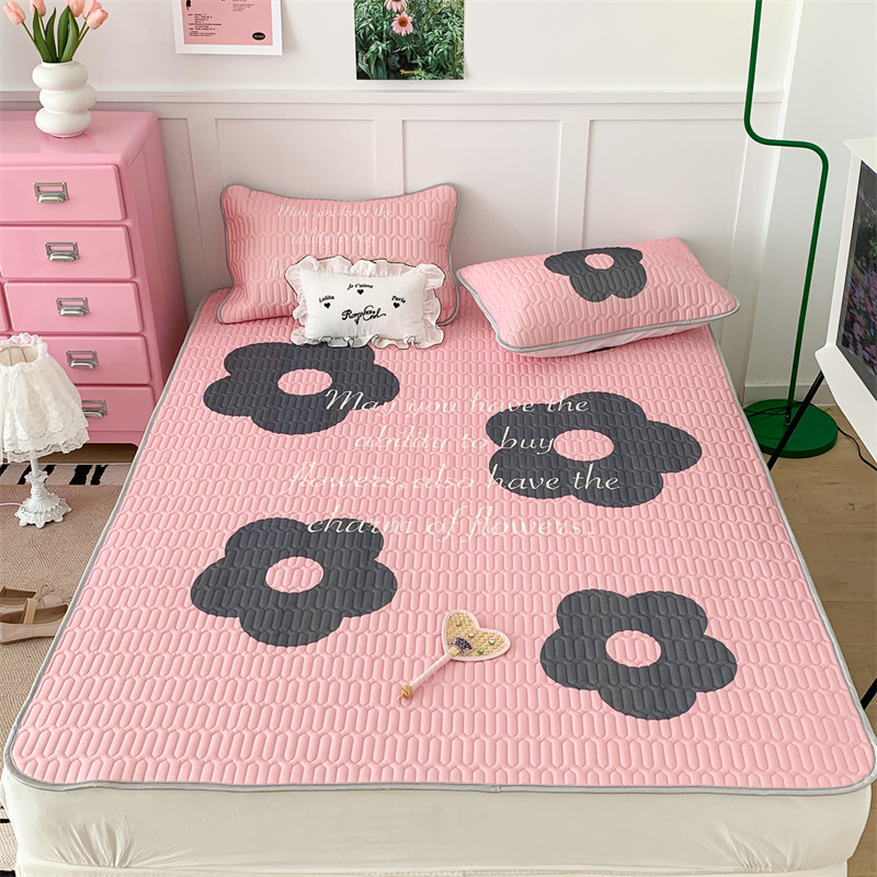 昔可家纺 2023新款甜酷黑粉系列乳胶凉席 甜酷黑粉花花