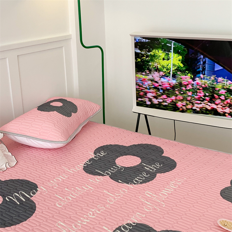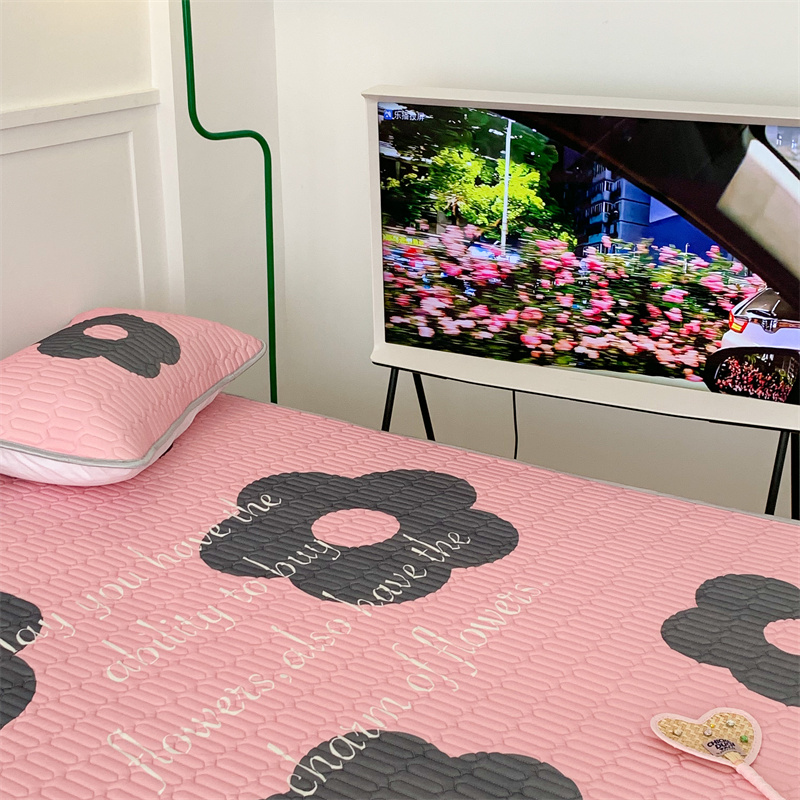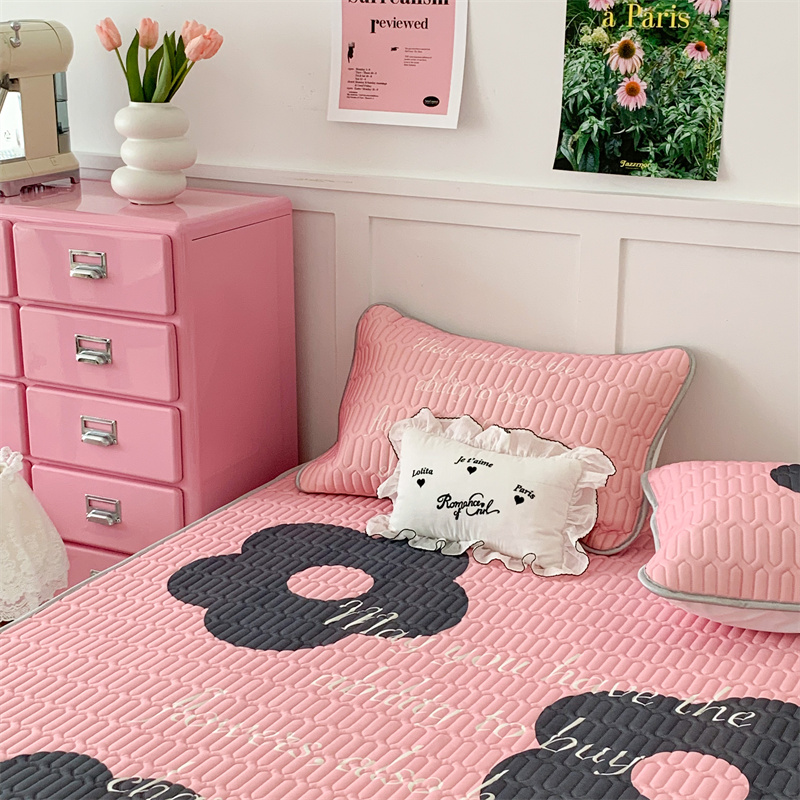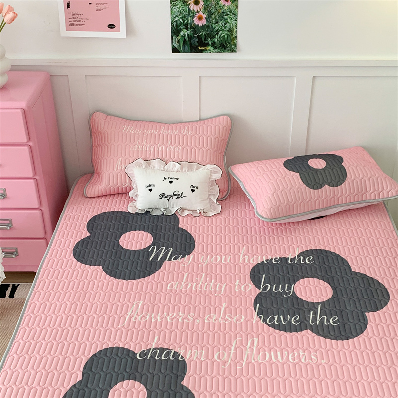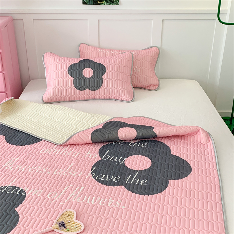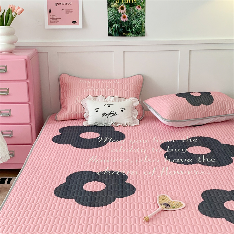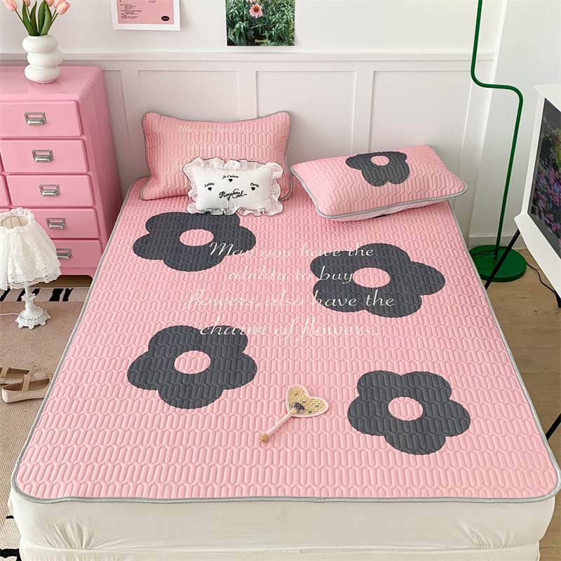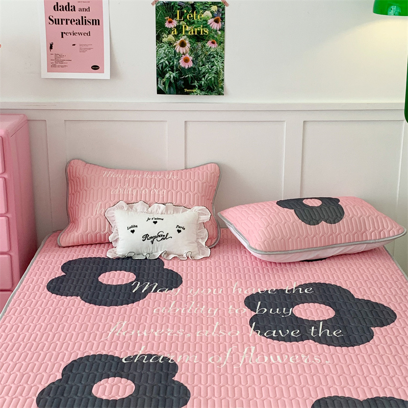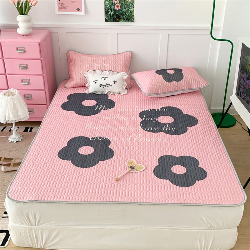 昔可家纺 2023新款甜酷黑粉系列乳胶凉席 甜酷黑粉花花