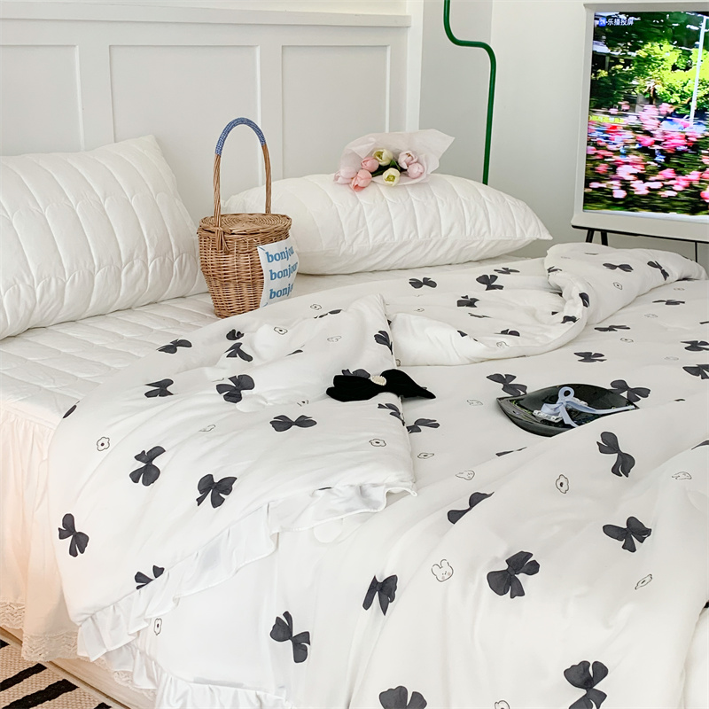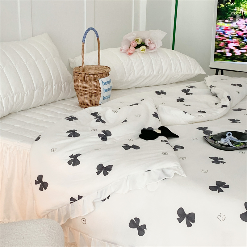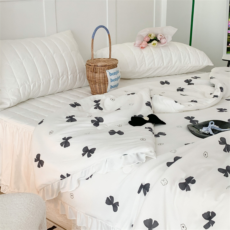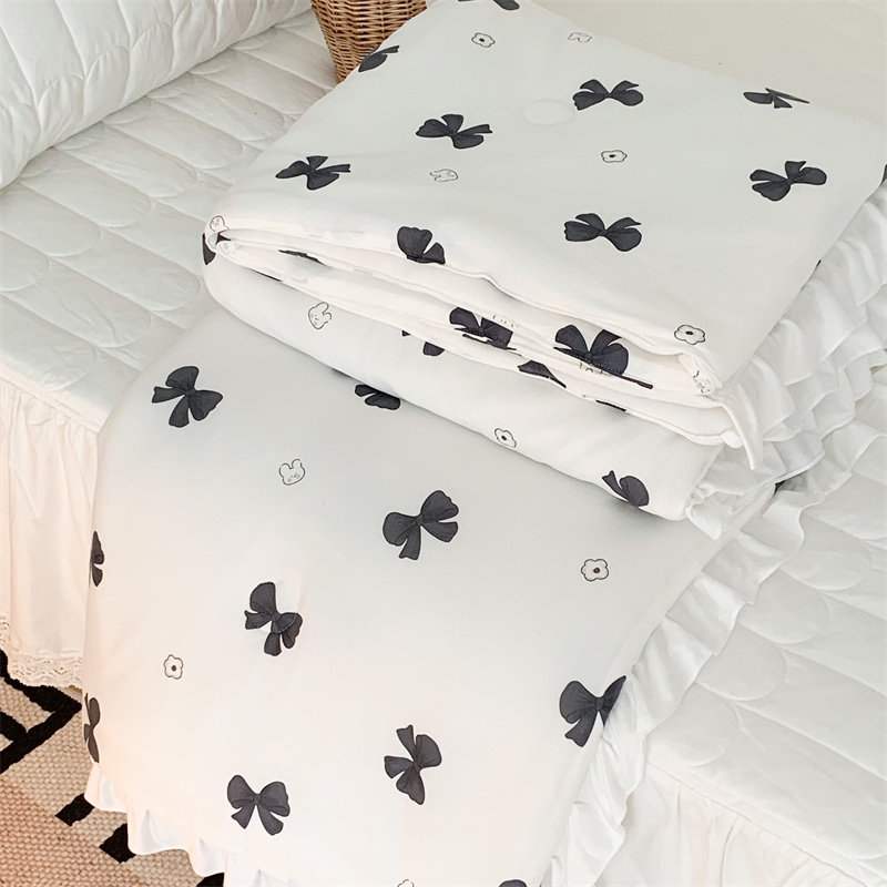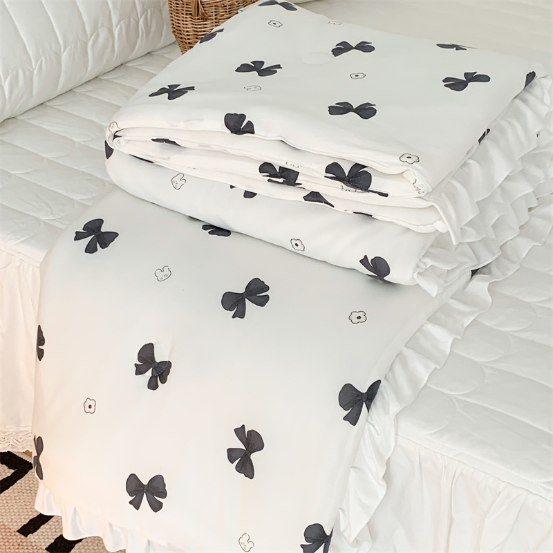 昔可家纺 2023新款花边款云柔针织大豆夏被 小熊蝴蝶结黑