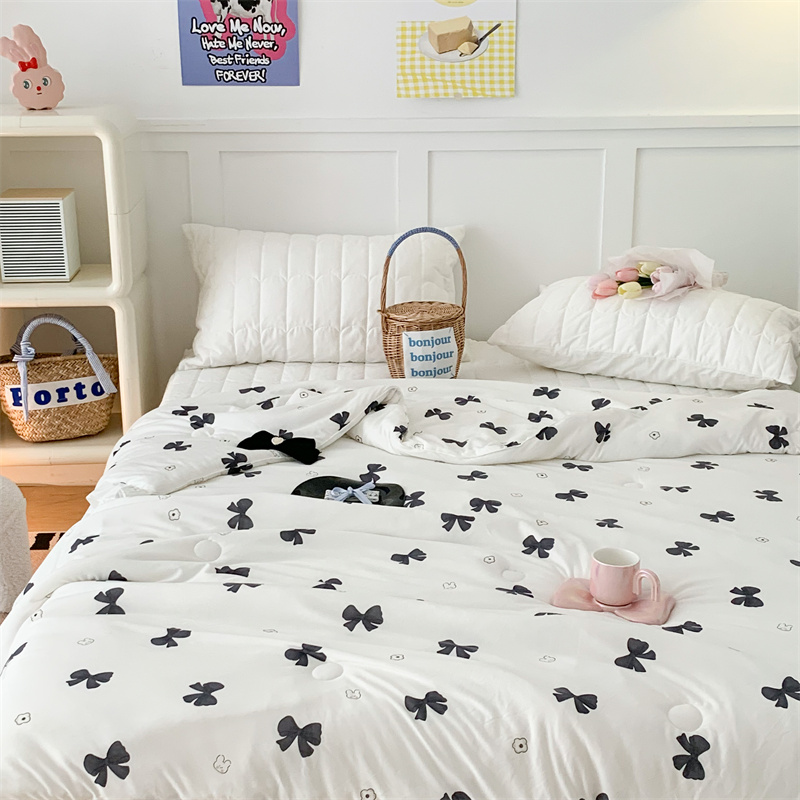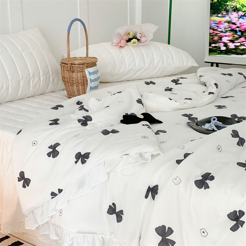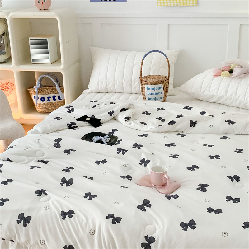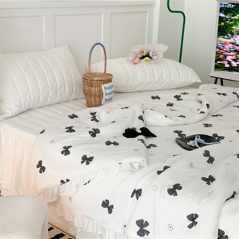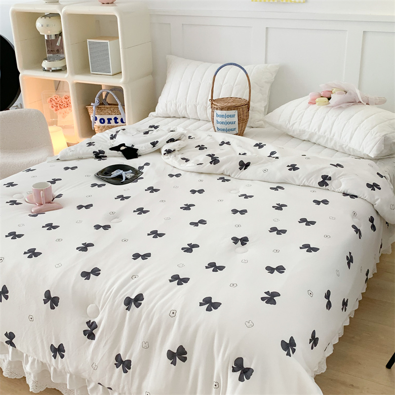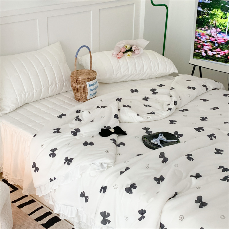 昔可家纺 2023新款花边款云柔针织大豆夏被 小熊蝴蝶结黑