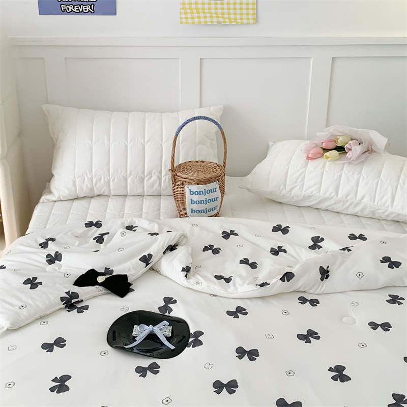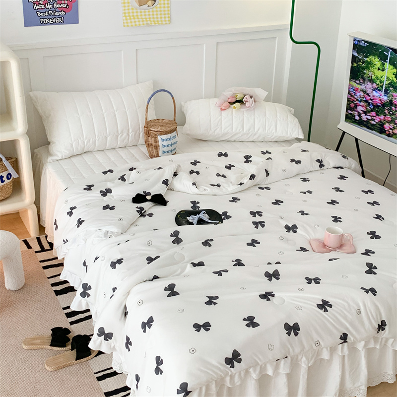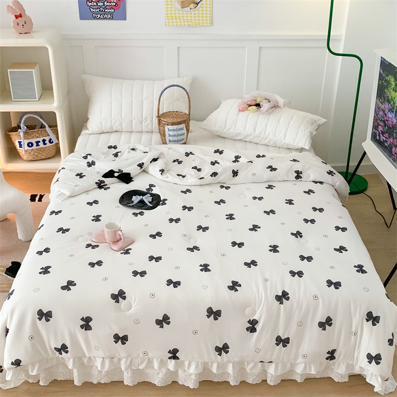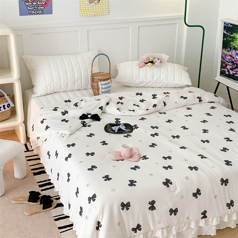 商品名称:昔可家纺 2023新款花边款云柔针织大豆夏被 小熊蝴蝶结黑