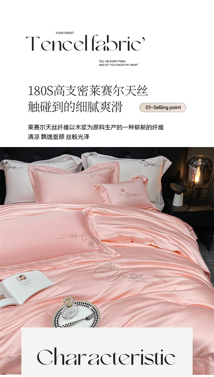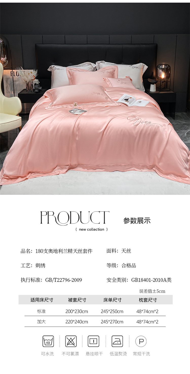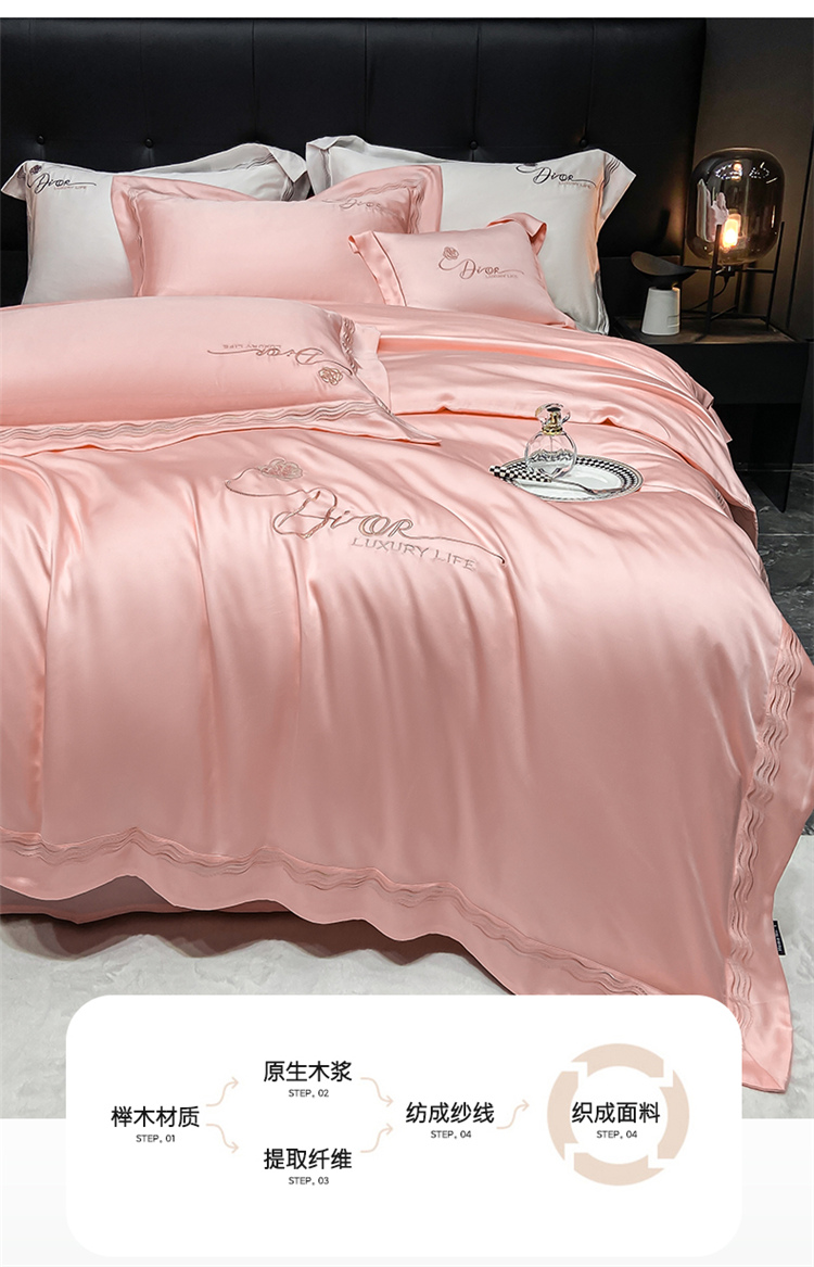 商品名称:家居1号 2024新款180支奥地利兰精天丝四件套 迪莉尔-荷粉