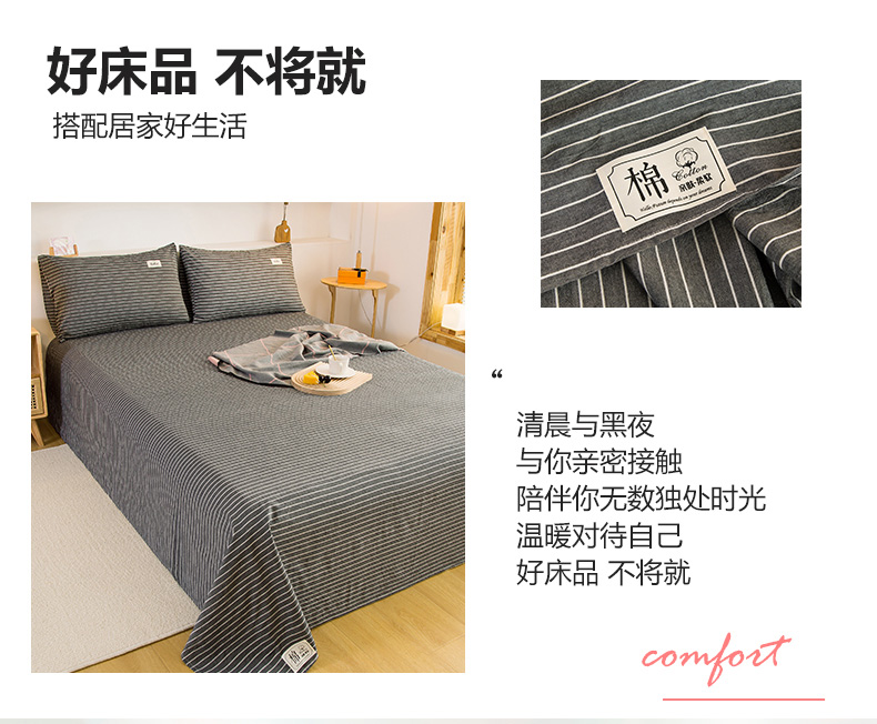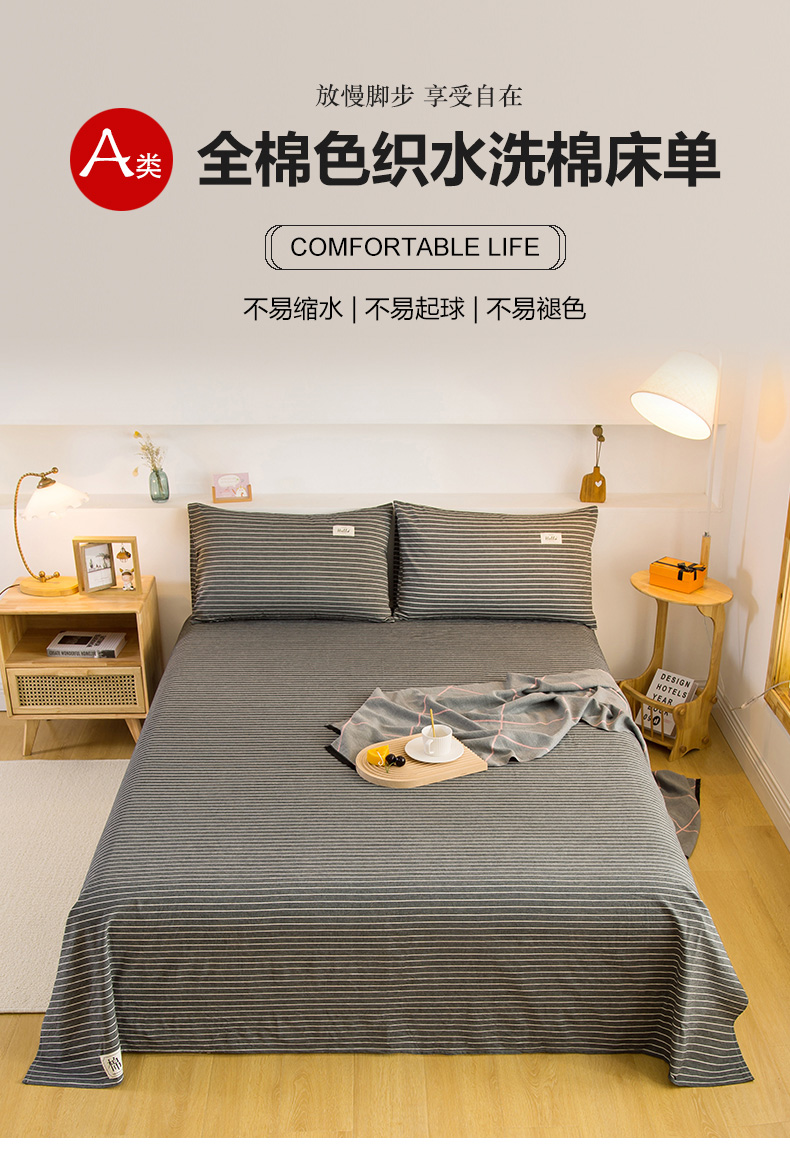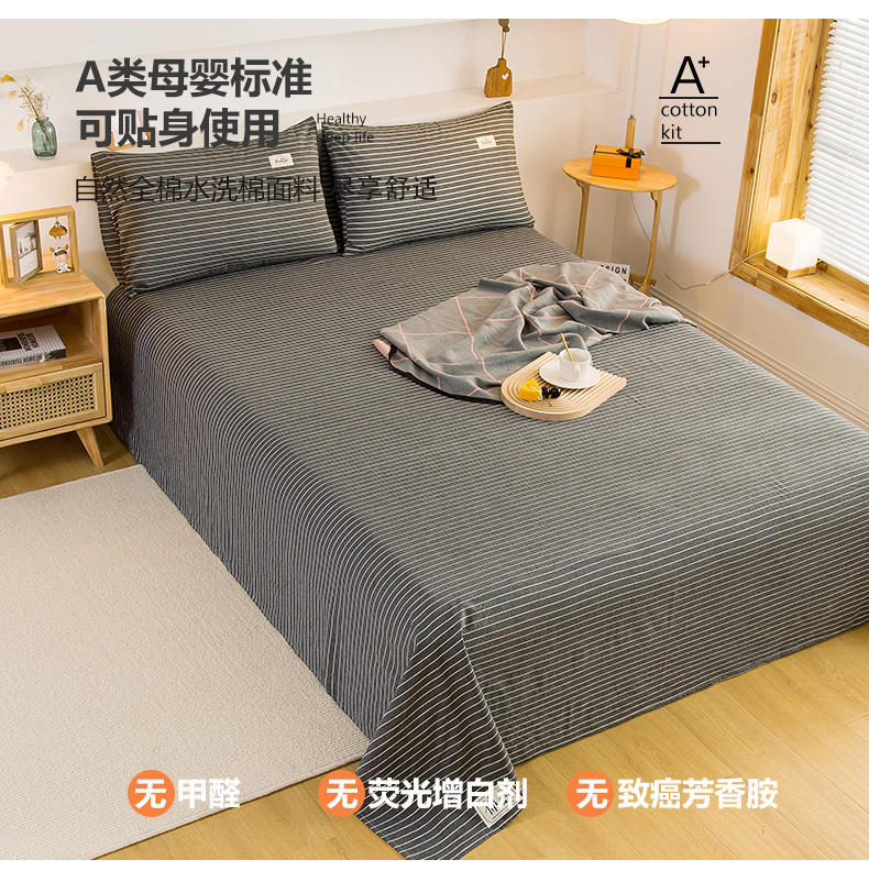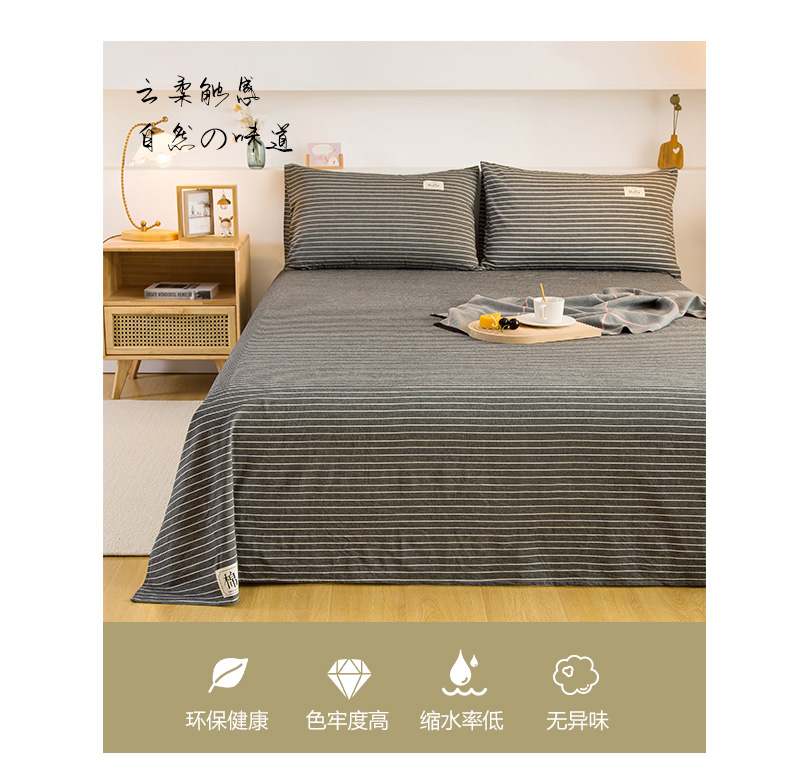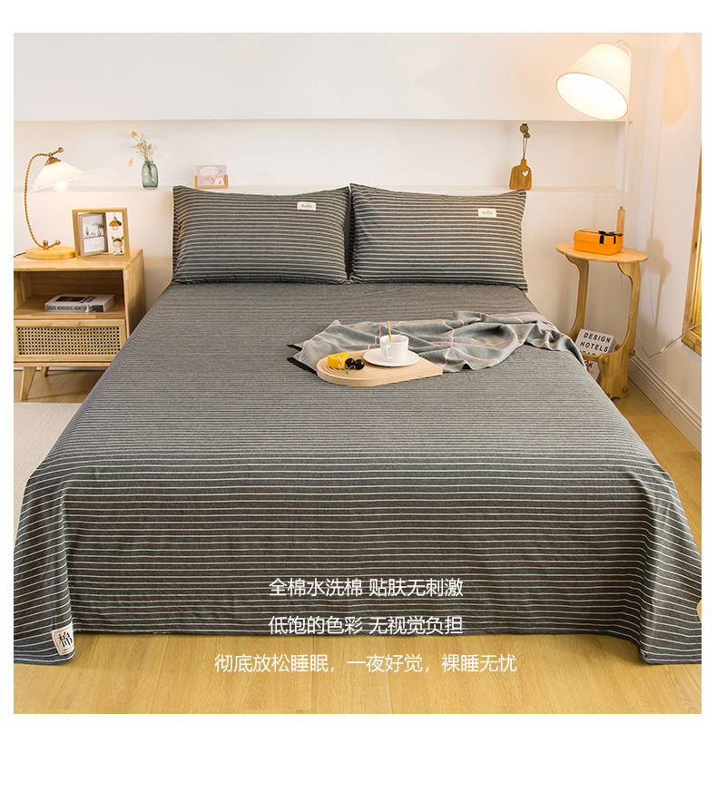 柠萌家居 2023最新无印良品风格A类全棉色织水洗棉单床单 中条纹深灰