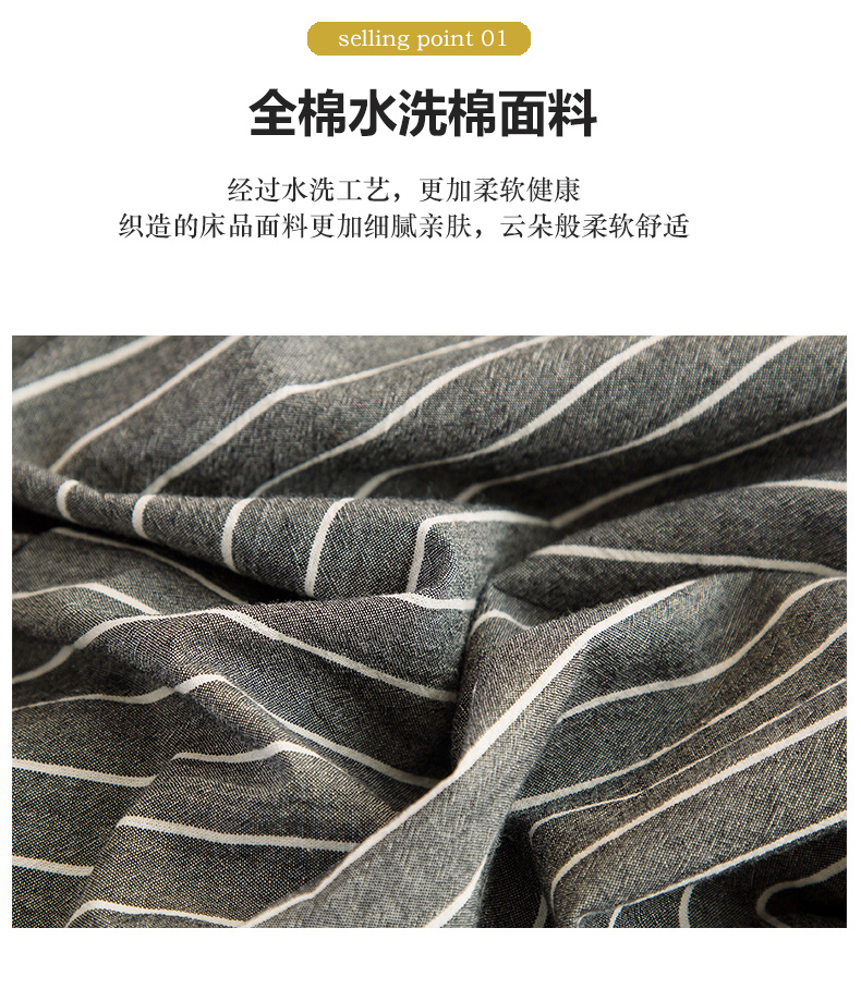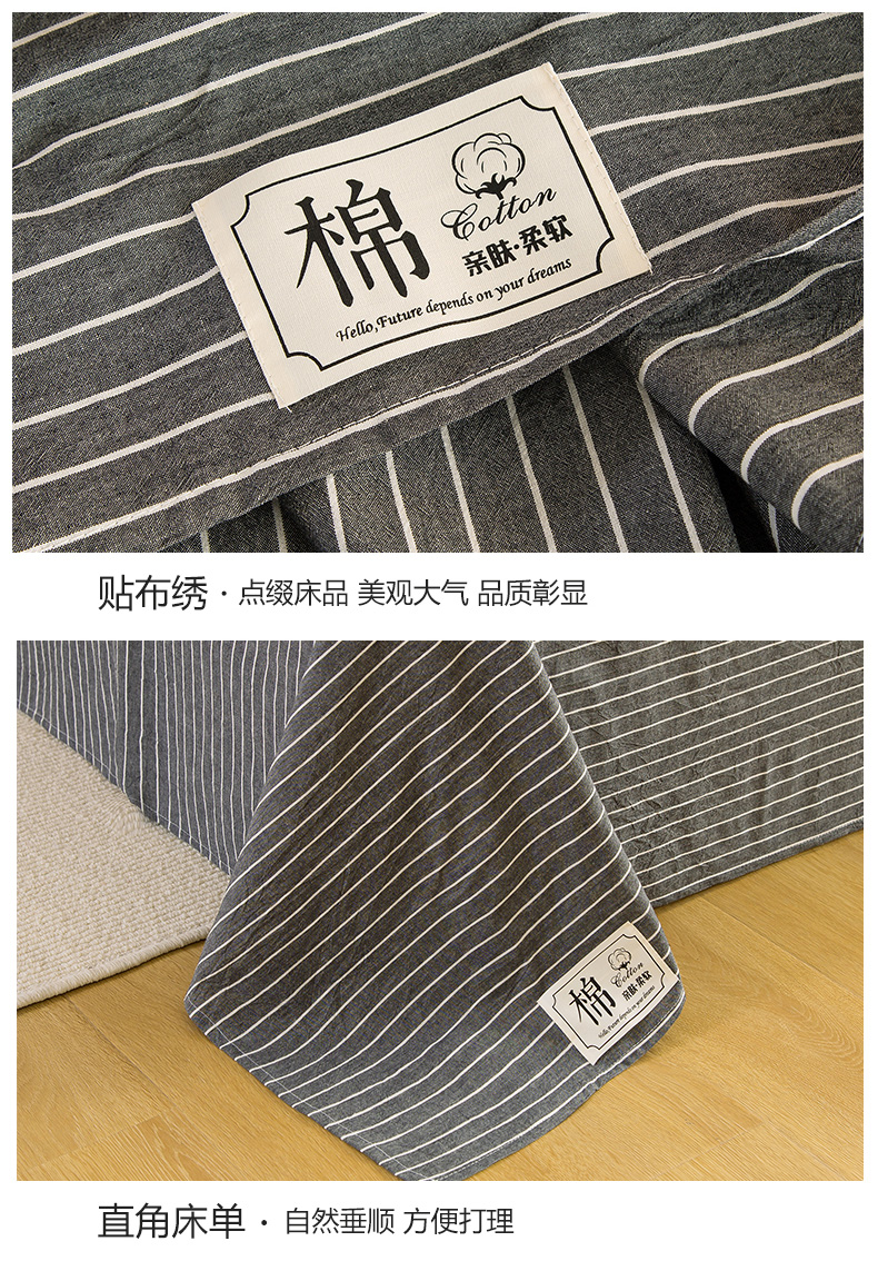 • 91家纺网 家纺一手货源 找家纺 柠萌家居 2023最新无印良品风格A类全棉色织水洗棉单床单 中条纹深灰