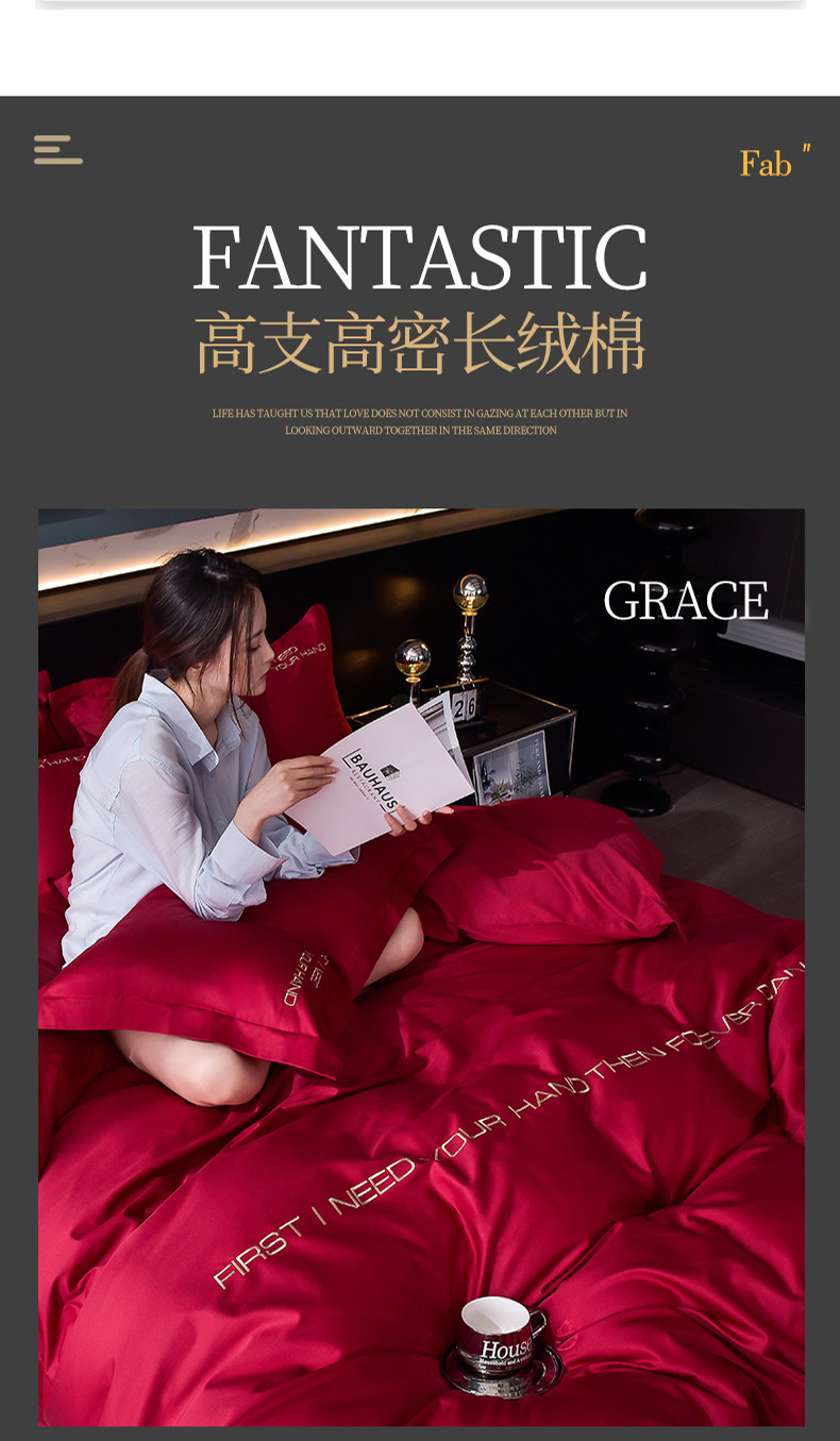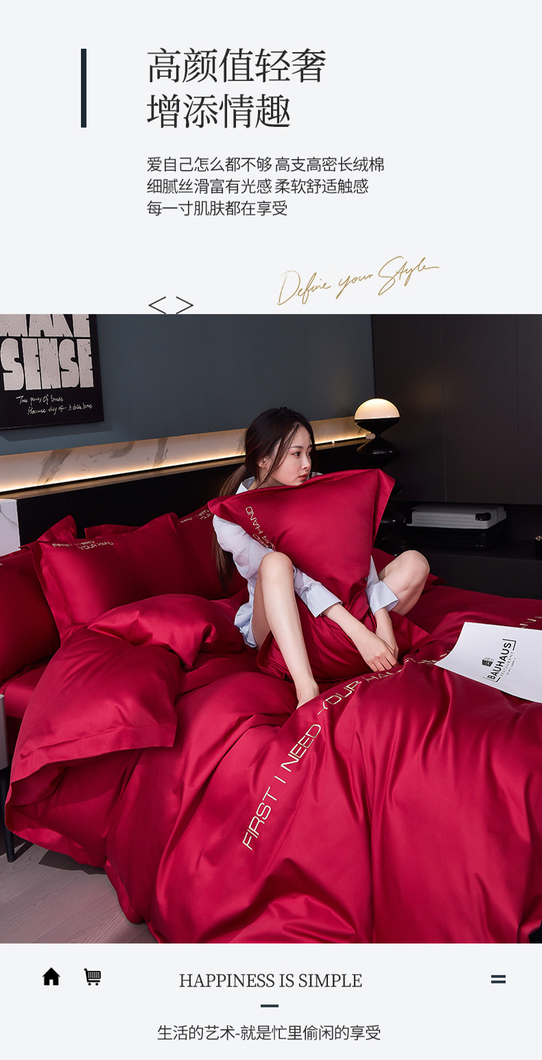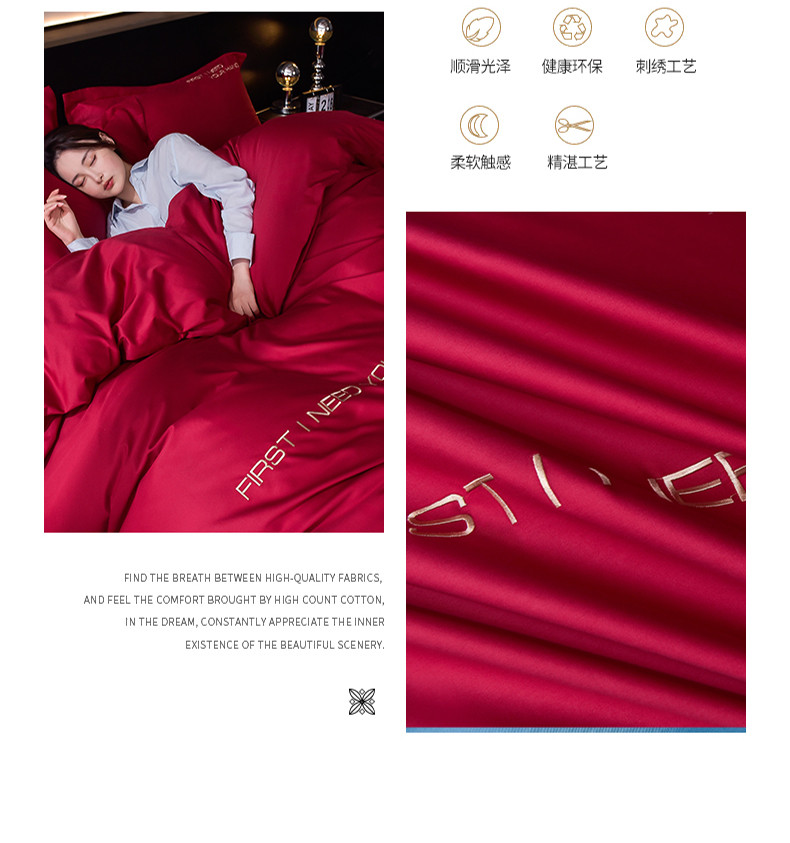 商品名称:米奈2024新款100支长绒棉四件套《莱恩》 东方红