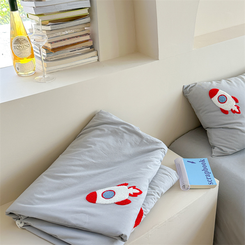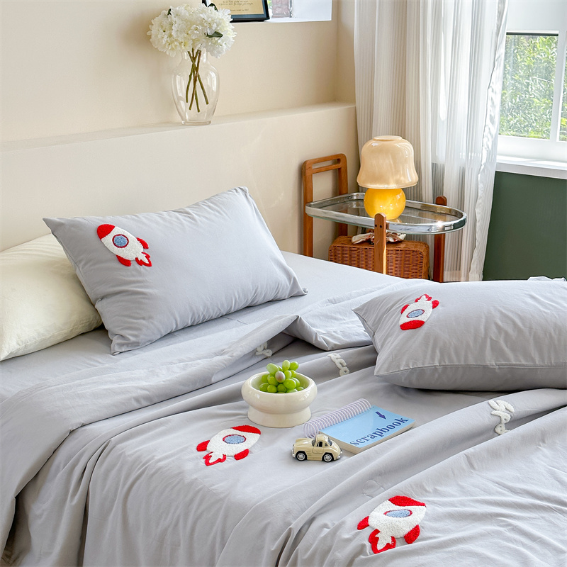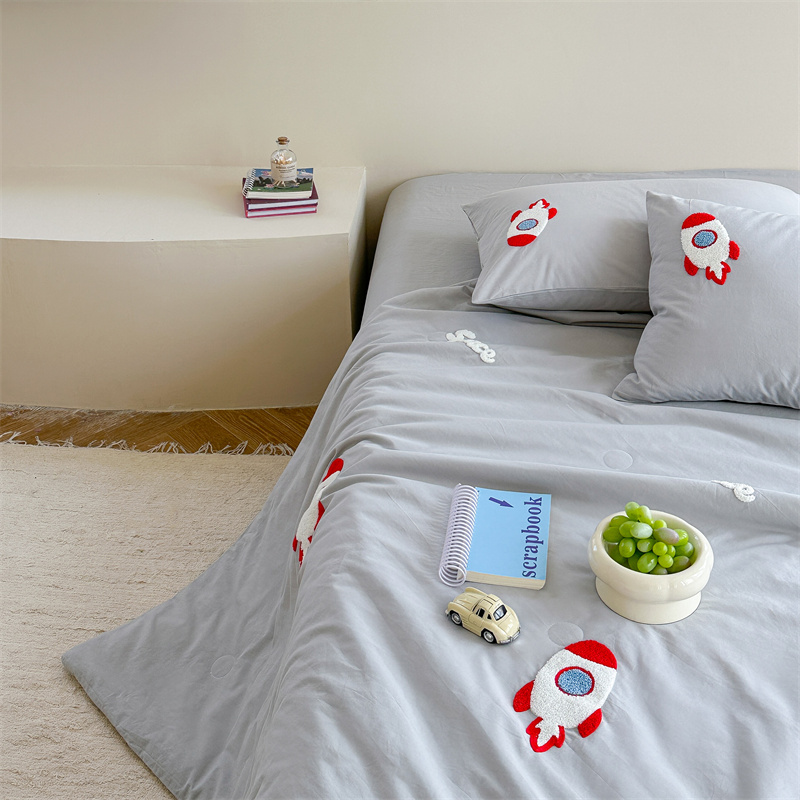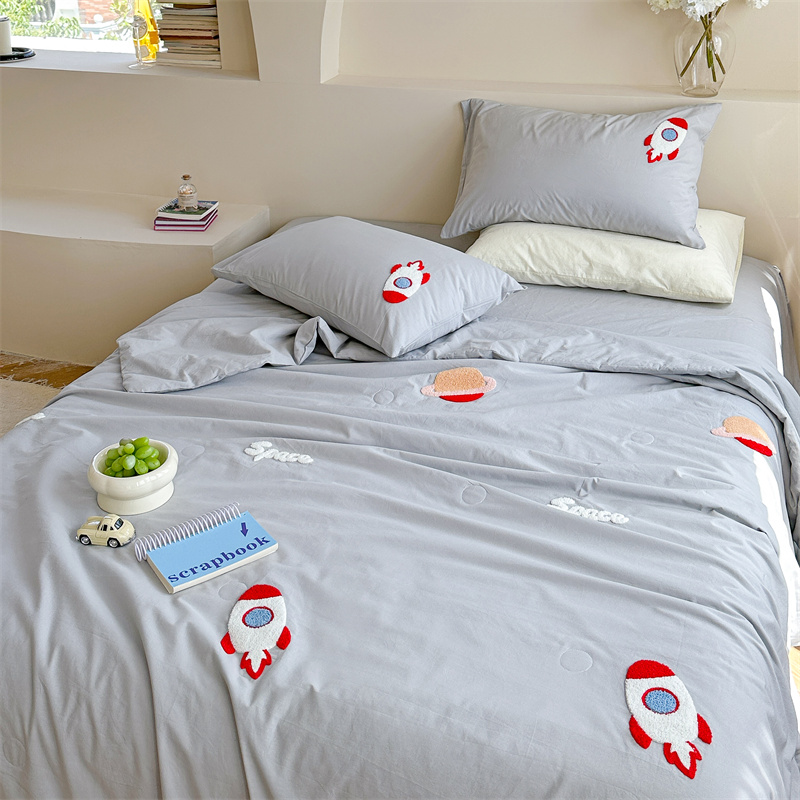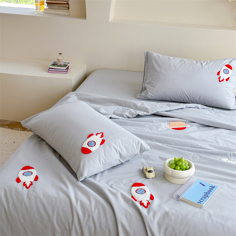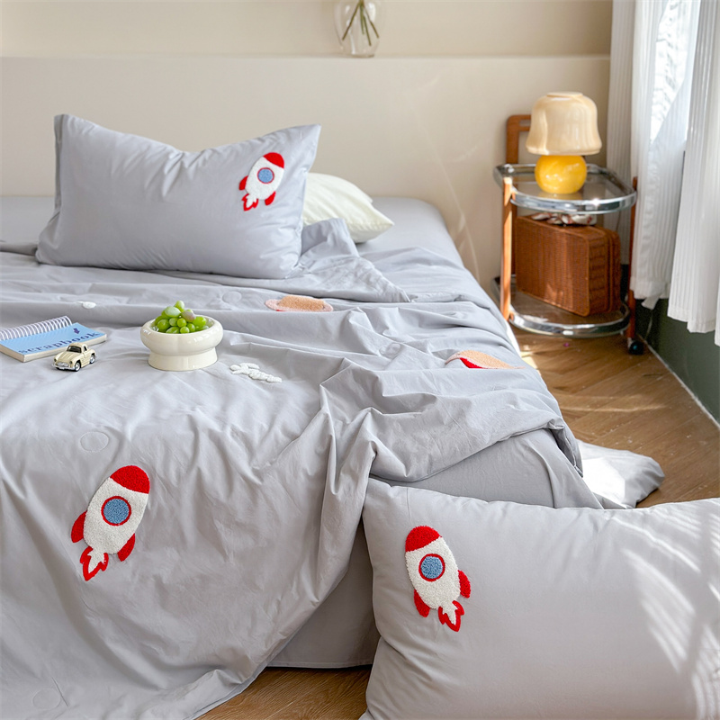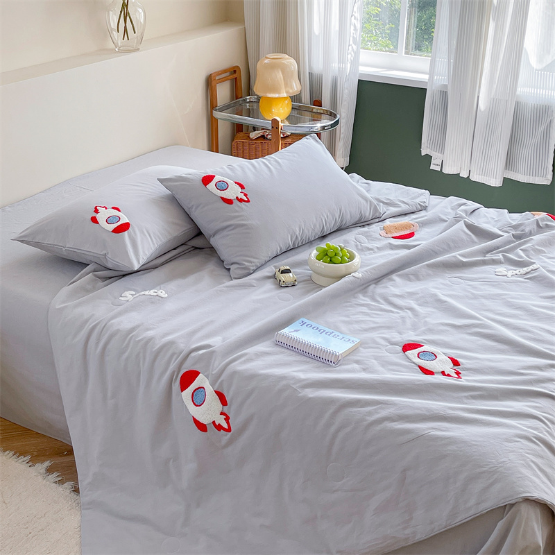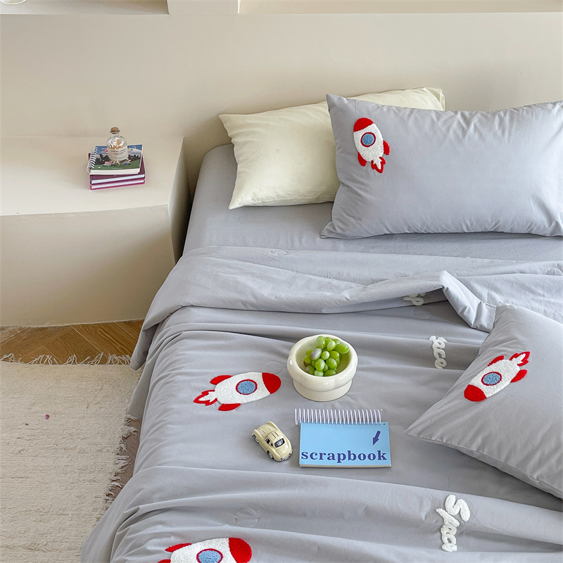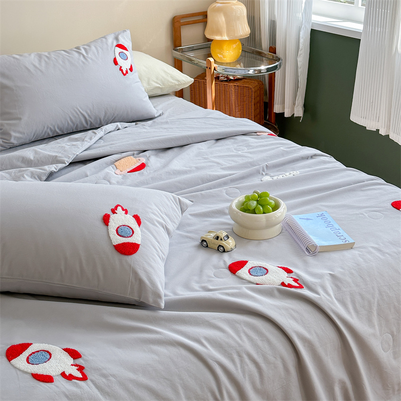 柚子YOUTH 2023新款马卡龙全棉水洗棉毛巾绣夏被四件套 小火箭