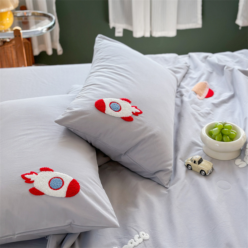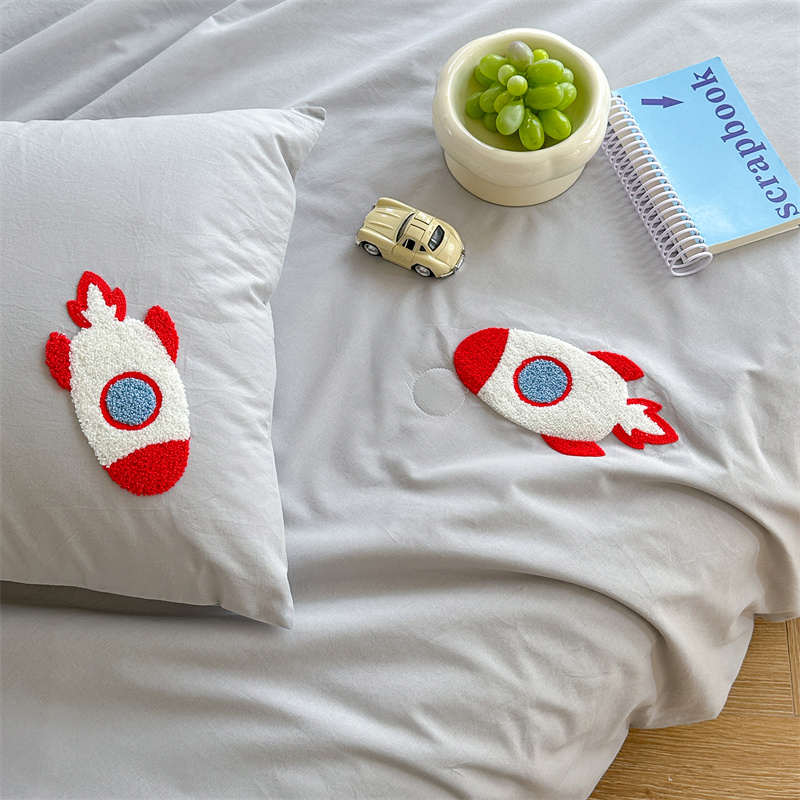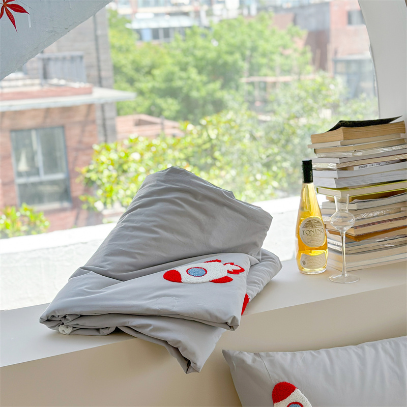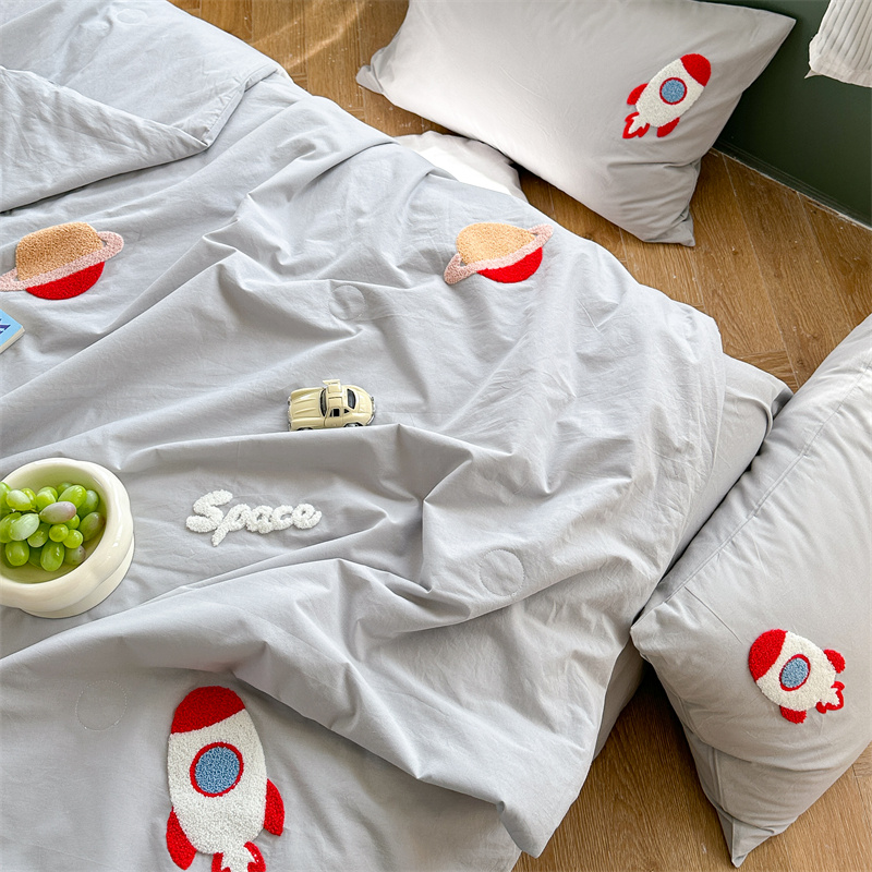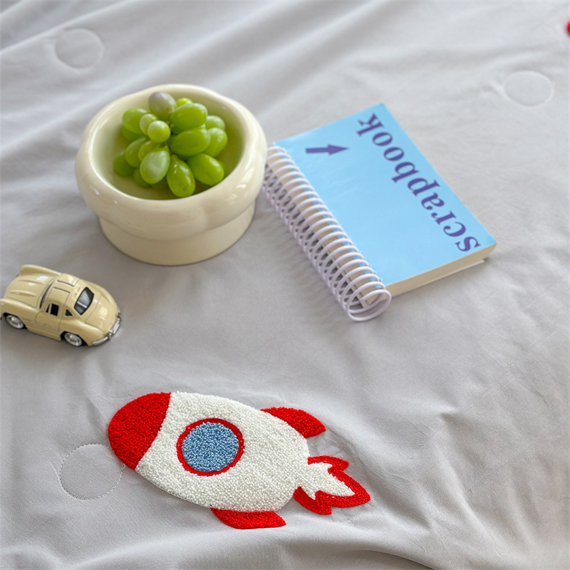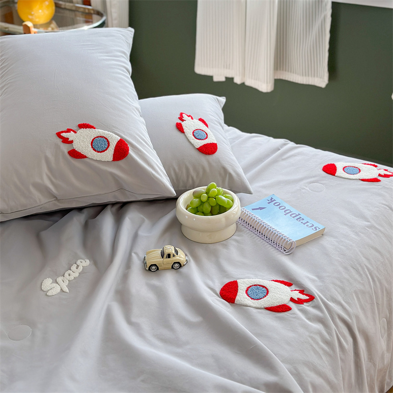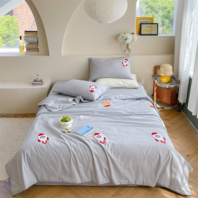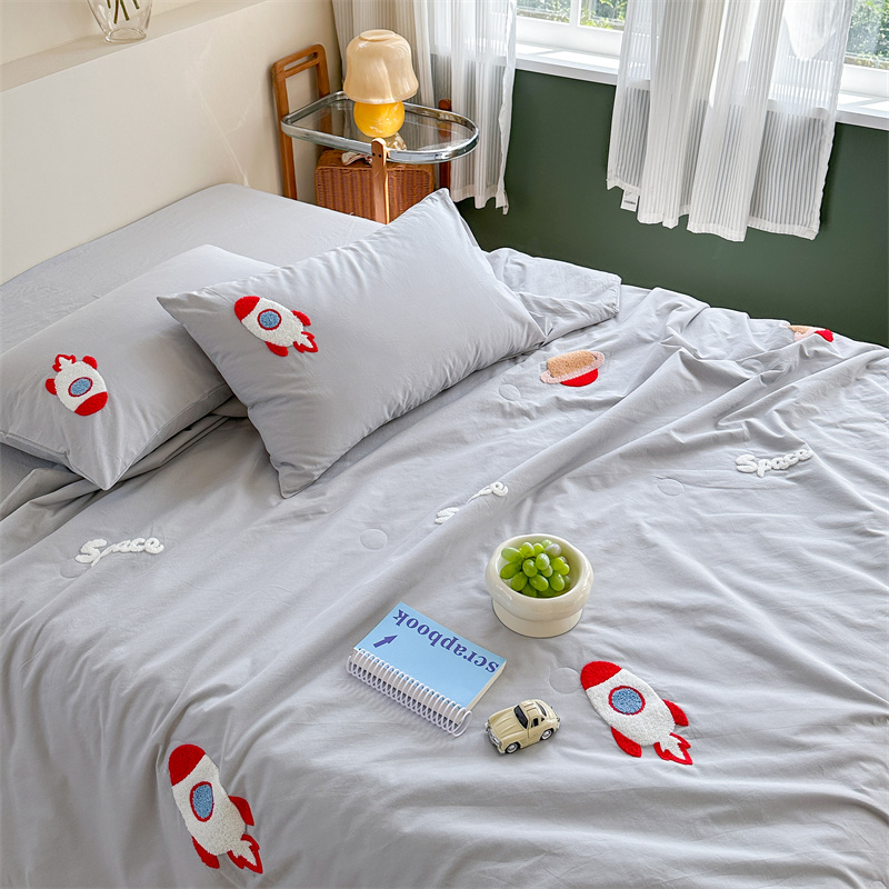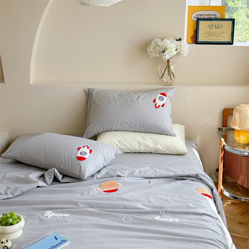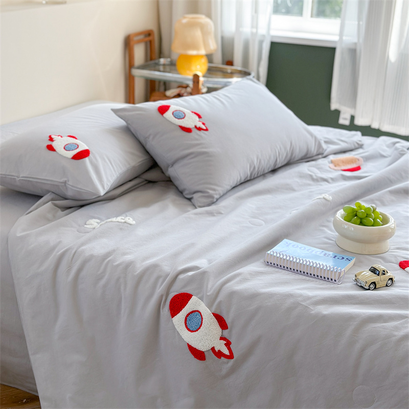 柚子YOUTH 2023新款马卡龙全棉水洗棉毛巾绣夏被四件套 小火箭
