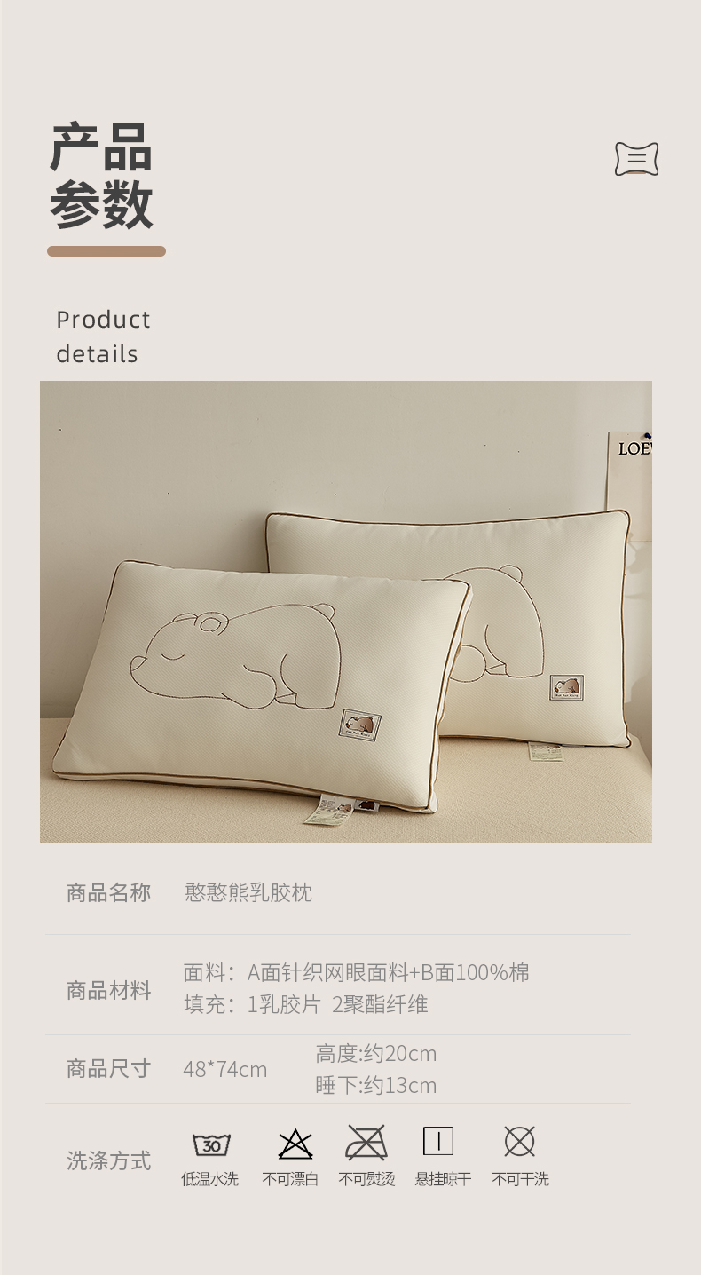 当前位置: 91家纺网 > 商品网购 > 枕头/枕芯/保健枕/颈椎枕 > 普通枕芯 > 乐可 2023新款憨憨熊乳胶枕 憨憨熊乳胶枕【单只装】