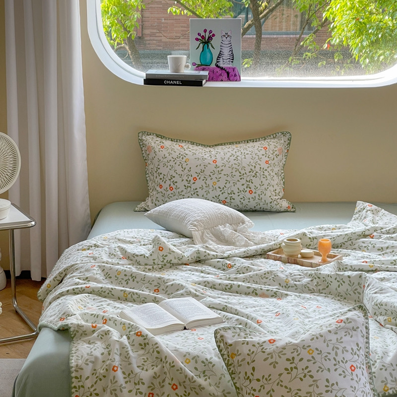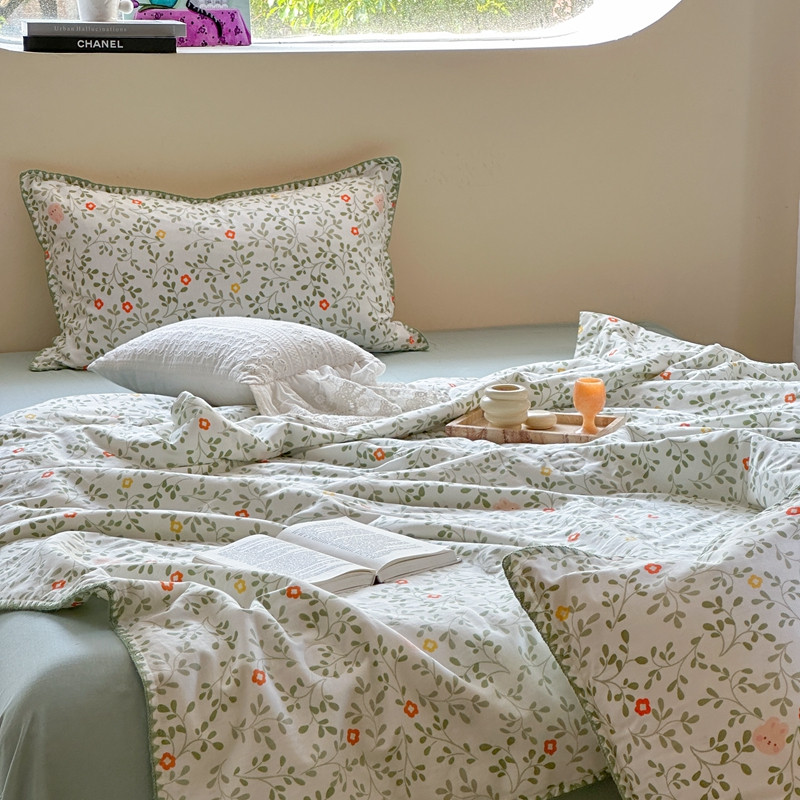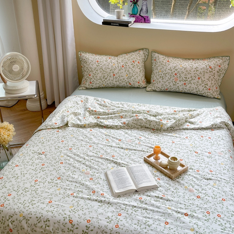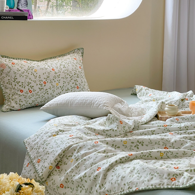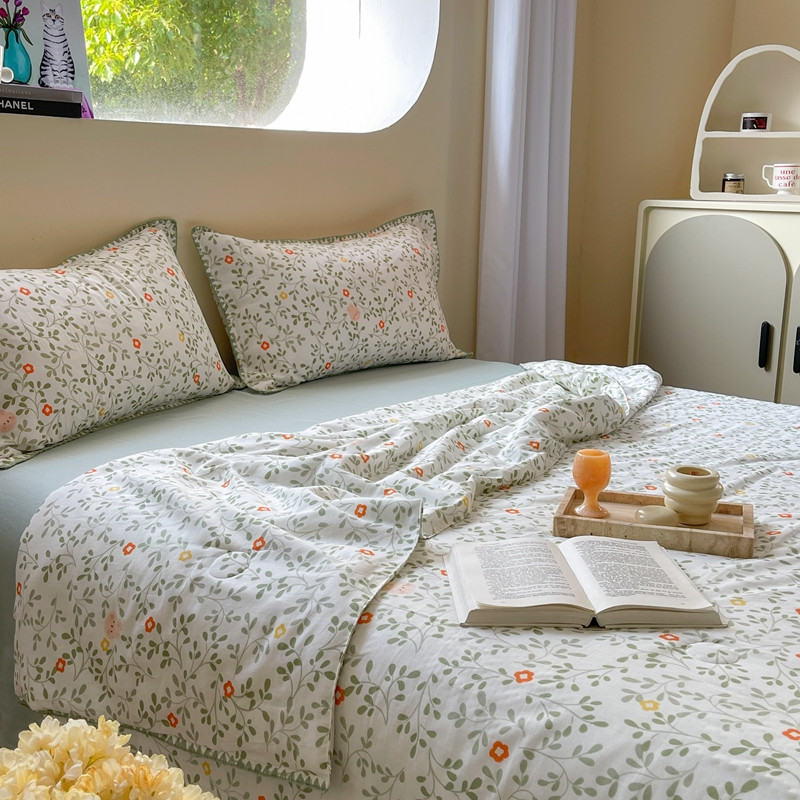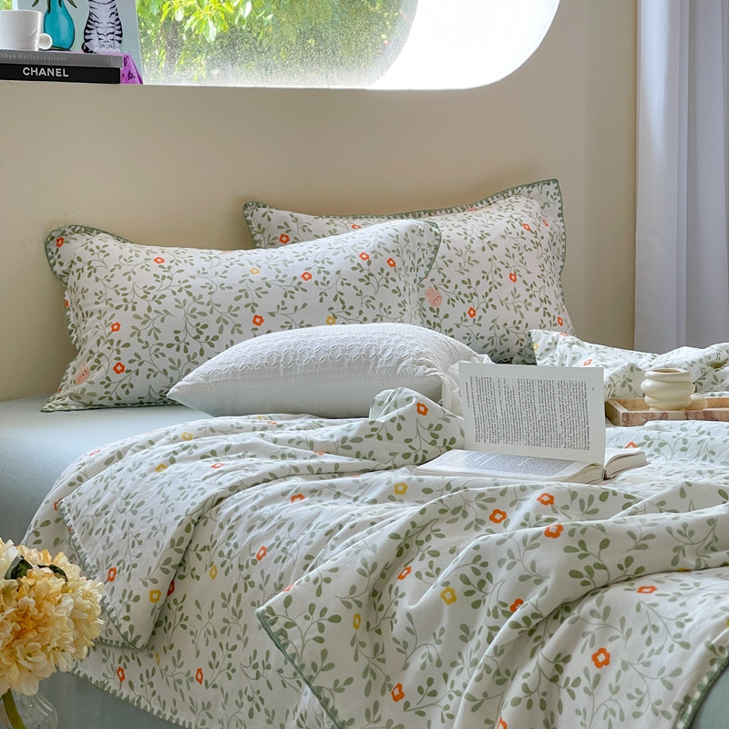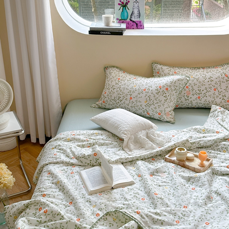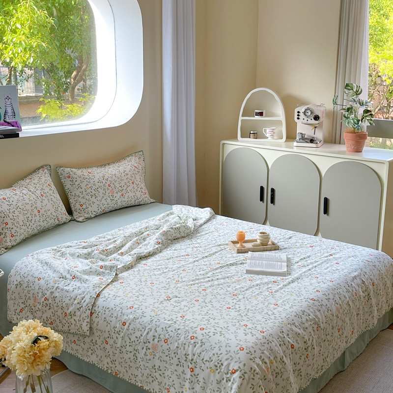 柚子 2023新款全棉有氧双层纱夏被四件套 花丛间