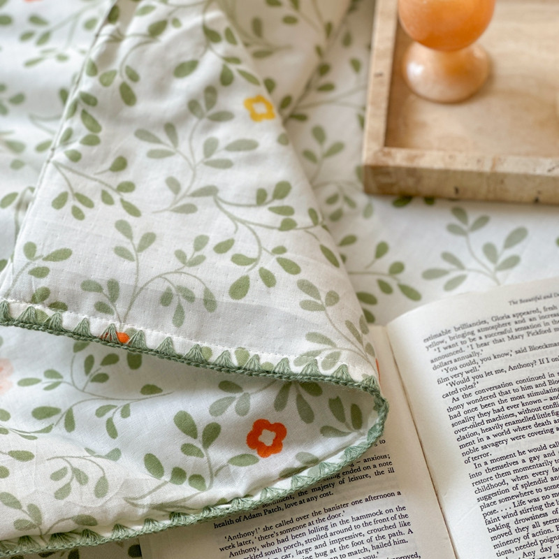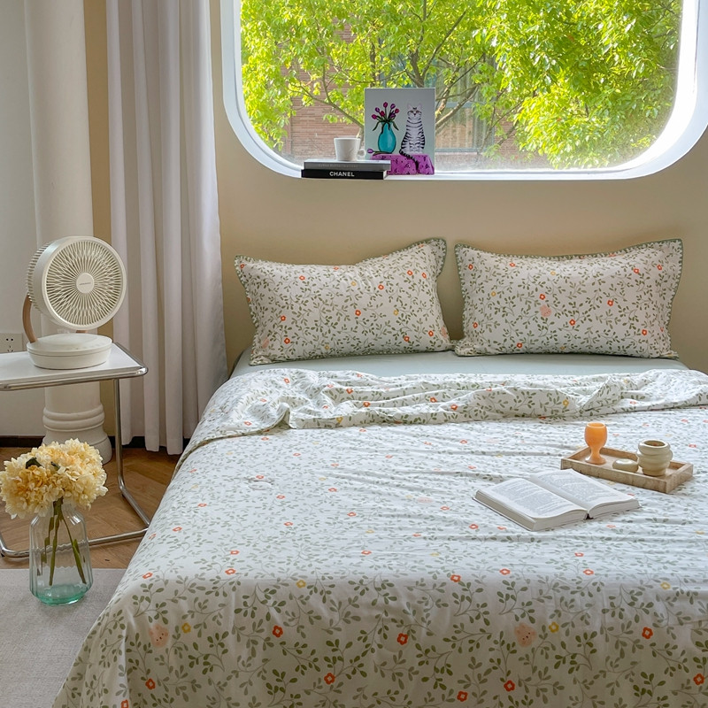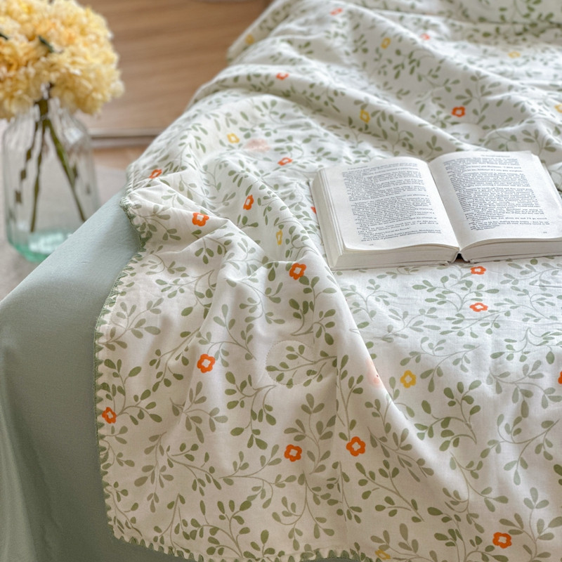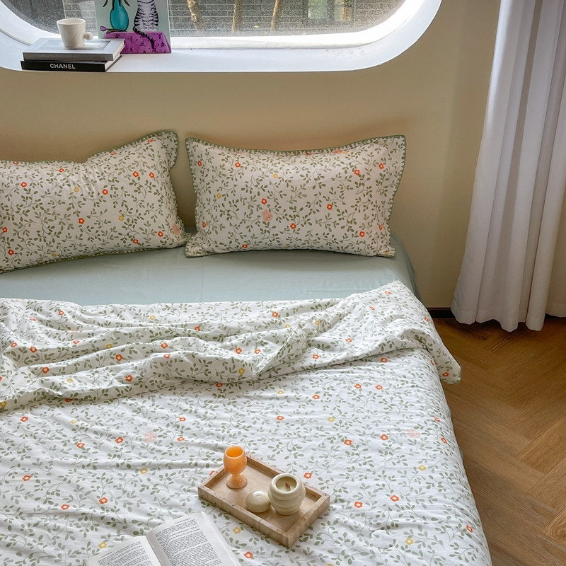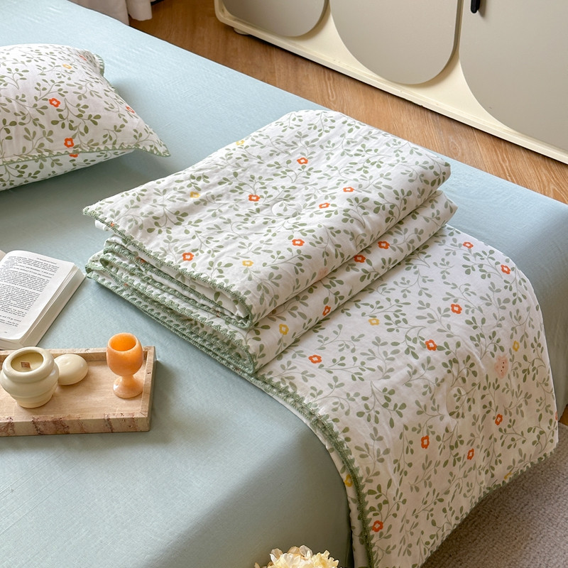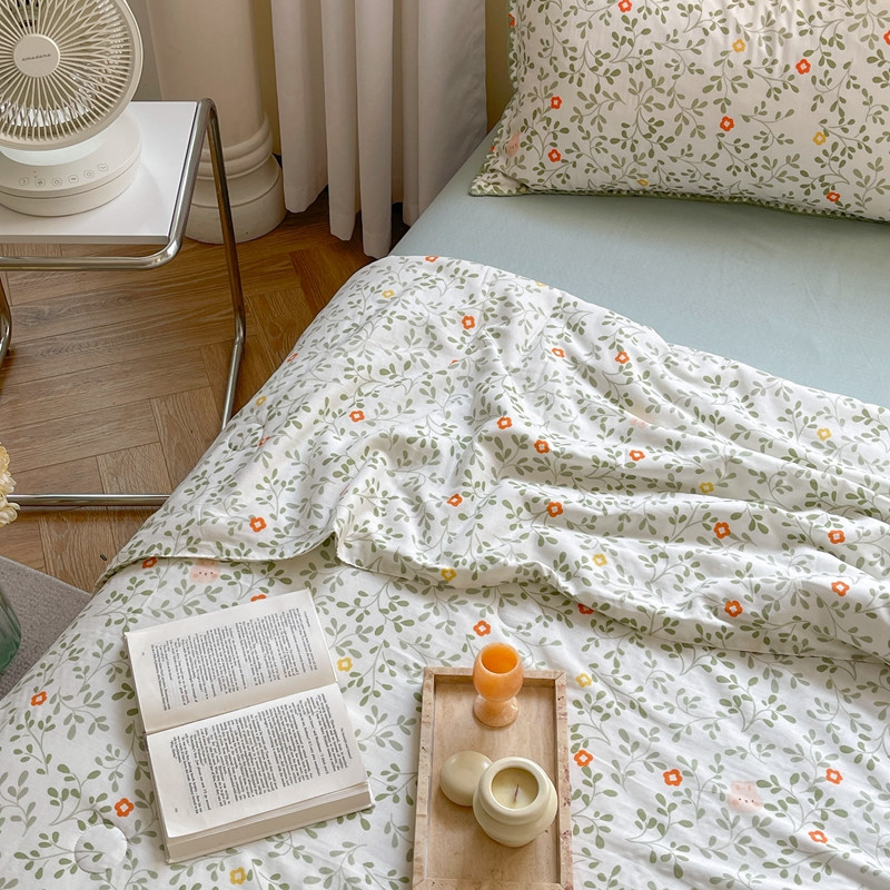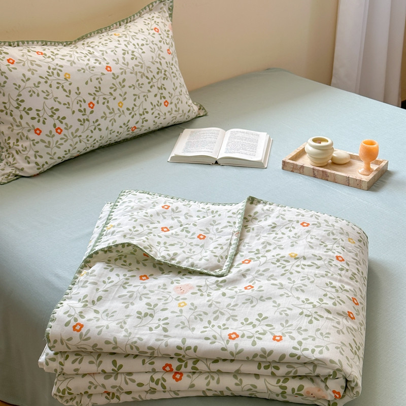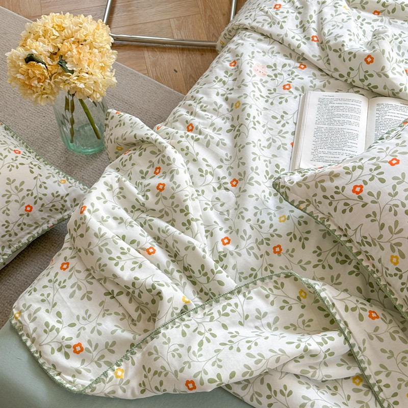 柚子 2023新款全棉有氧双层纱夏被四件套 花丛间