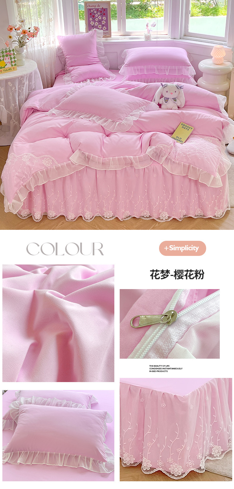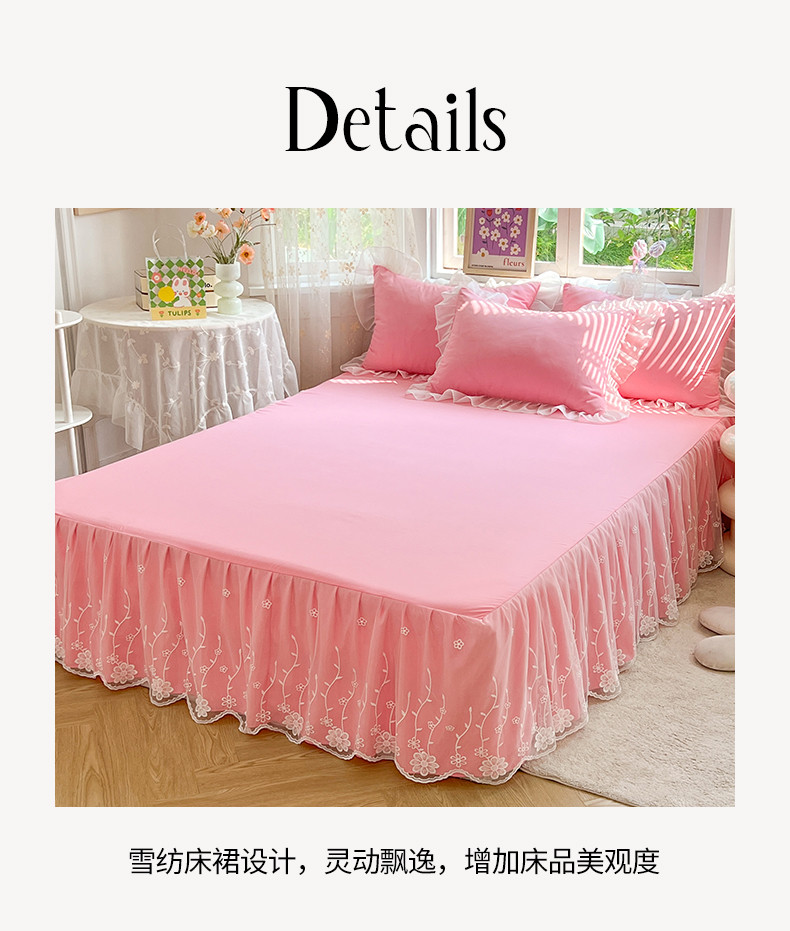 商品名称:(总)芭比蔓家纺 2024新款雪纺花边床裙四件套-花梦系列