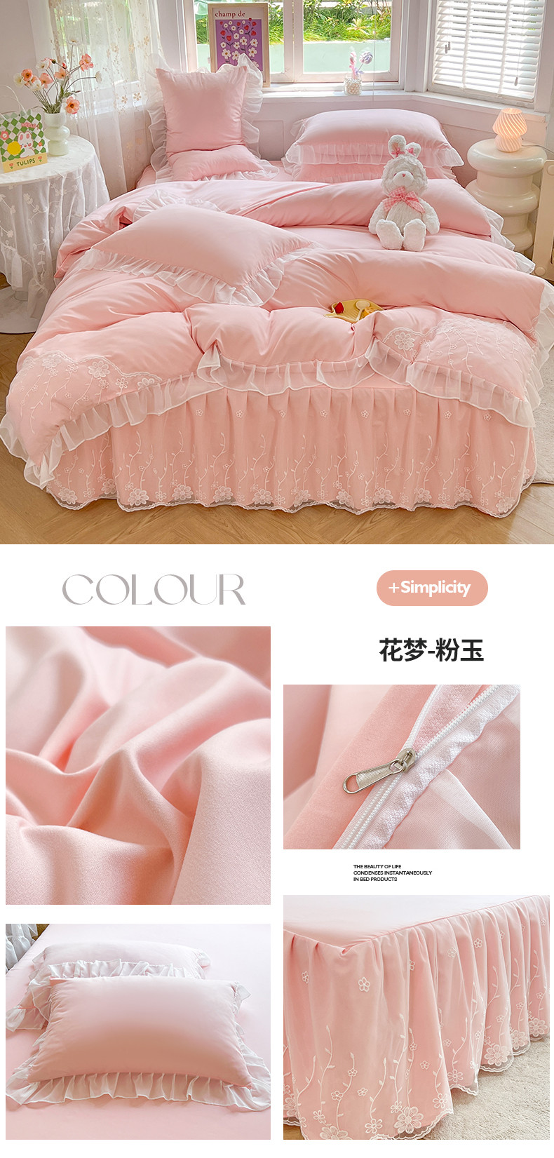 芭比蔓家纺 2025年新款雕花牛奶绒花边四件套-爱丽丝 爱丽丝-粉,爱丽丝-粉