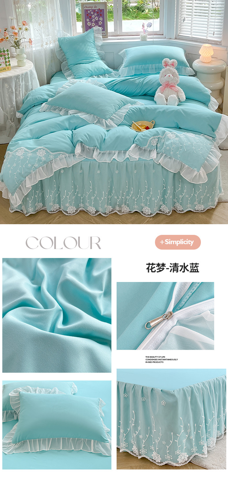 (总)芭比蔓 2024新款牛奶绒蕾丝四件套-玛丽公主系列,玛丽公主-海棠玉,玛丽公主-亮橙色,玛丽公主-苹果绿,玛丽公主-砂黄色,玛丽公主-玉石白,玛丽公主-月光蓝