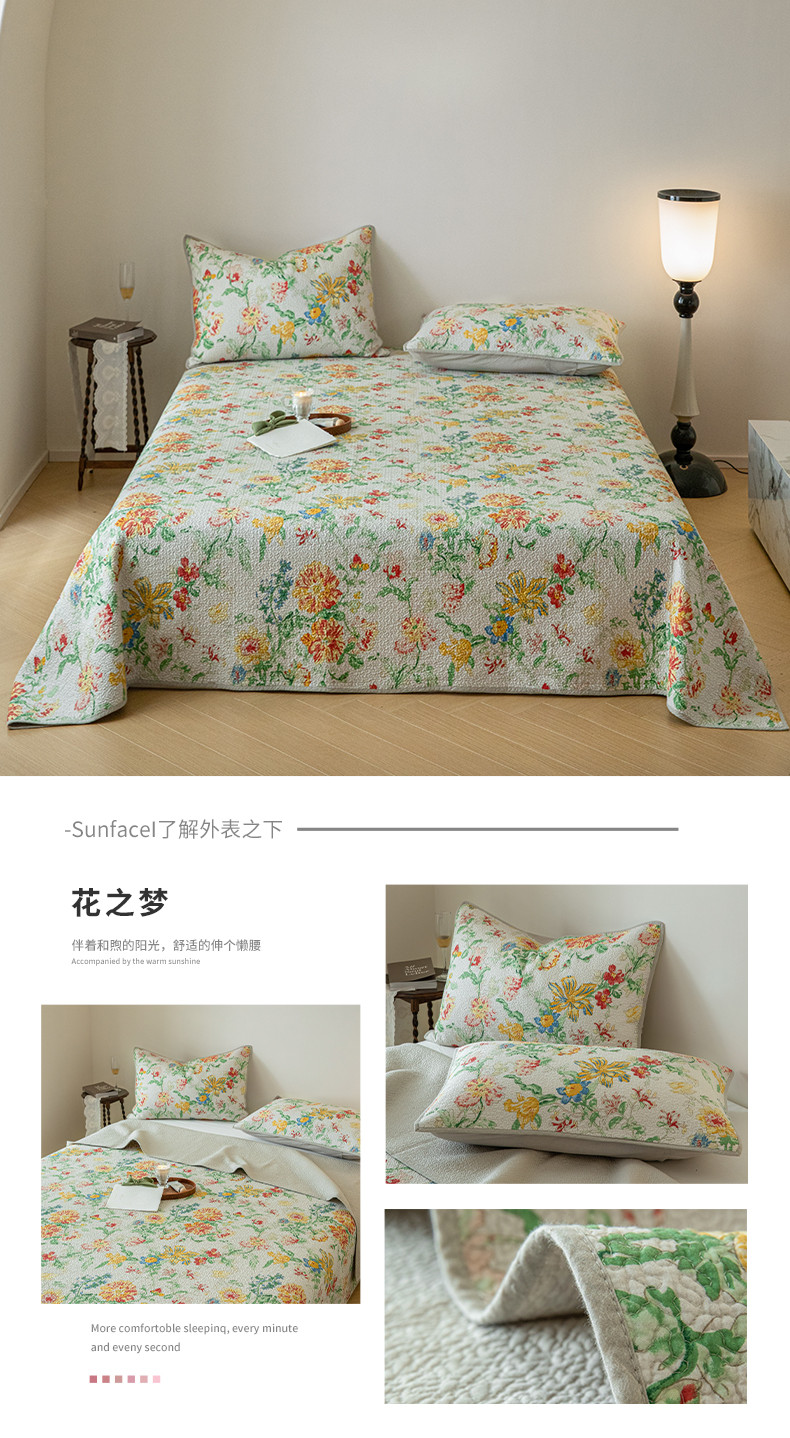 (总)上喜2025新款韩国全棉砂洗床盖系列,粉色,黄色,灰色,绿色,紫色