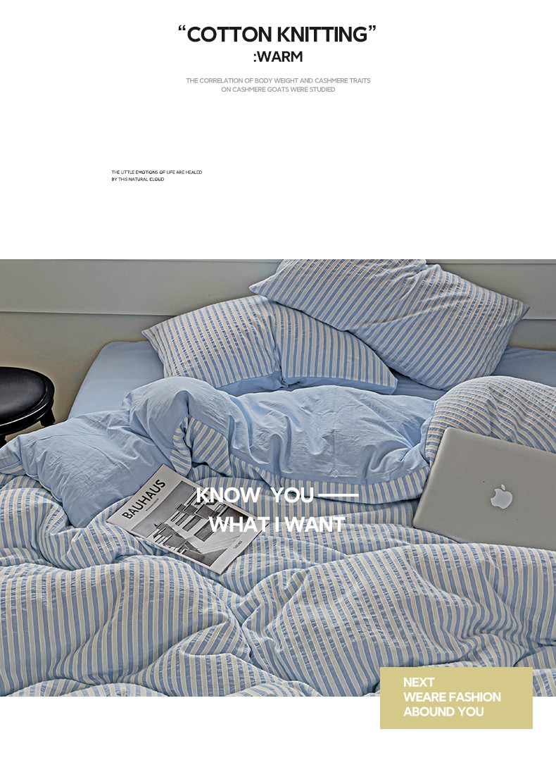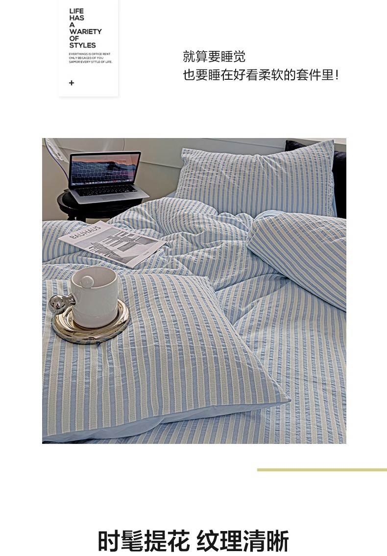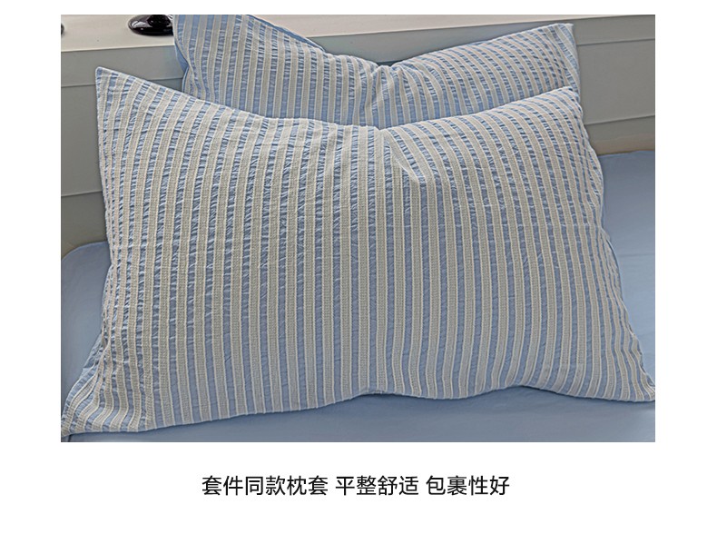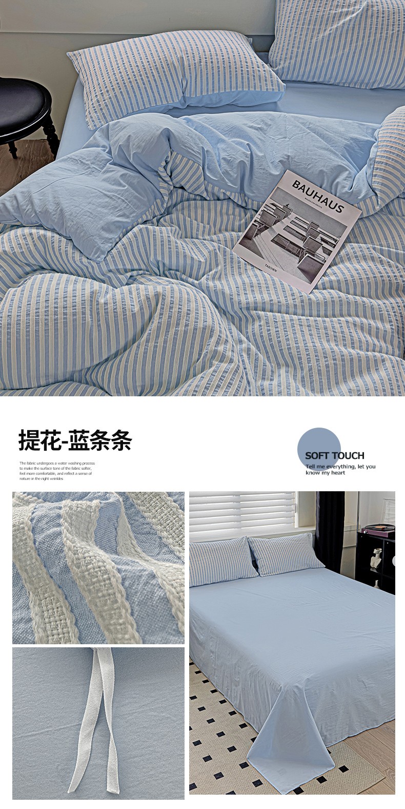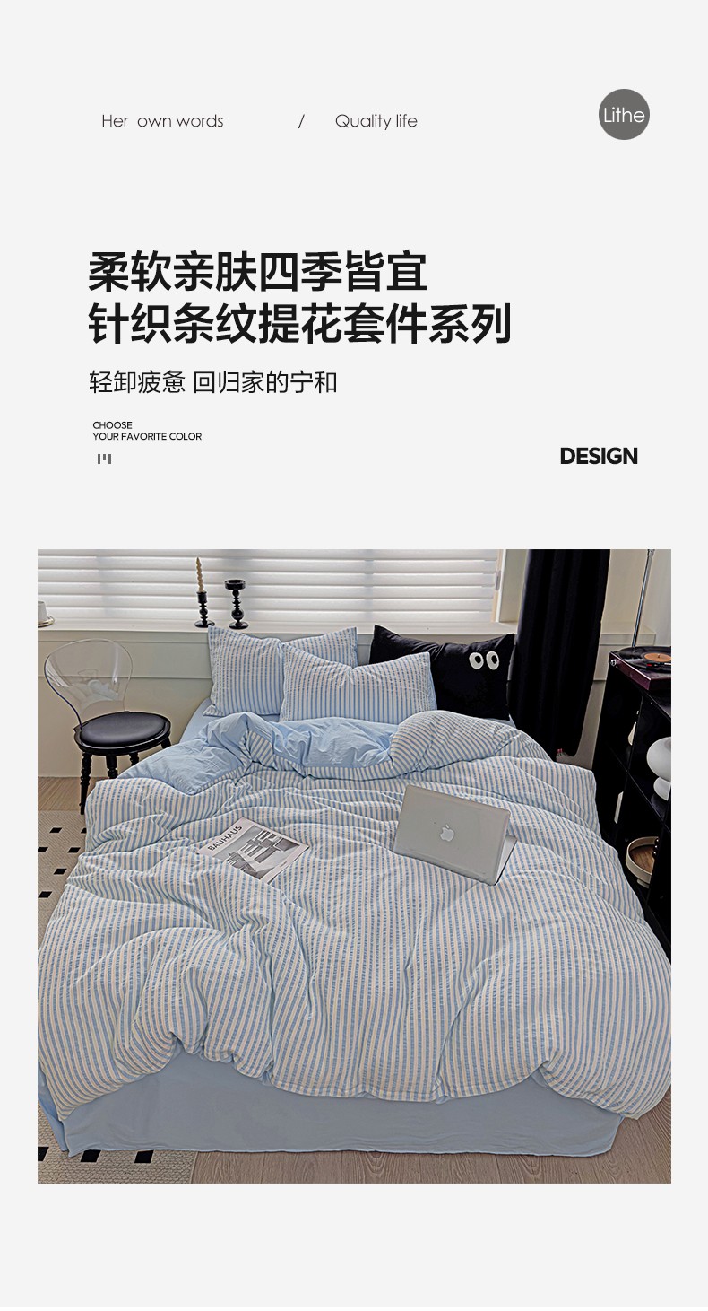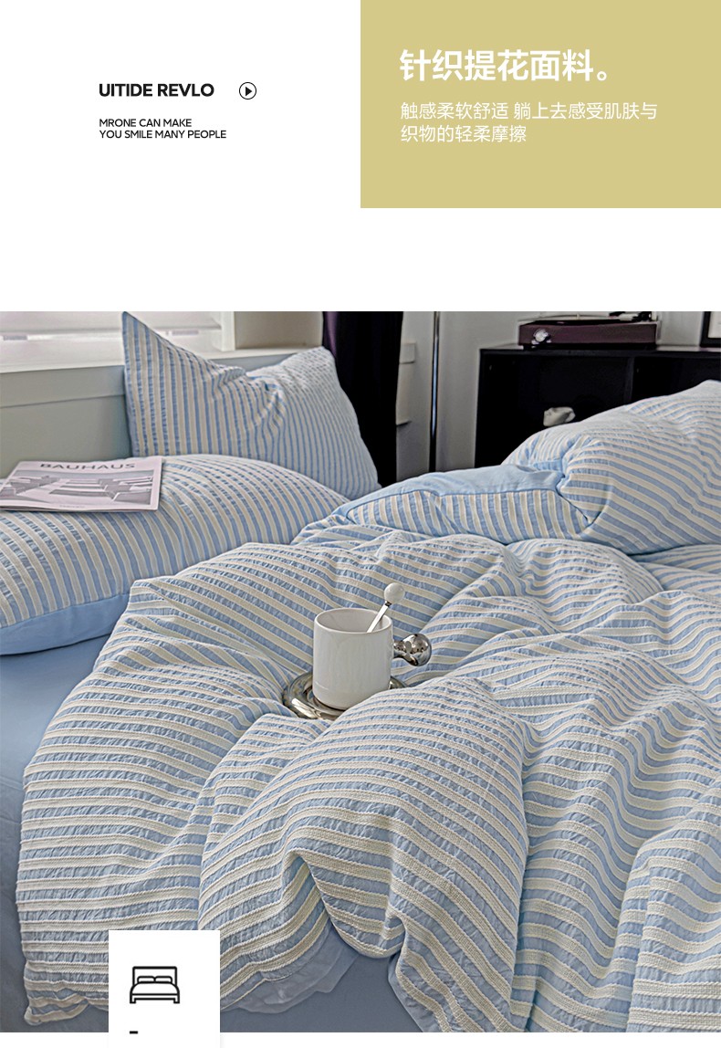 商品名称:水墨江南 2023新款纯色提花针织条四件套 提花-蓝条条