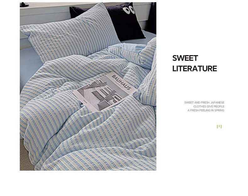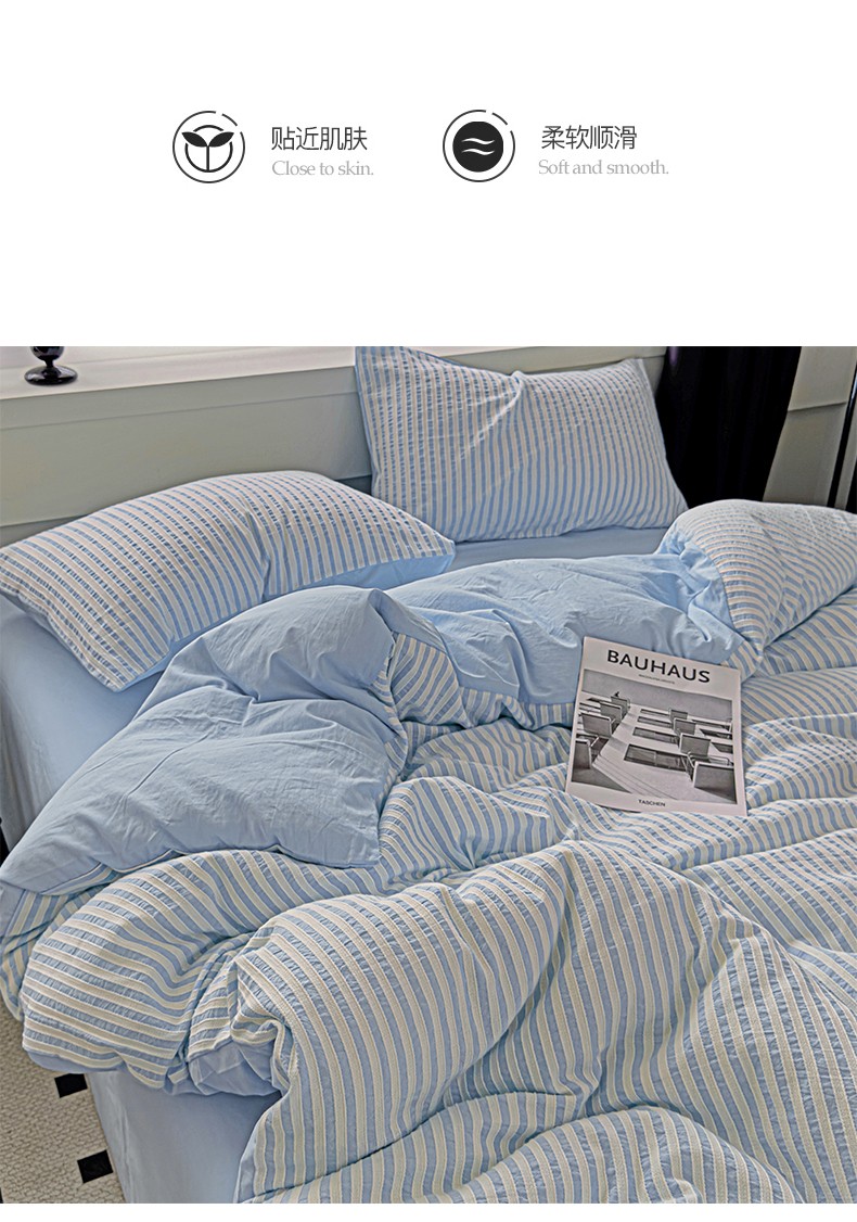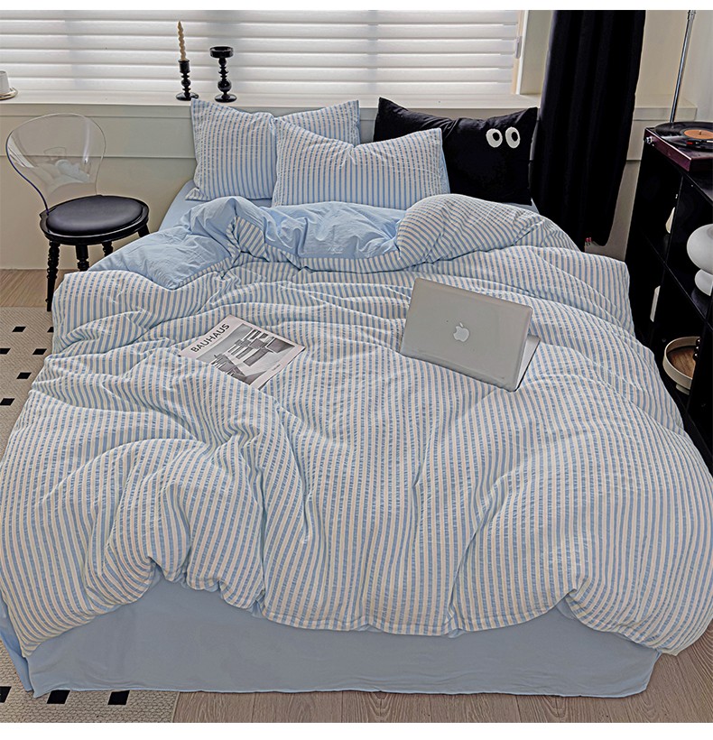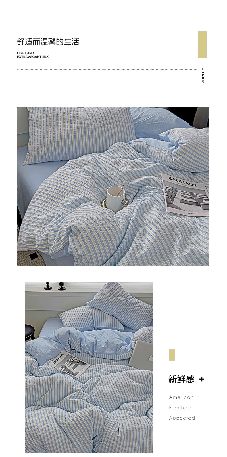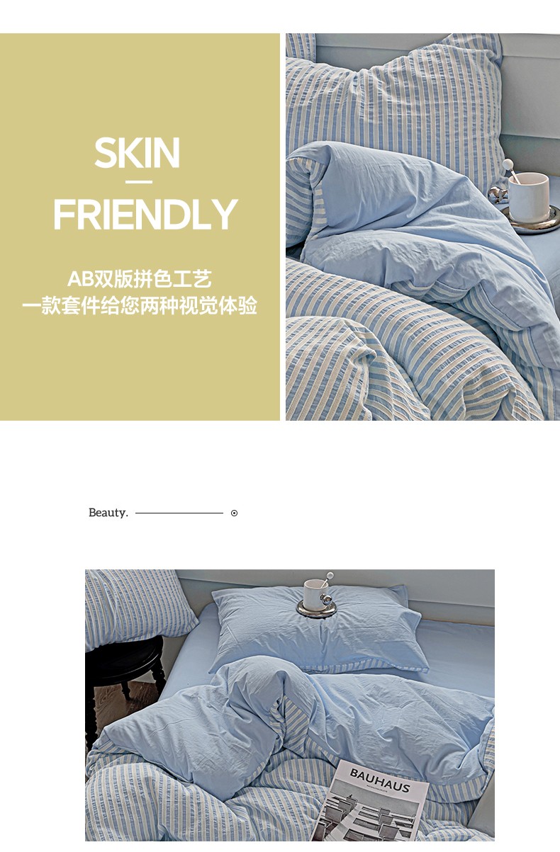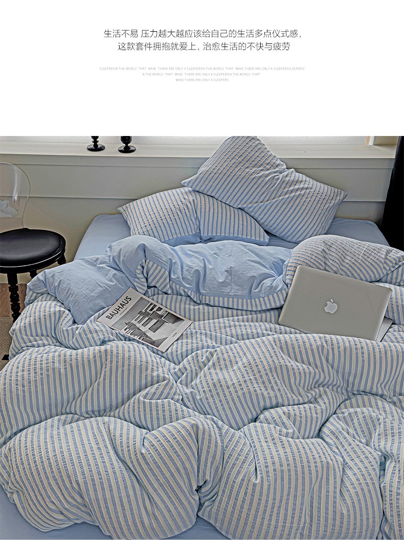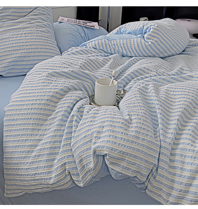 商品名称:水墨江南 2023新款纯色提花针织条四件套 提花-蓝条条