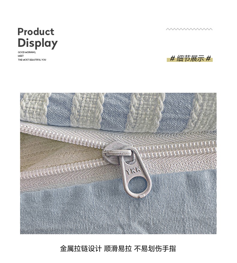 水墨江南 2023新款纯色提花针织条四件套 提花-蓝条条