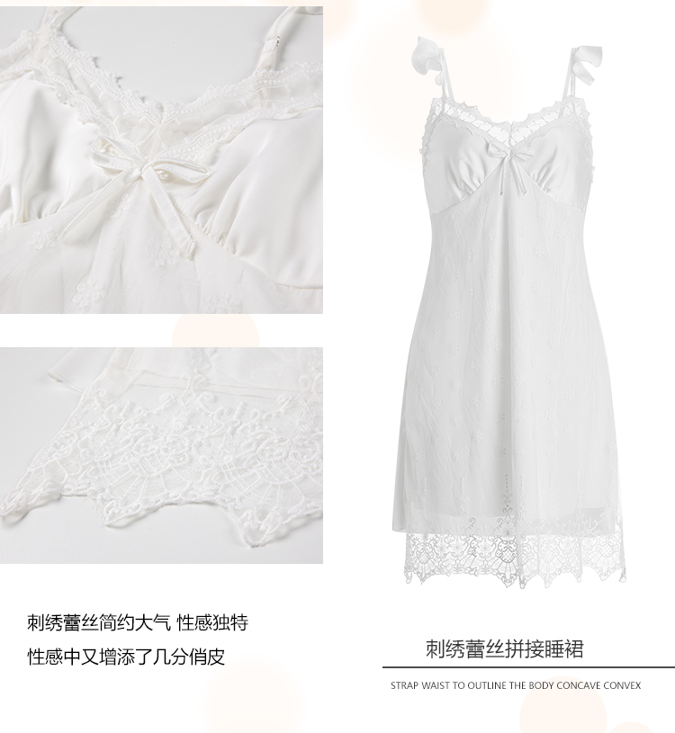 商品名称:洛兰沙 2023新款外贸冰丝蕾丝吊带和两件套-1574维多利亚 黑色