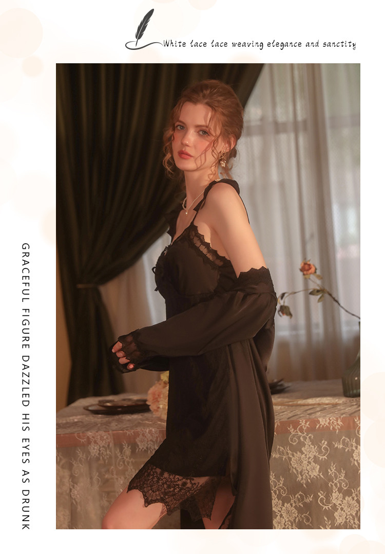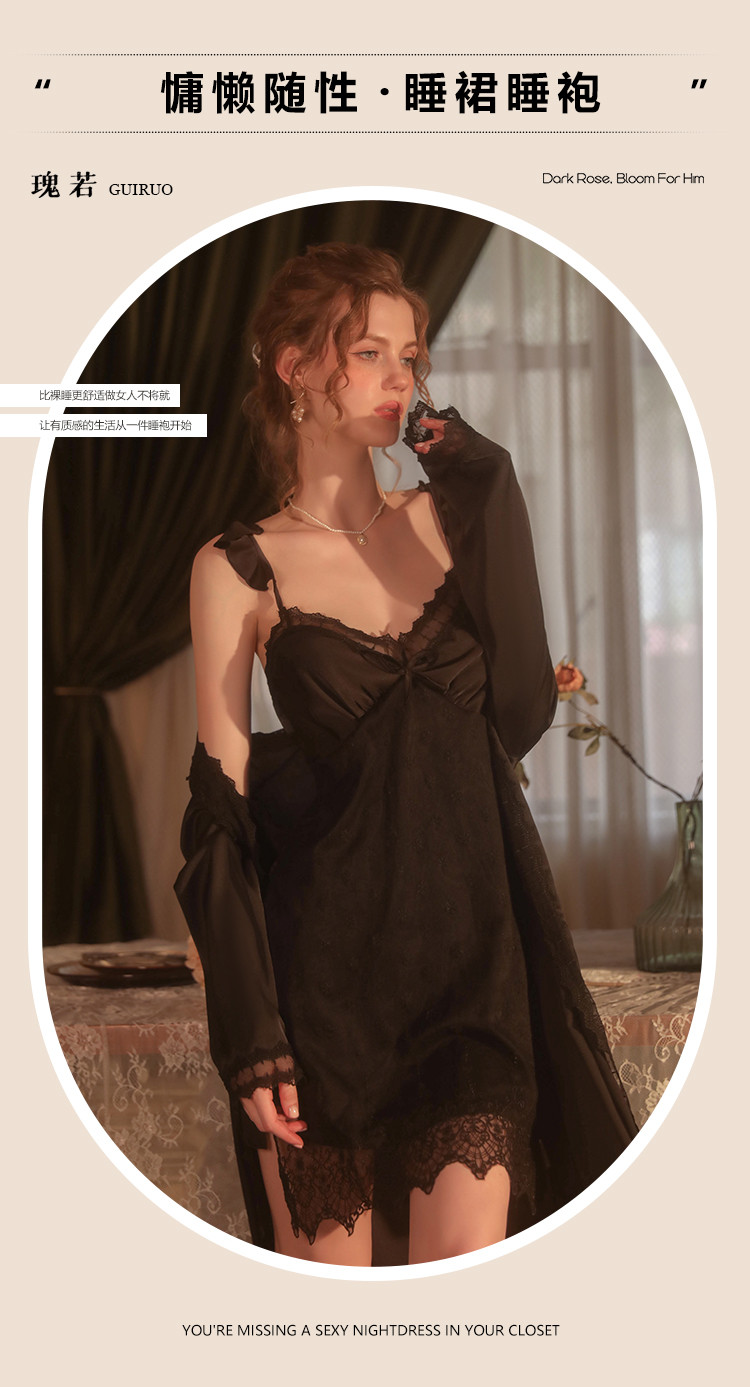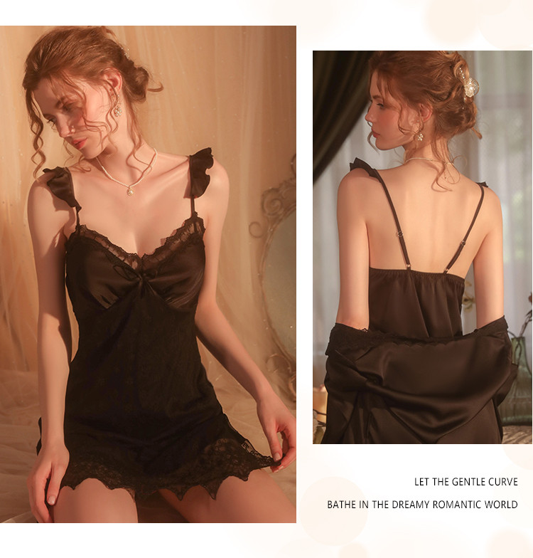 洛兰沙 2023新款外贸冰丝蕾丝吊带和两件套-1574维多利亚 黑色