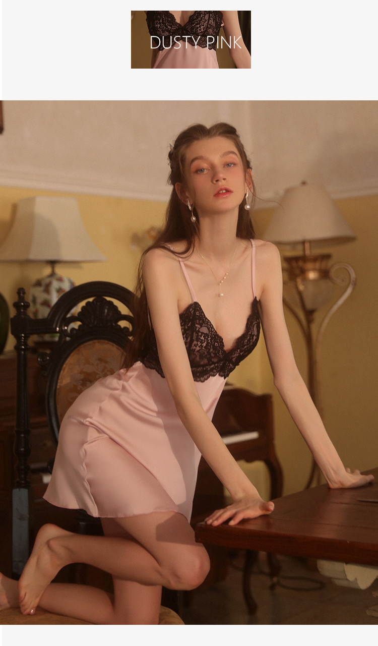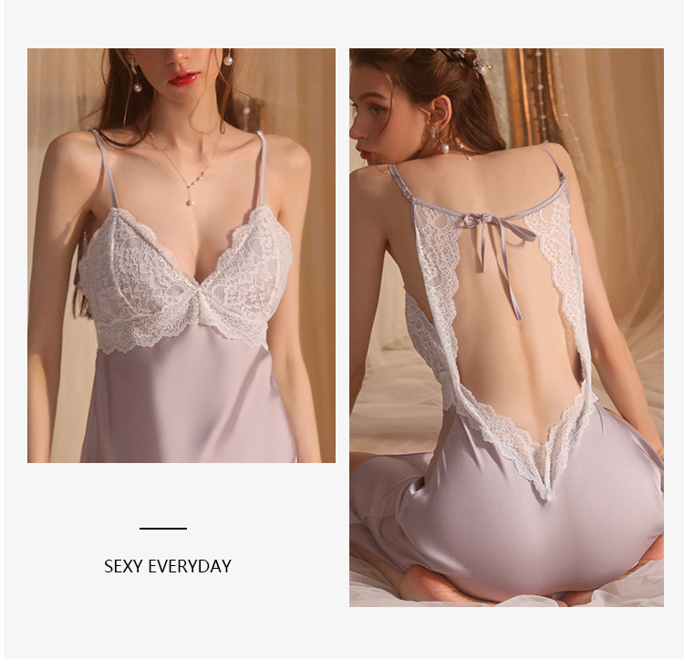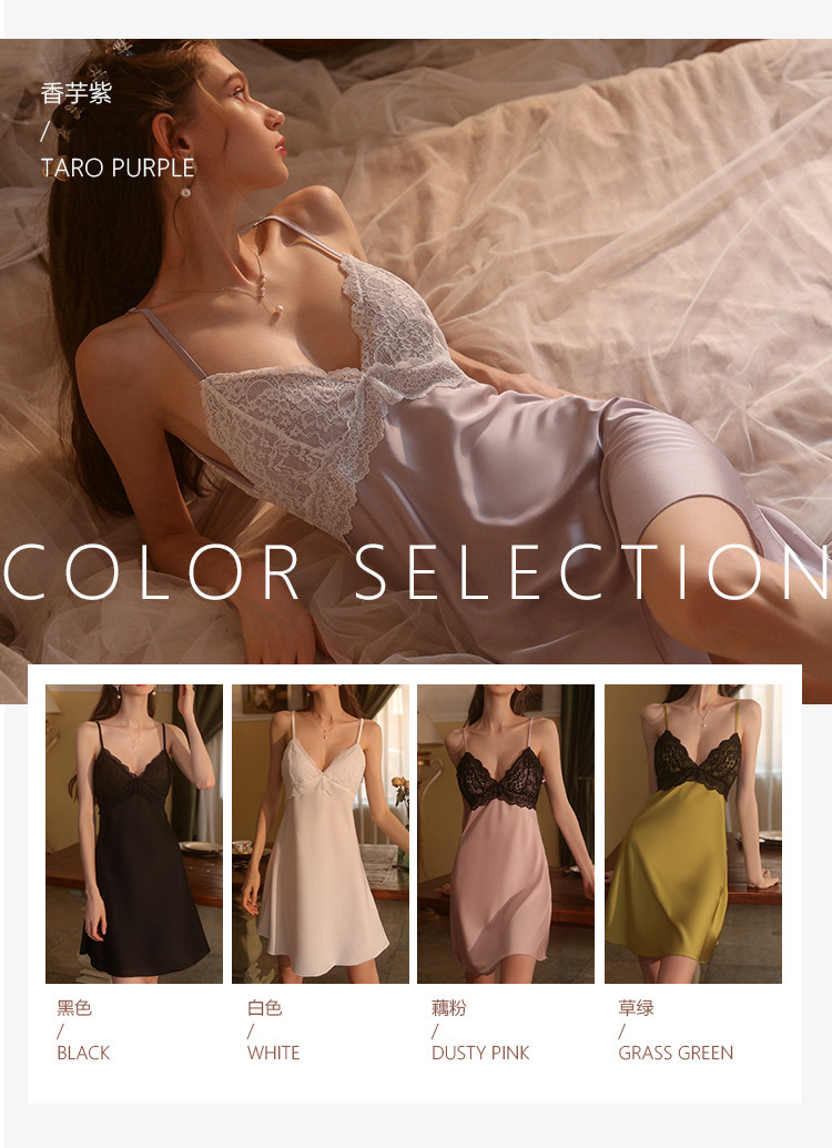 洛兰沙 2023新款外贸冰丝蕾丝吊带和两件套-2621欧拉 白色