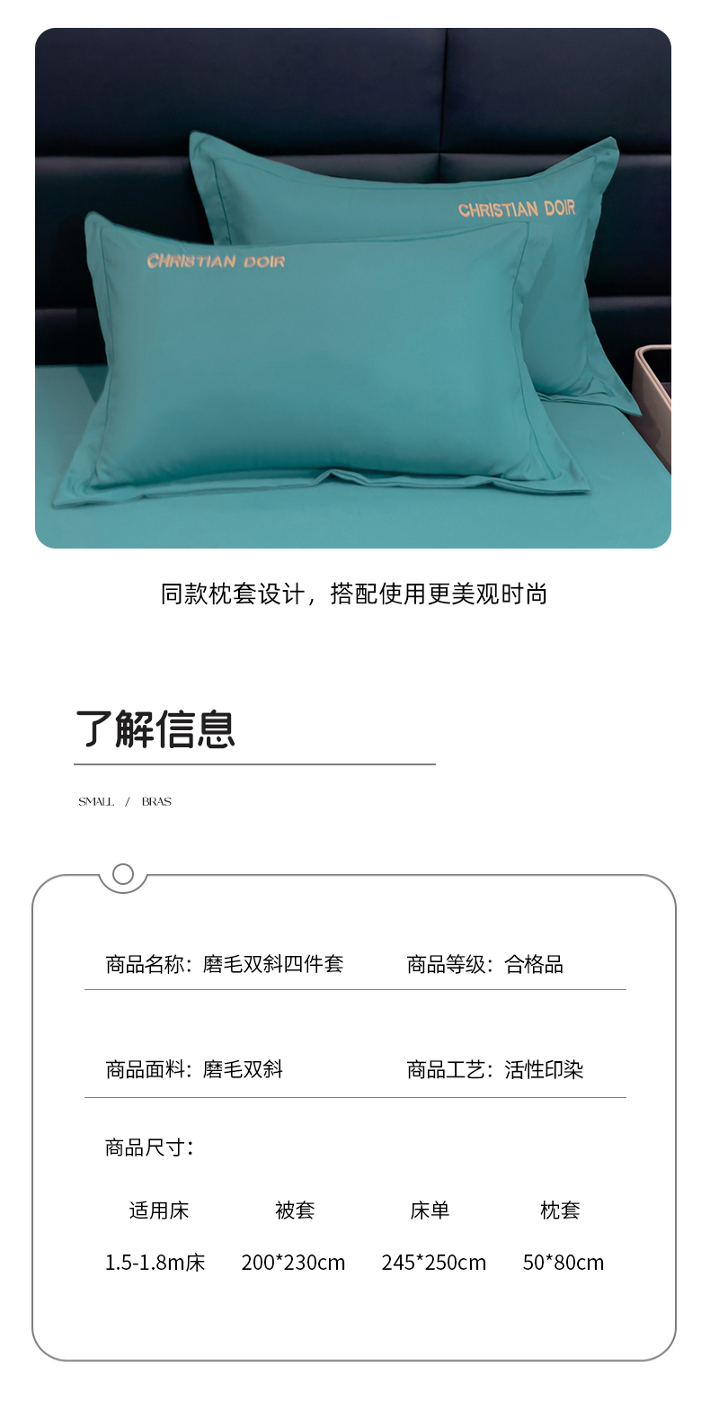 商品名称:金米诺 2024新款磨毛双斜四件套 珊瑚绿