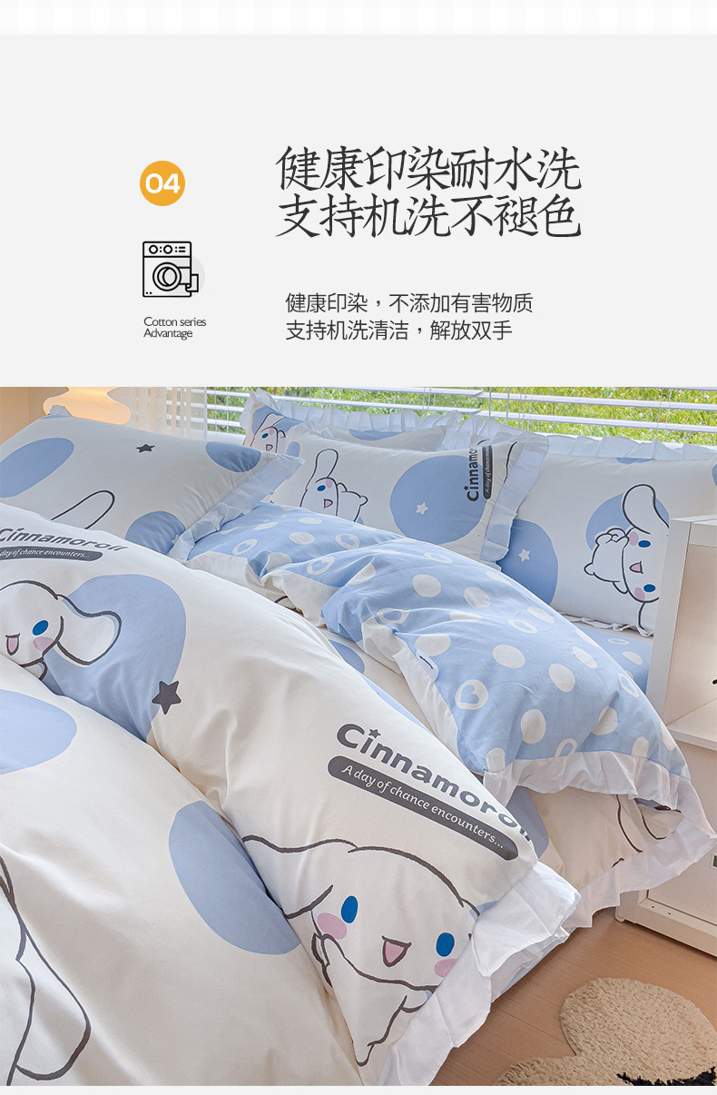 商品名称:桃子 2023新款三丽鸥正版授权韩版花边少女纯棉系列四件套 棉花边-圆点玉桂狗
