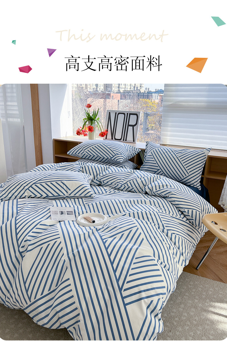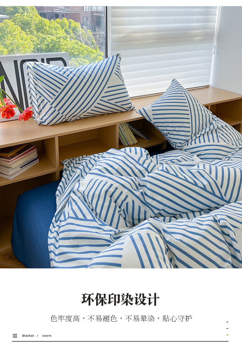 当前位置: 91家纺网 > 商品网购 > 床品套件 > 四件套 > 全棉普通四件套 > 麦伦家居 2023新款全棉简约个性北欧系列四件套-第 一组初语蓝
