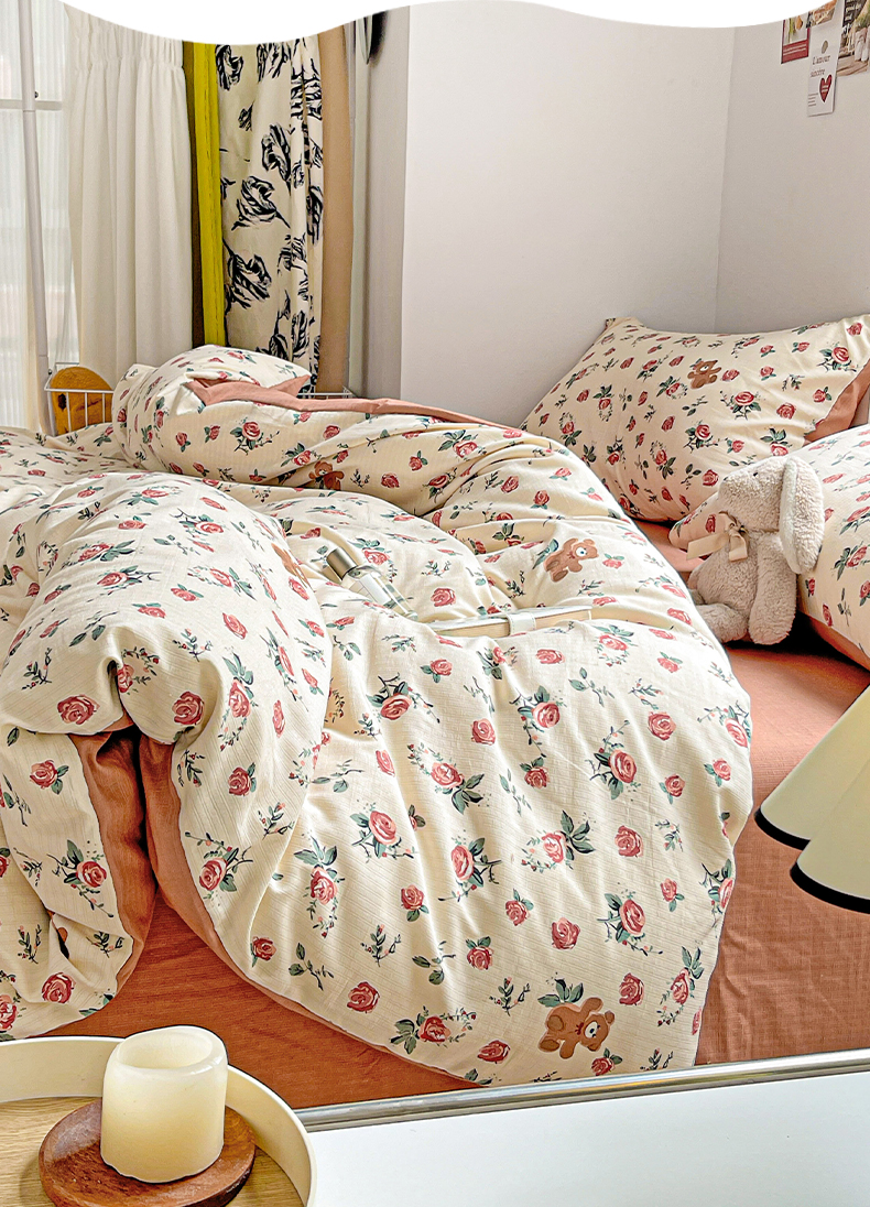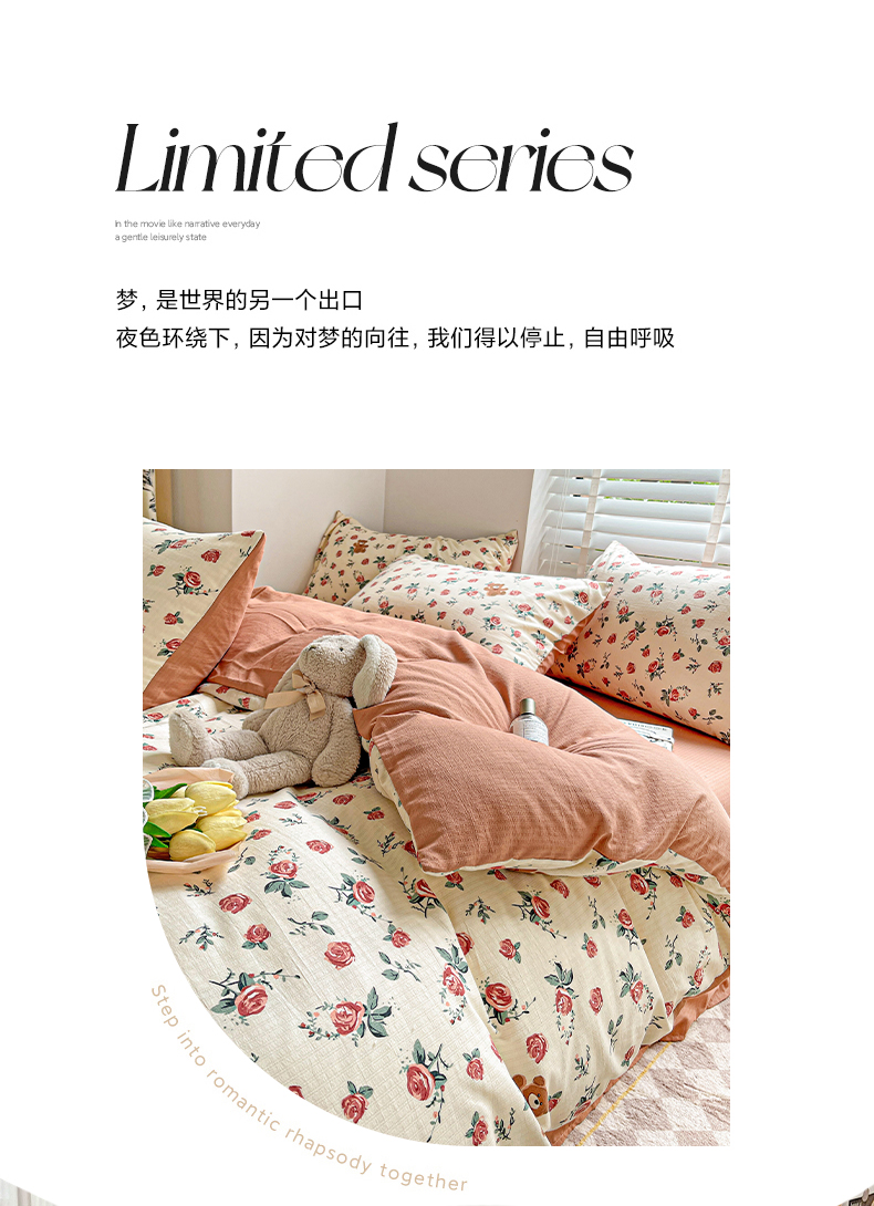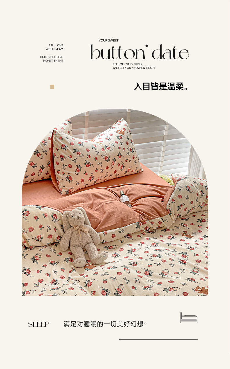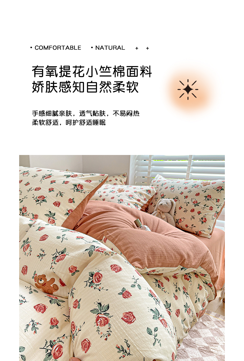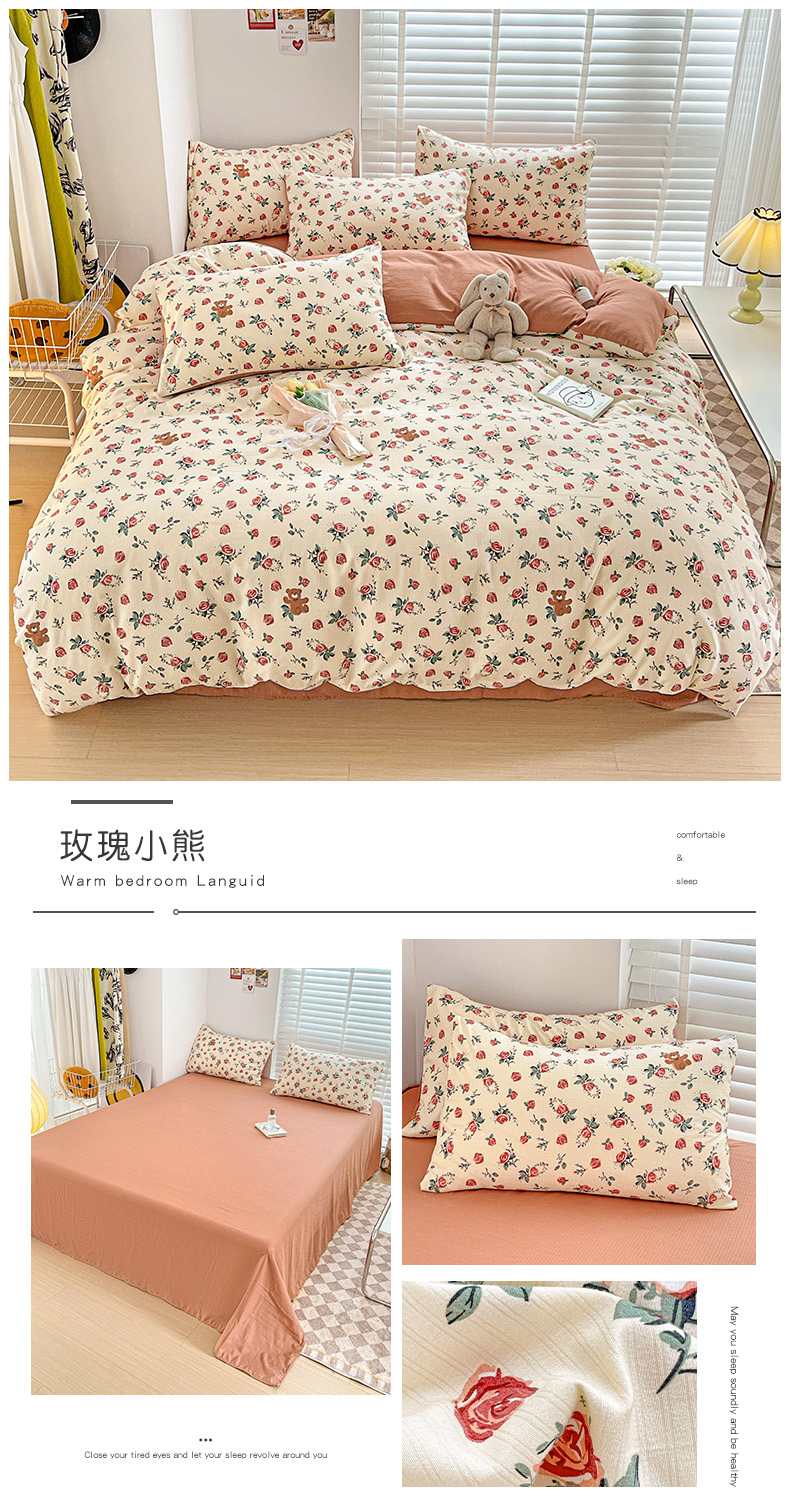 当前位置: 91家纺网 > 商品网购 > 床品套件 > 四件套 > 化纤普通四件套 > 天商 2023直播爆款超柔提花有氧小竺棉双层纱三件套四件套玫瑰小熊