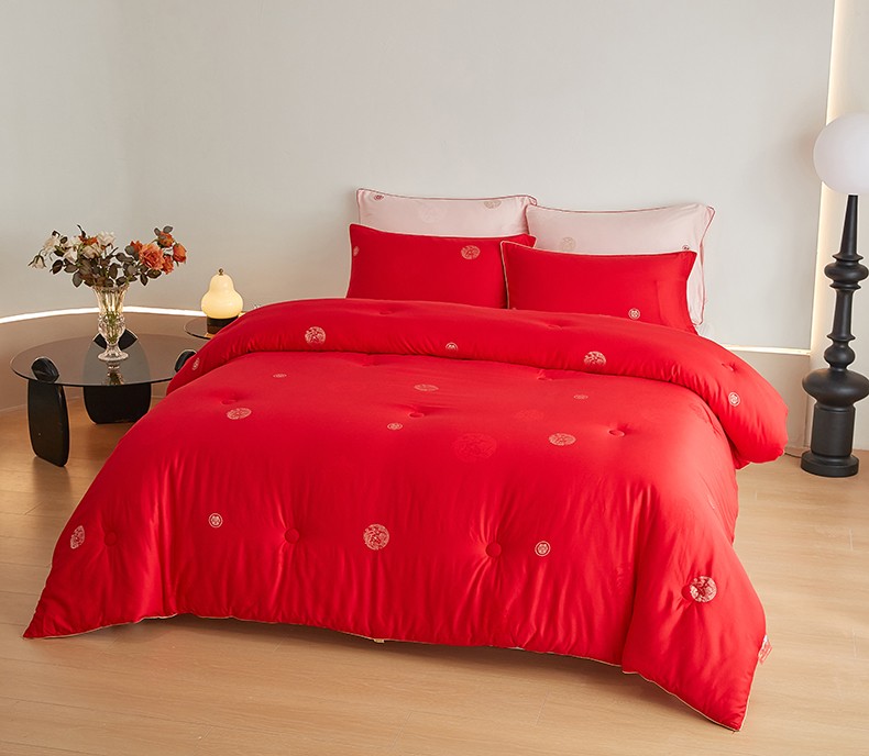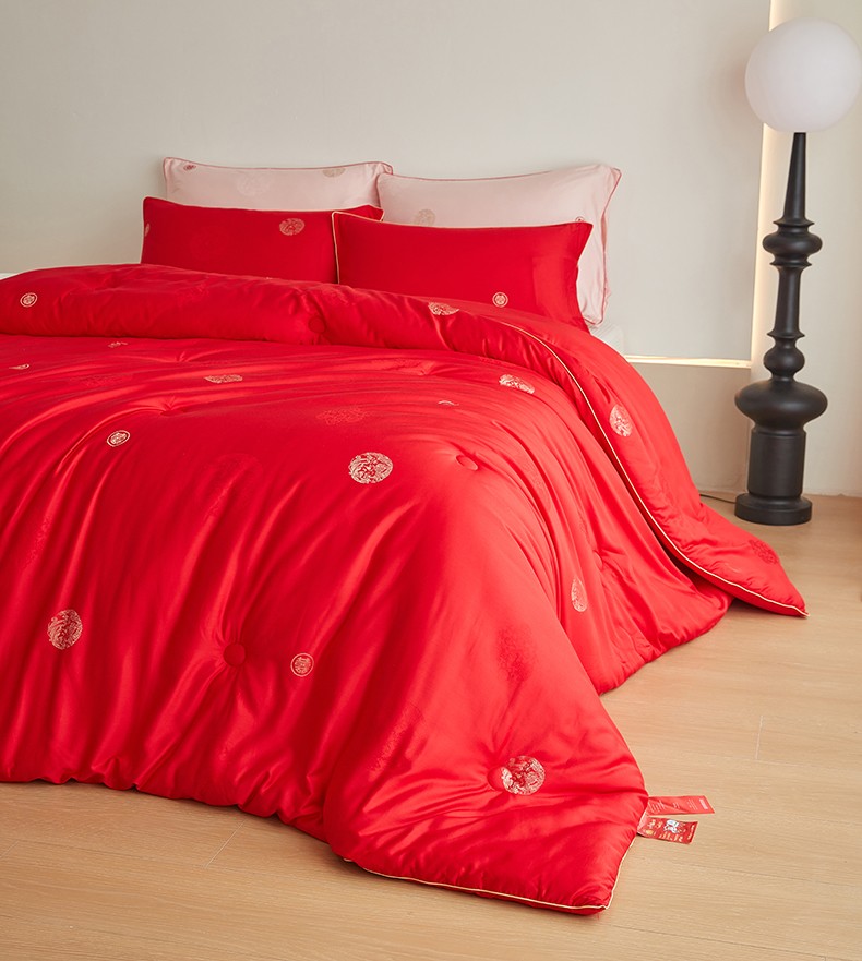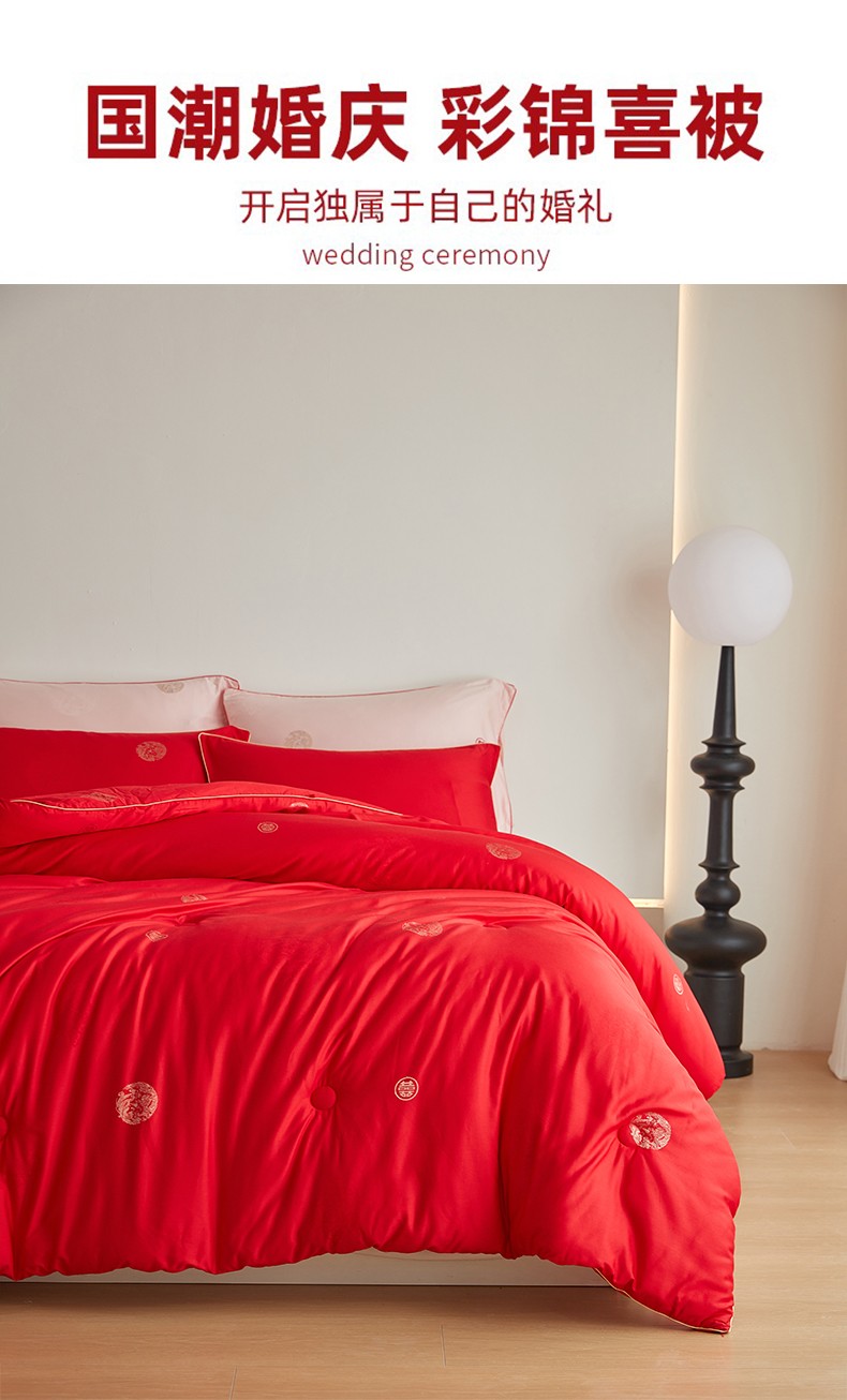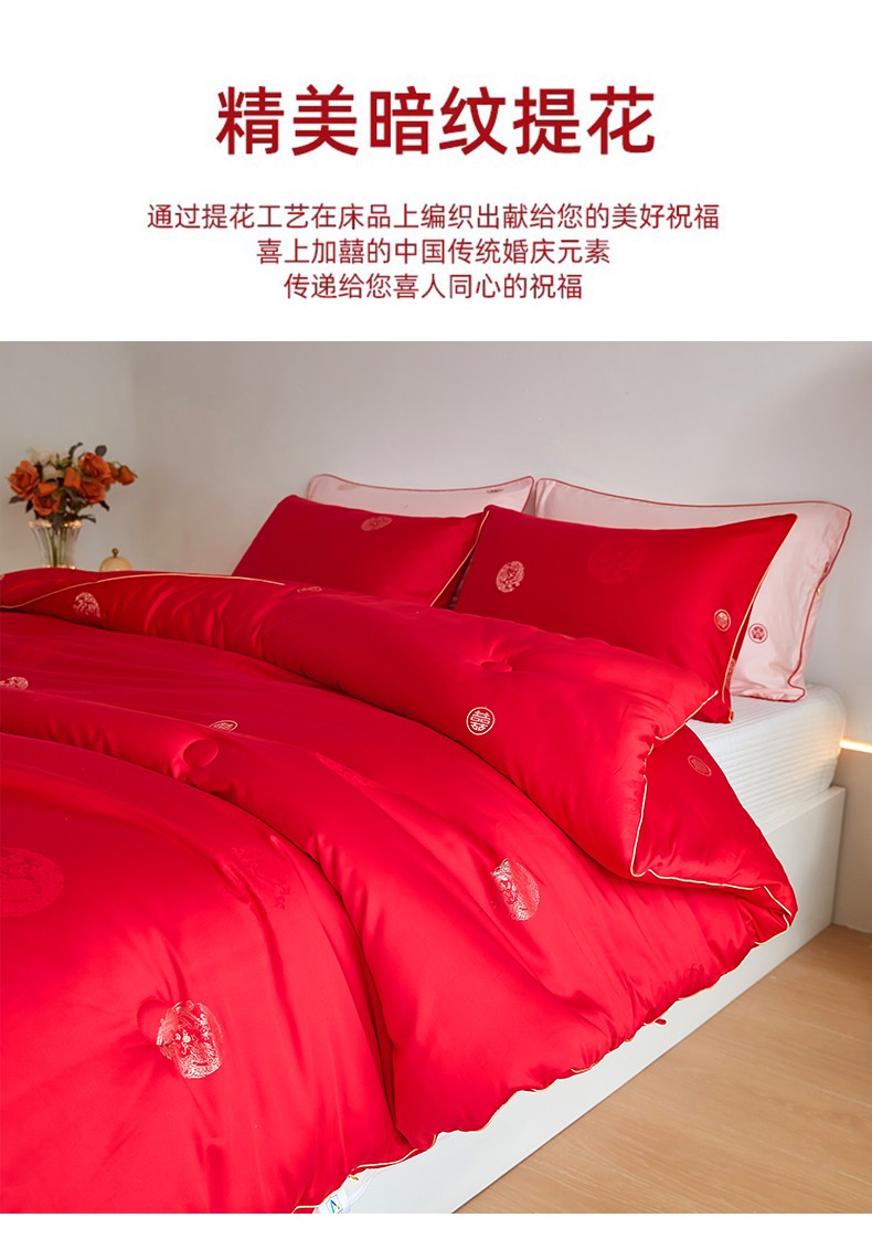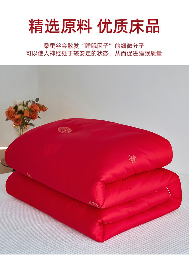 商品名称:新款 100支天丝棉大提花蚕丝大豆被婚庆结婚喜庆大红秋冬被芯婚庆被 百年好合红色