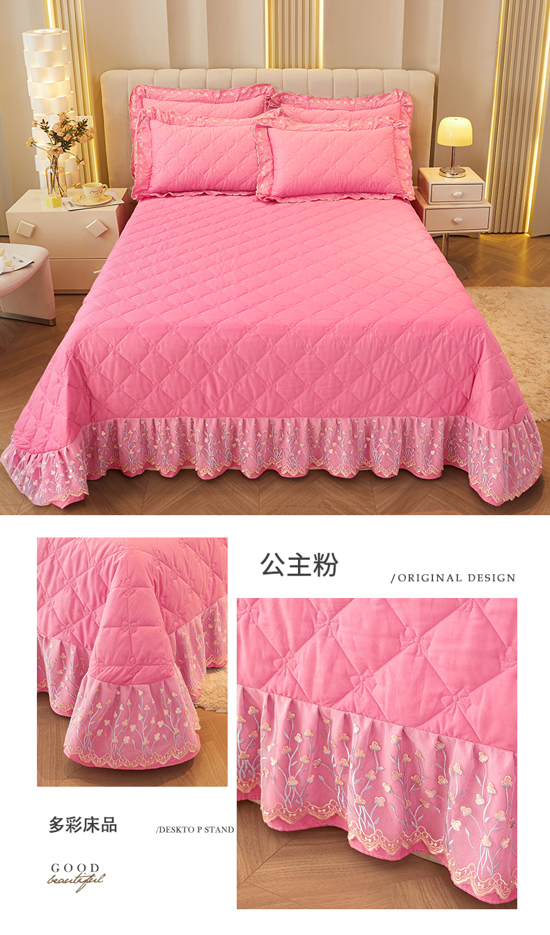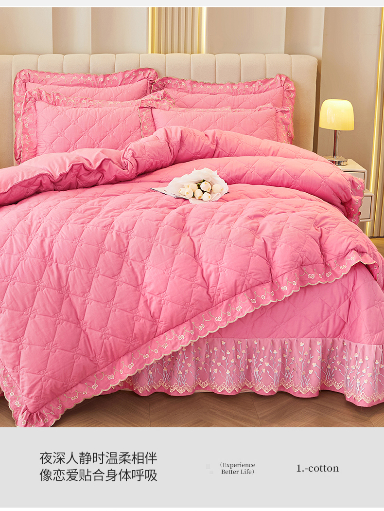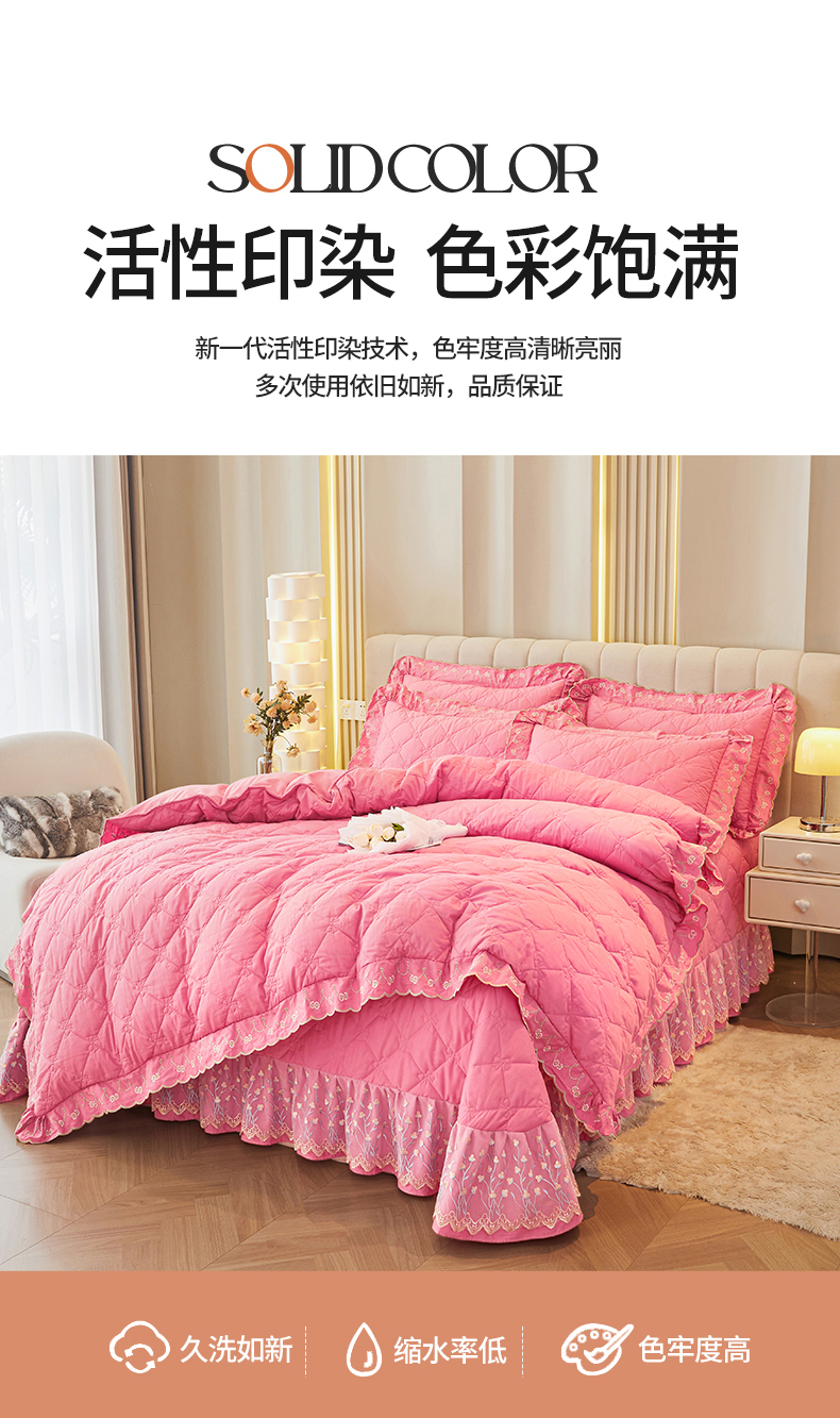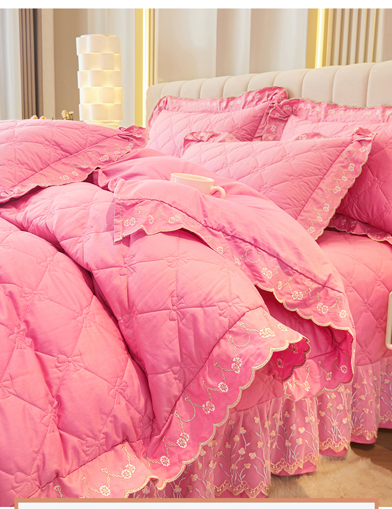 (总)恒爱家纺 2025新款牛奶绒贴布绣夹棉床裙四件套,豆沙红,浪漫紫,天空蓝,温馨粉,象牙白