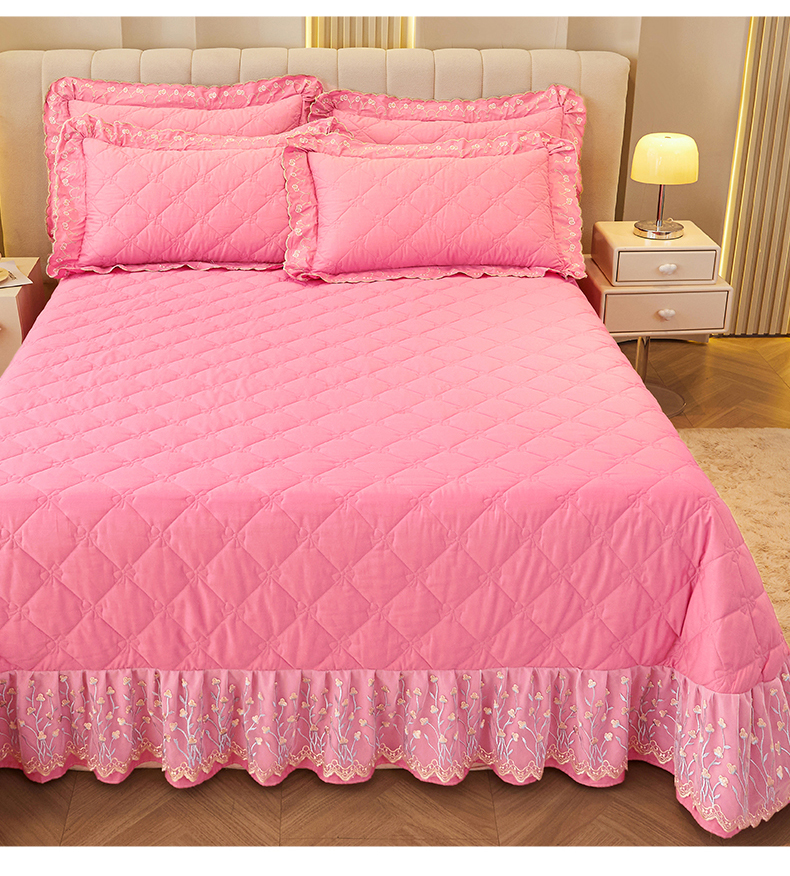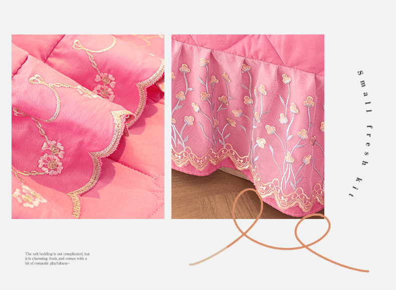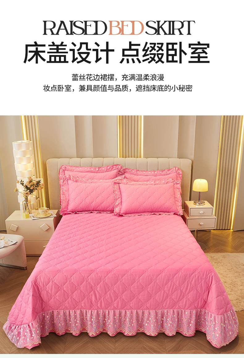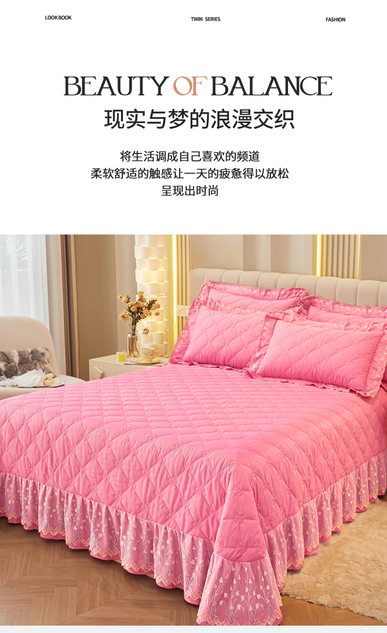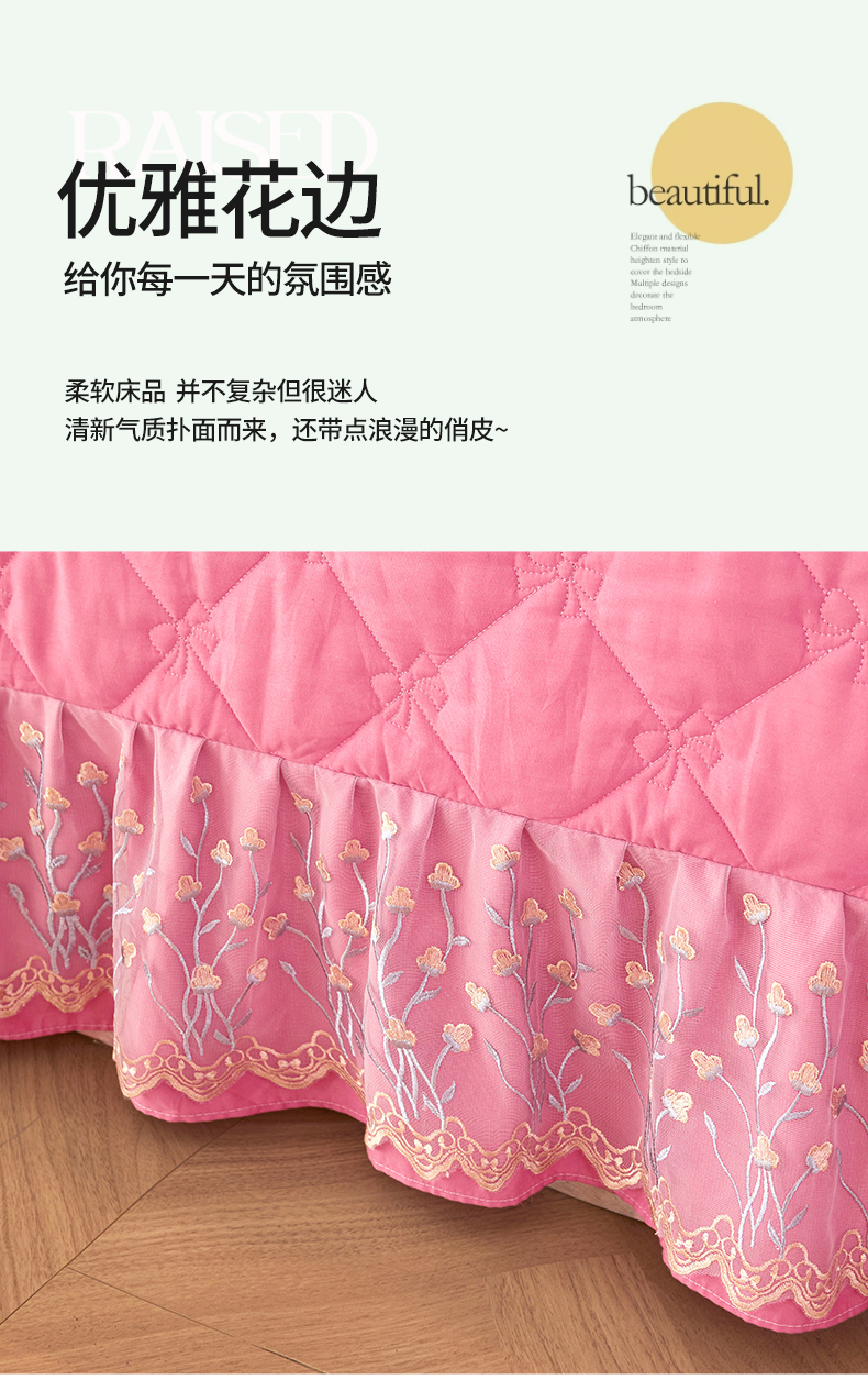(总)恒爱家纺 2025新款牛奶绒贴布绣夹棉床裙四件套,豆沙红,浪漫紫,天空蓝,温馨粉,象牙白