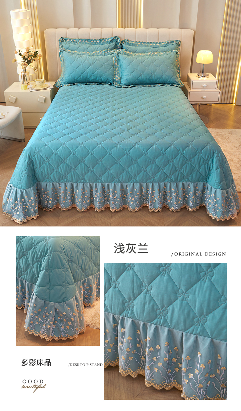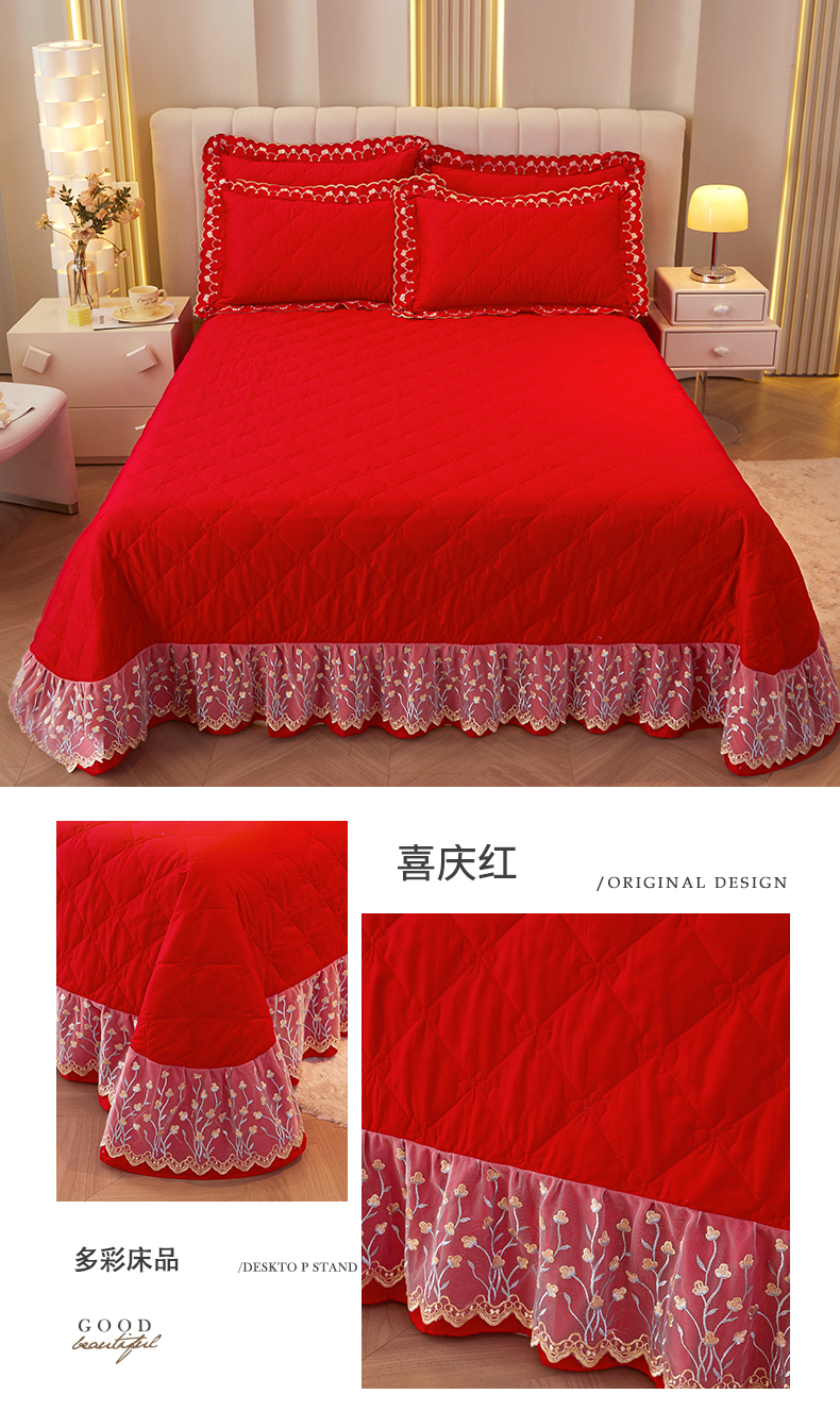 (总)恒爱 2022秋冬水晶绒翩翩花舞夹棉床裙四件套,大红色,豆沙红,橄榄绿,公主粉,桔色,咖啡色,孔雀绿,拉菲红,罗兰紫,玫红色,美人玉,米白色,米驼色,抹茶绿,浅灰色,紫色