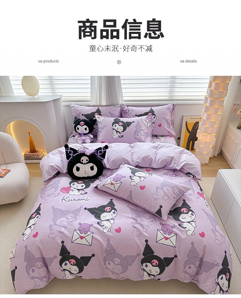当前位置: 91家纺网 > 商品网购 > 床品套件 > 四件套 > 全棉普通四件套 > 爱丽丝 2024新款KT猫 三丽鸥全棉四件套套件系列 情书库洛米